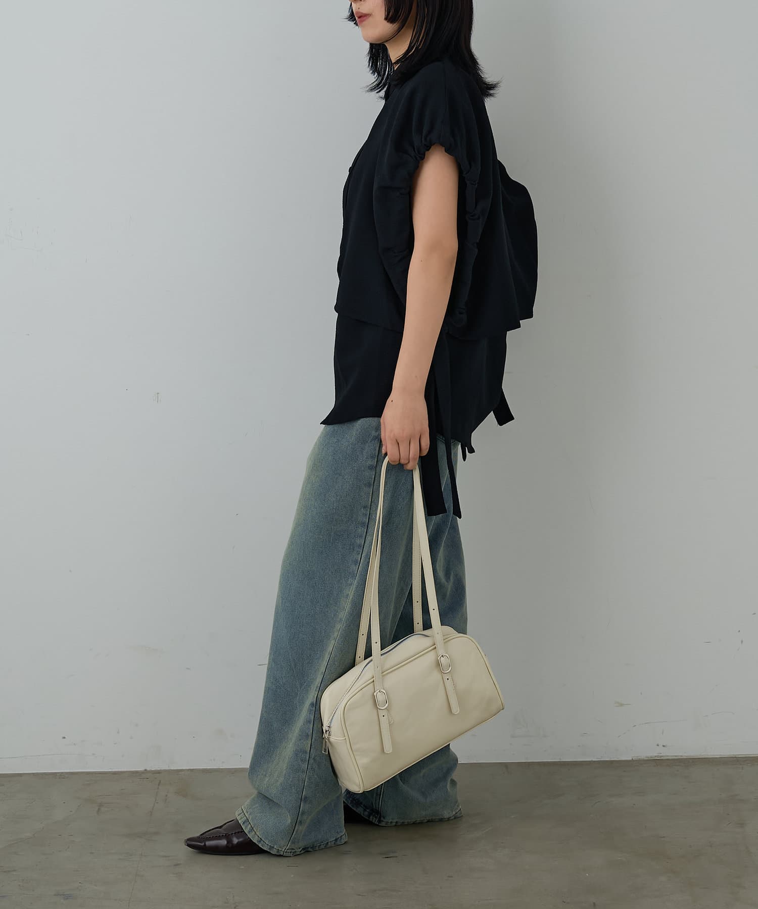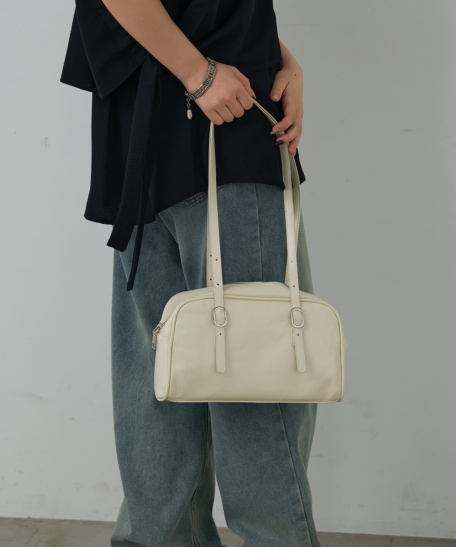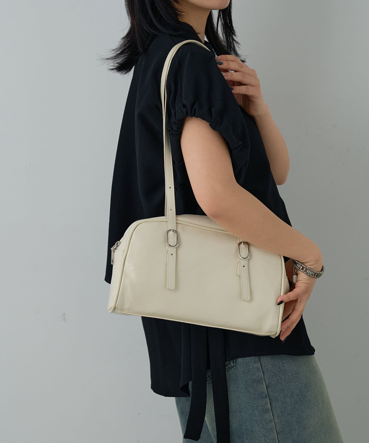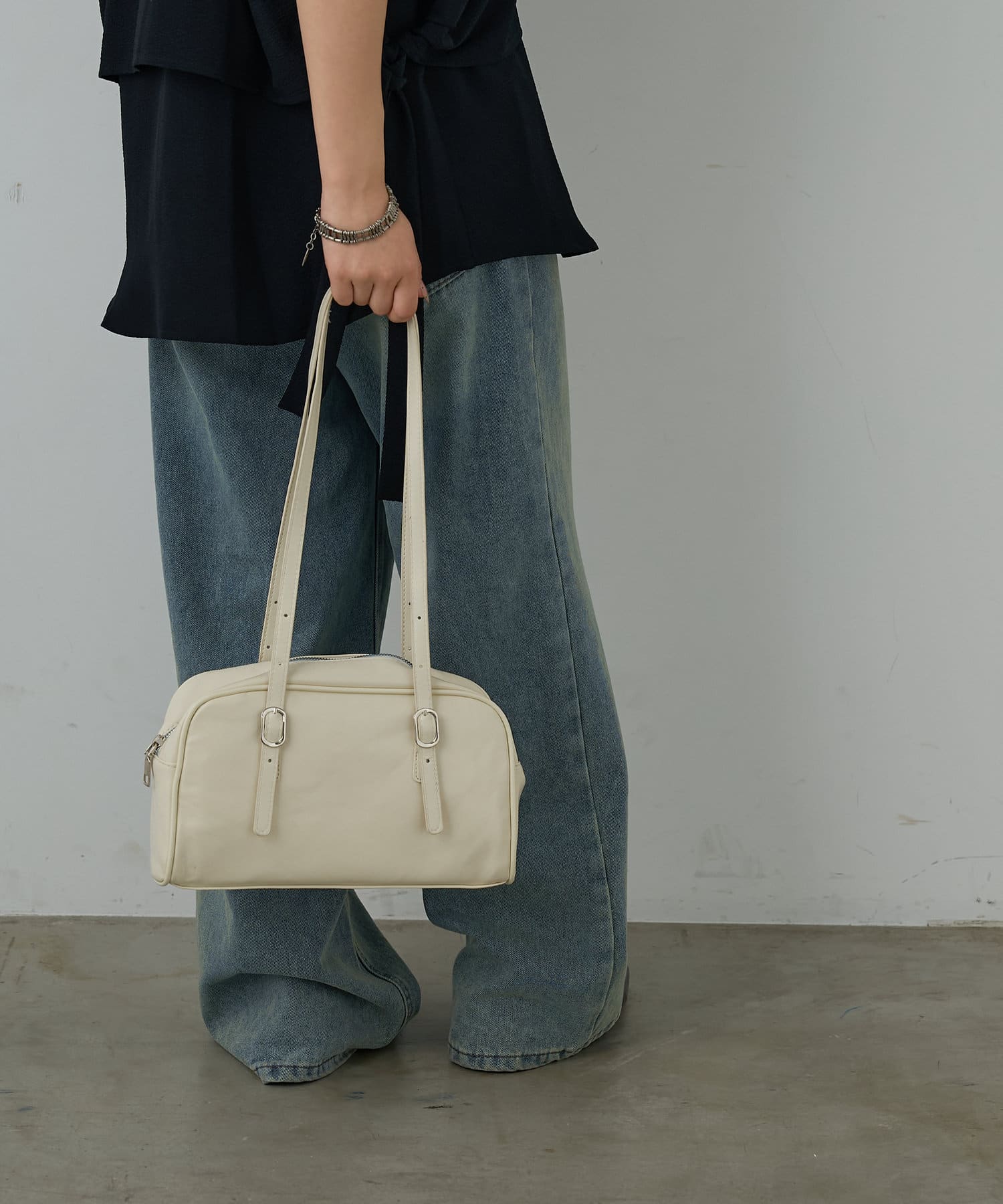 今季トレンドの横長ボストンショルダーバッグ