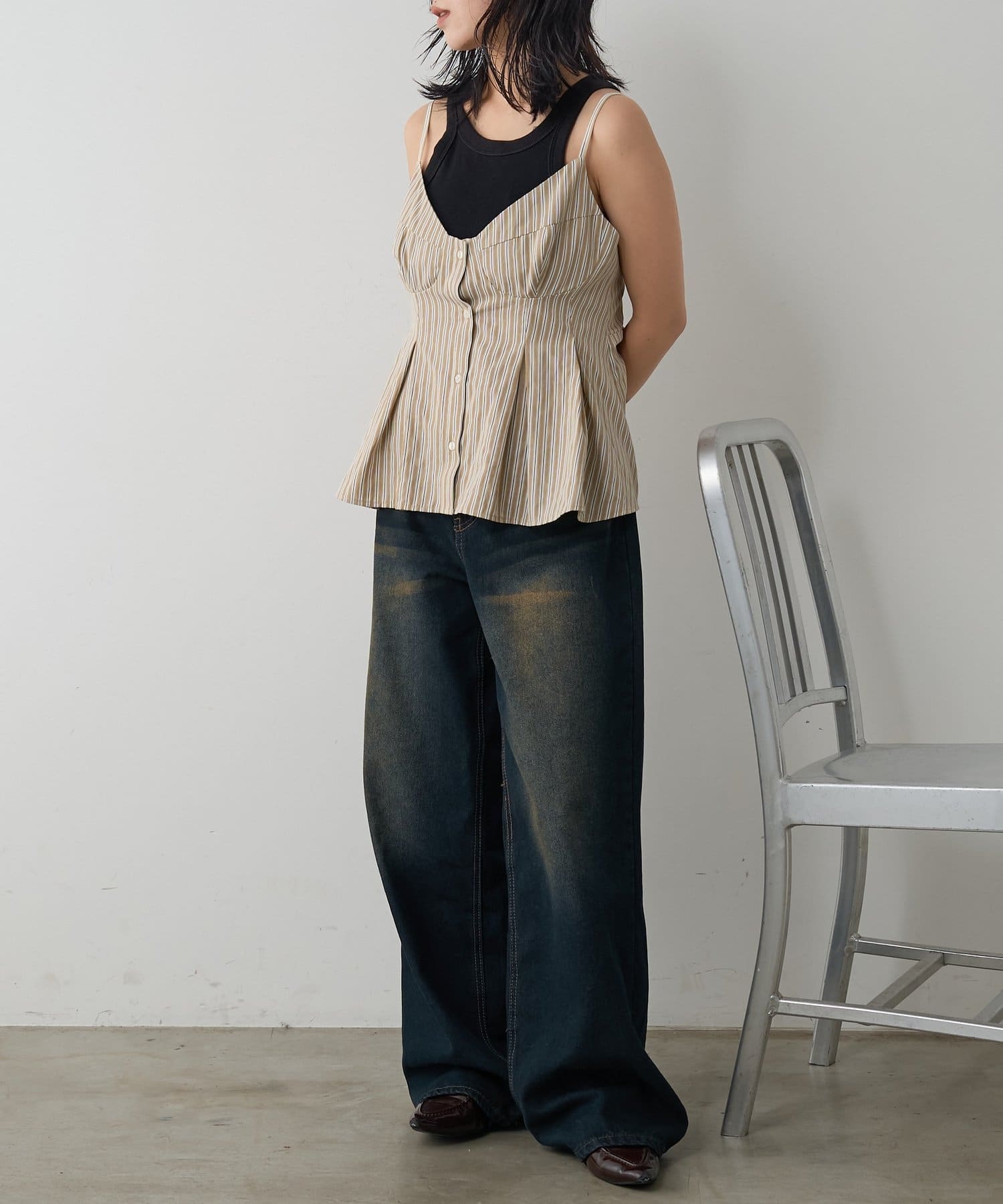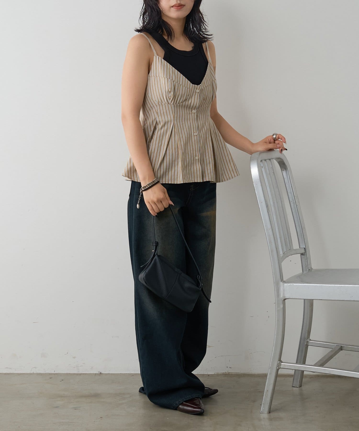 #キャミソール #レイヤードスタイル #ストライプキャミ #トレンドライク #キャミビスチェ