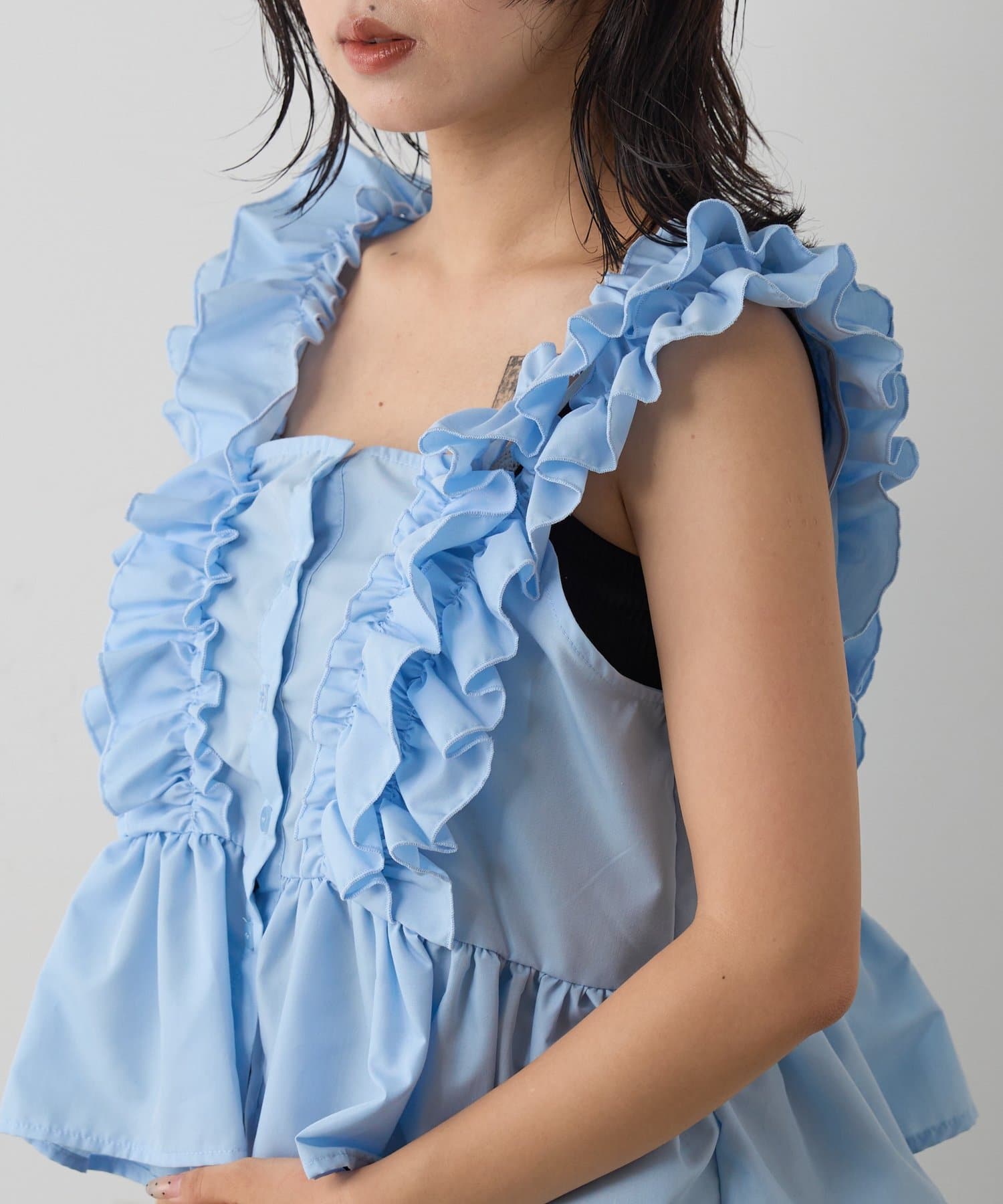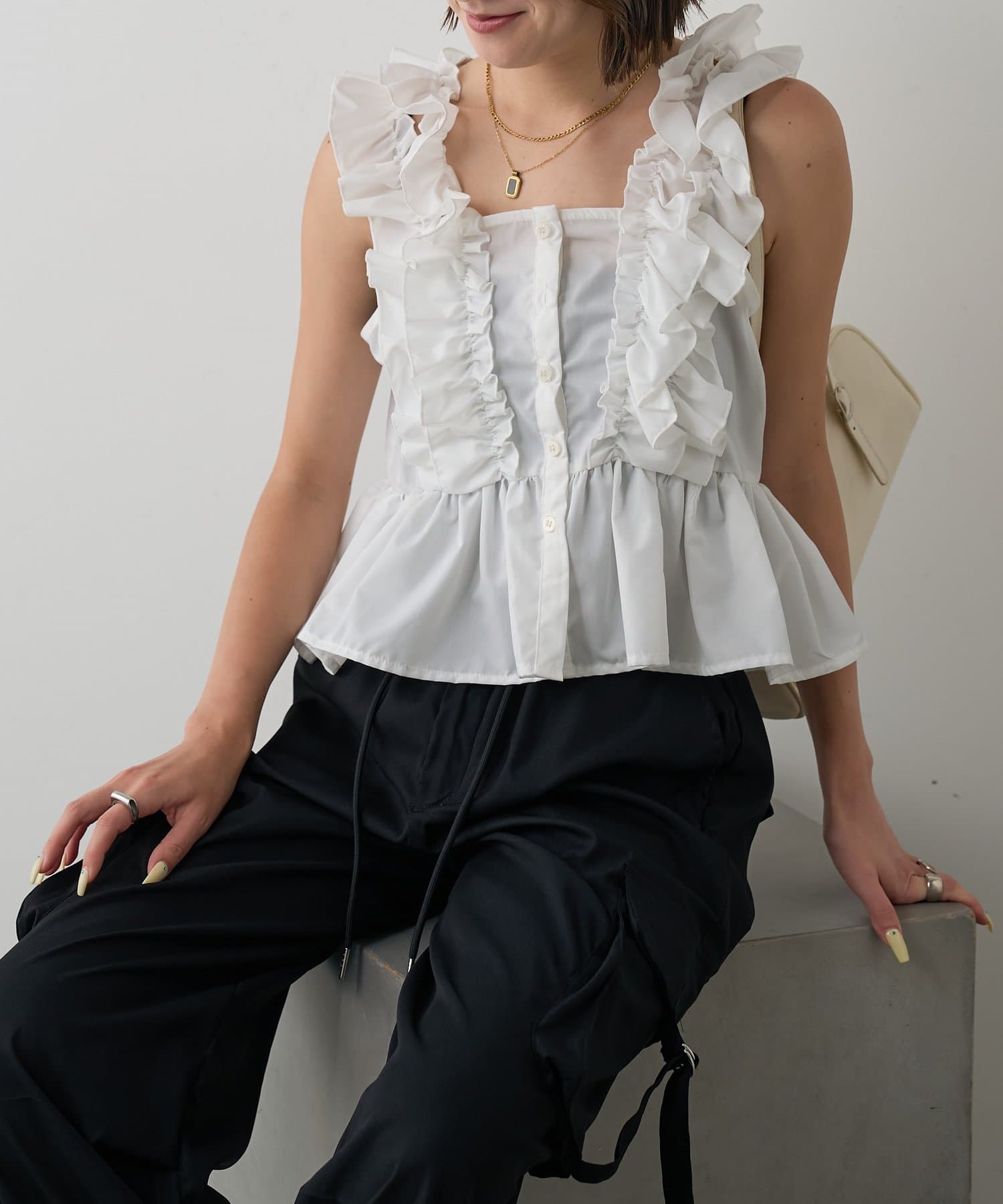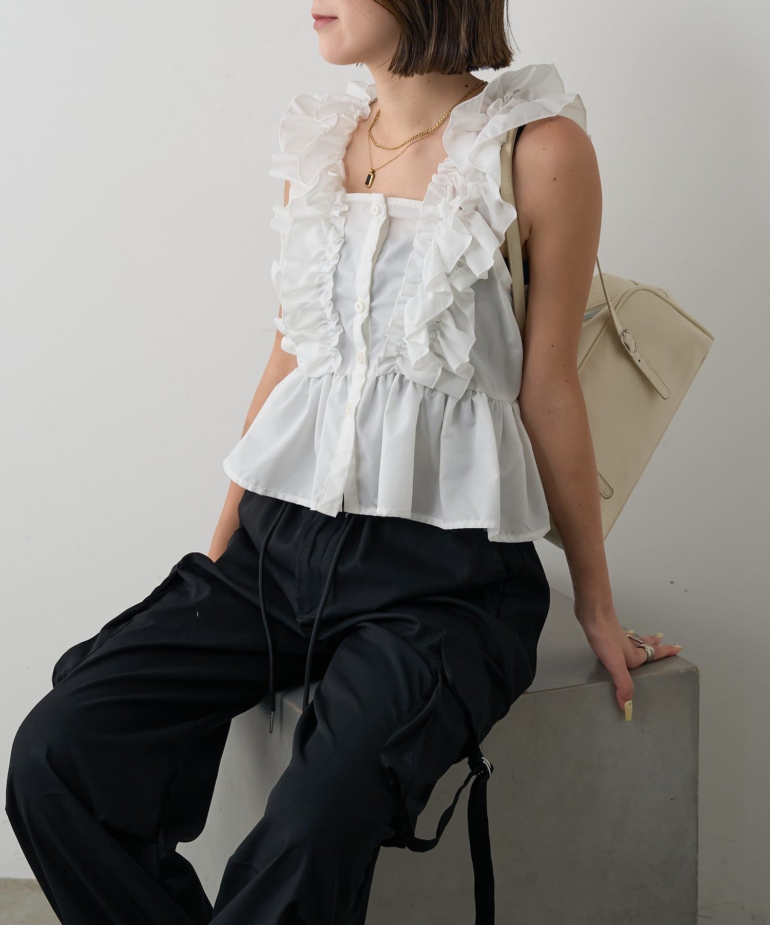 ・ショルダーフリルが顔周りを華やかにしてくれる万能アイテム