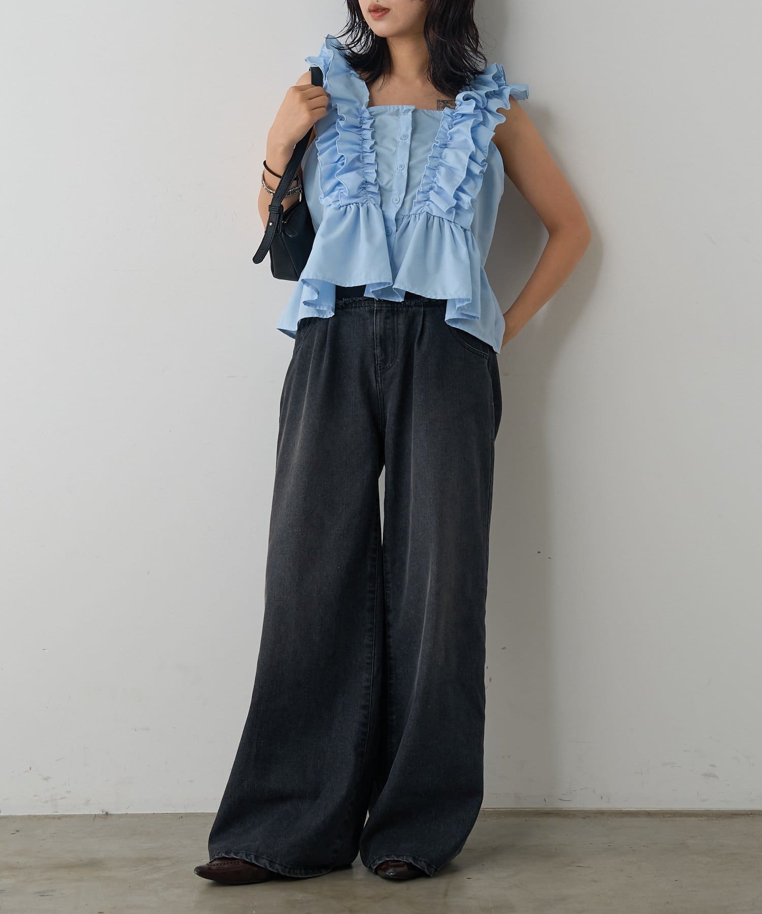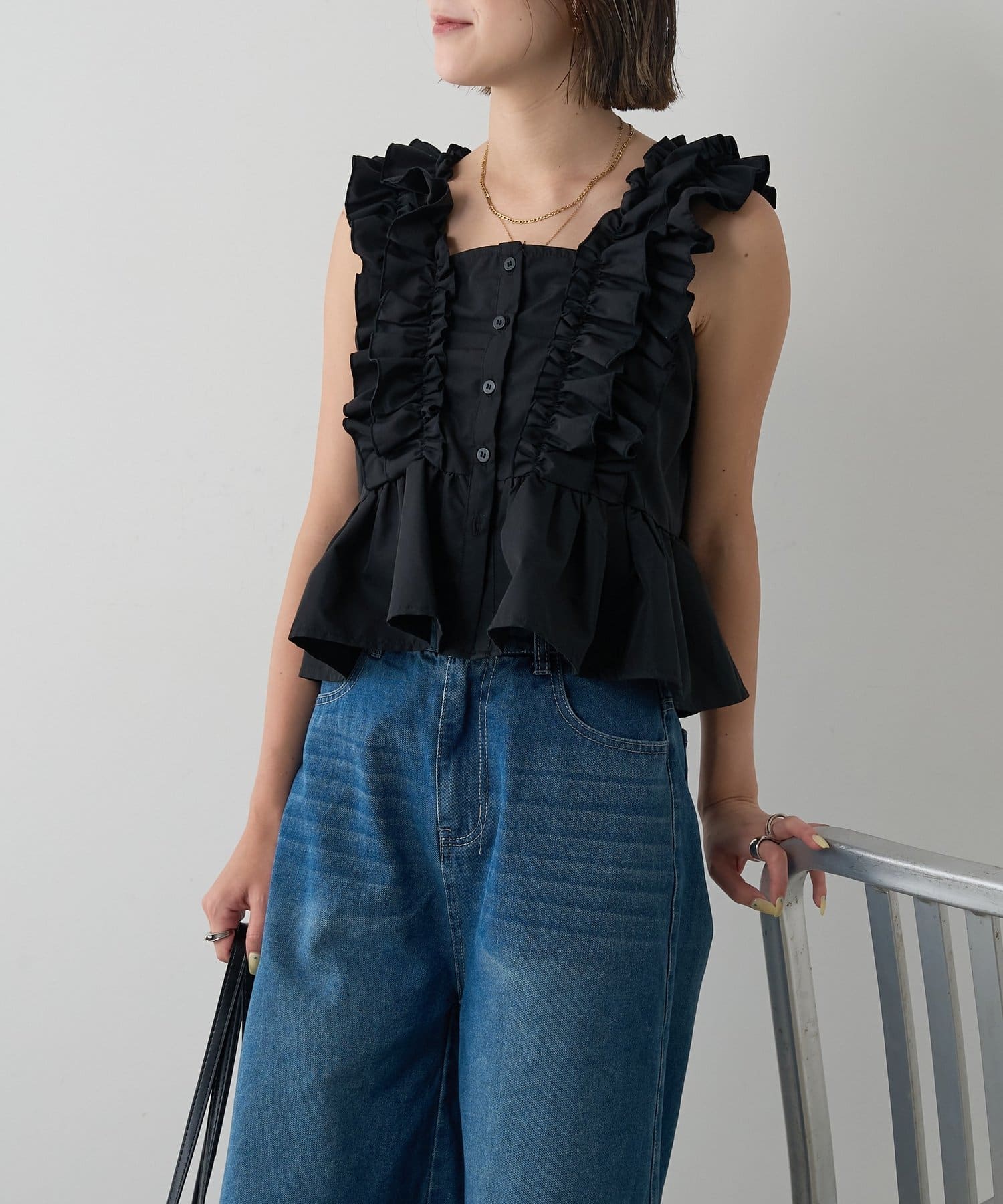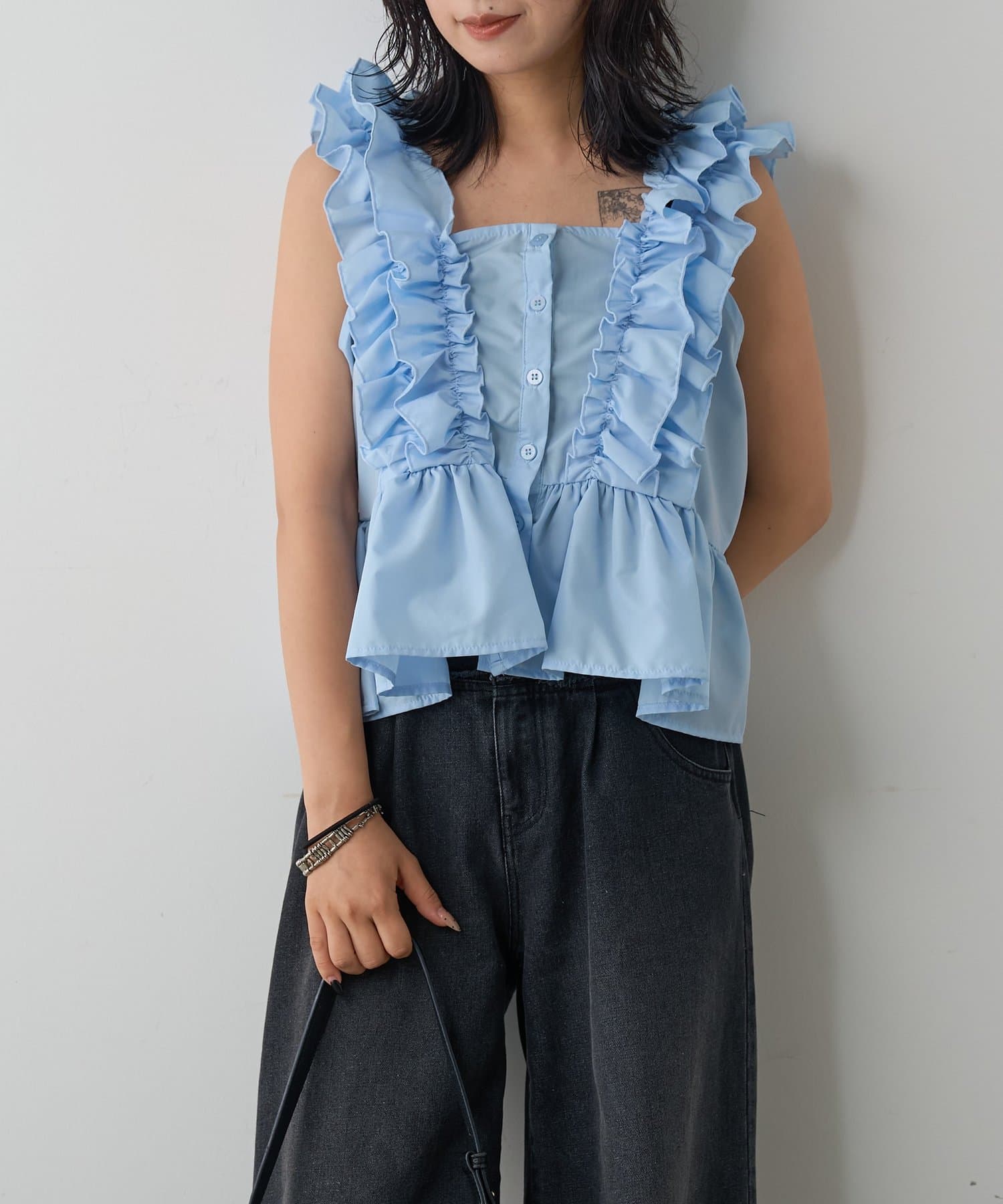 ・ショルダーフリルが顔周りを華やかにしてくれる万能アイテム