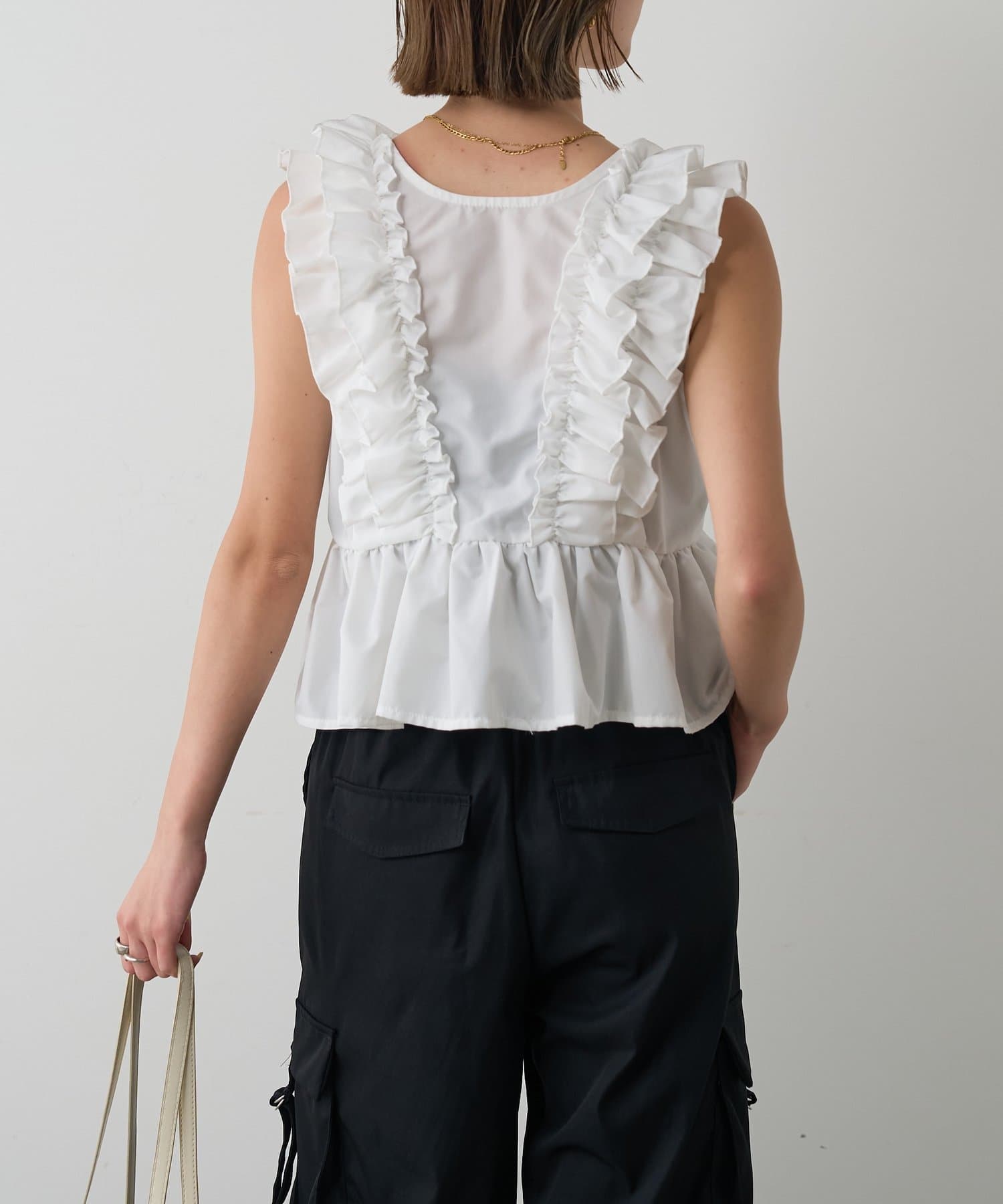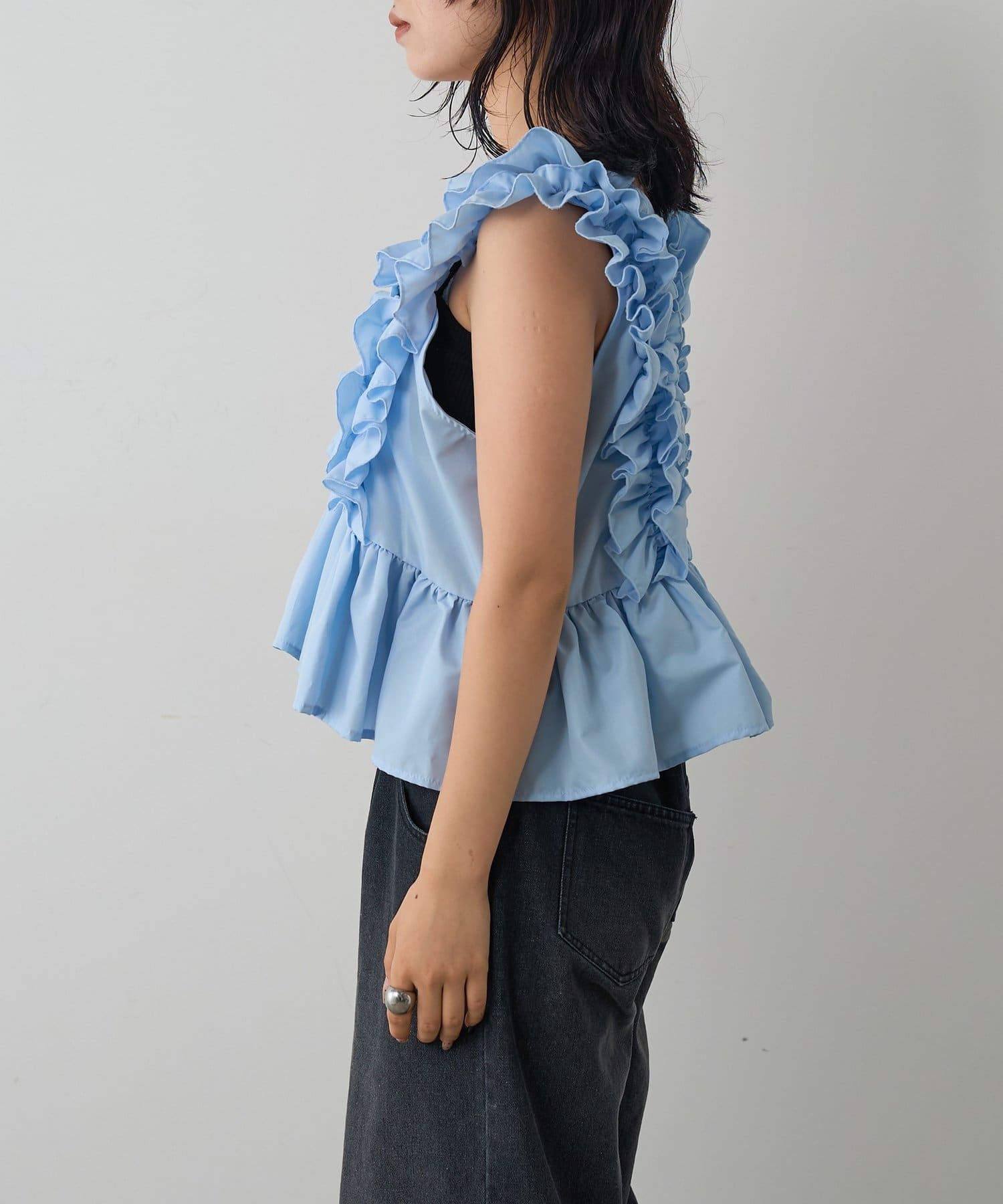【気分で選べる前後2wayブラウス】フリルショルダー2WAYブラウス