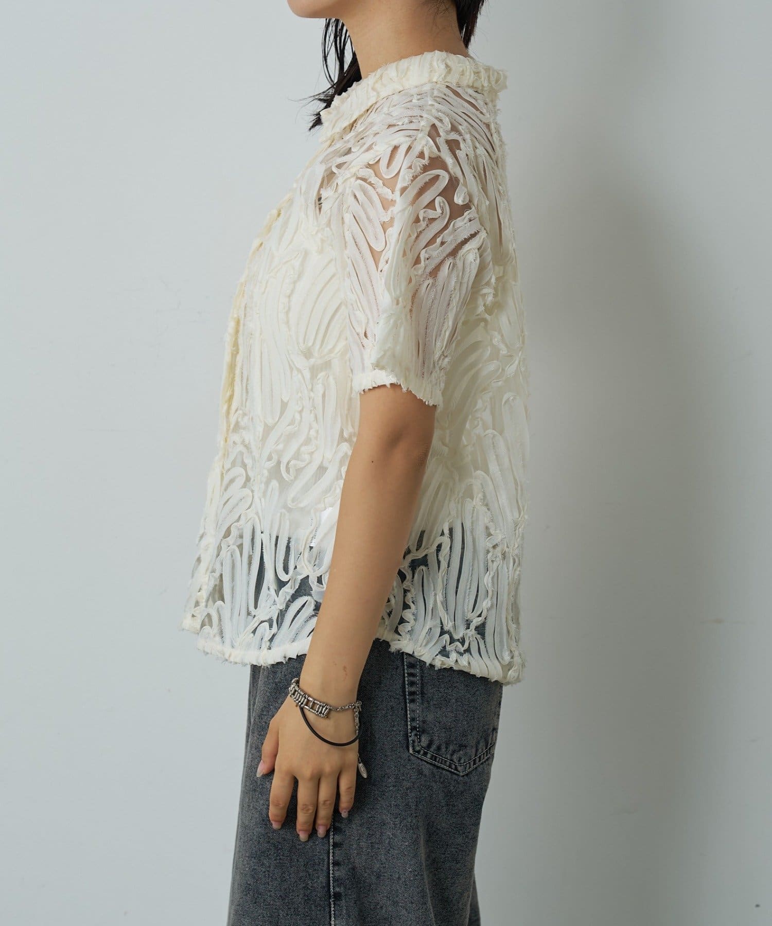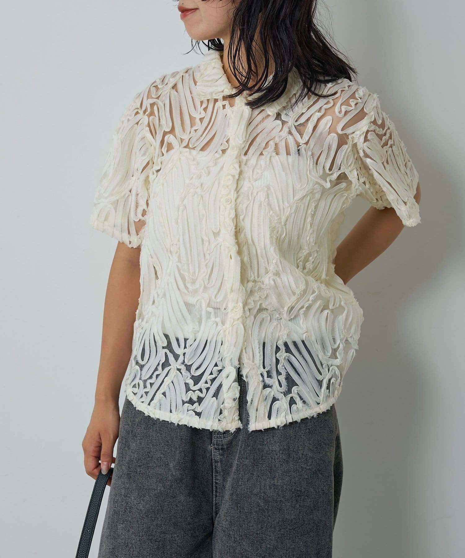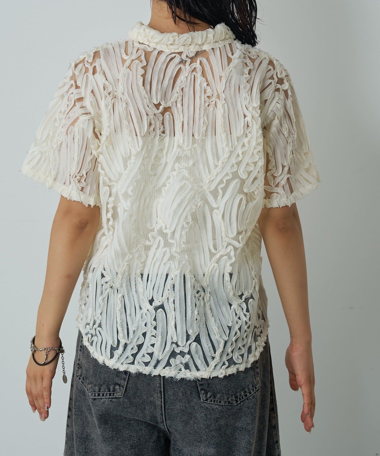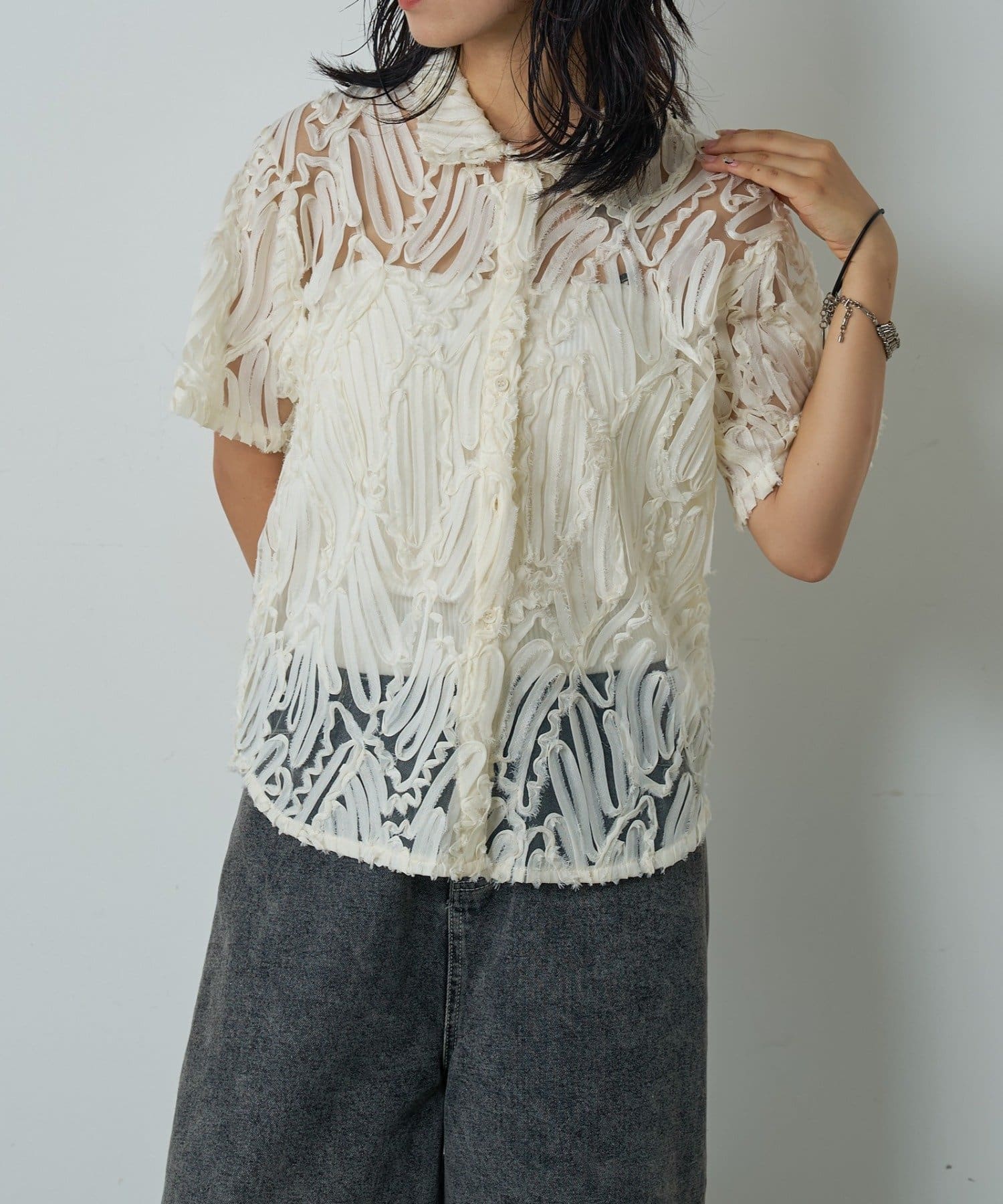 #襟付きシャツ #刺繍レース #レースシャツ #透け感