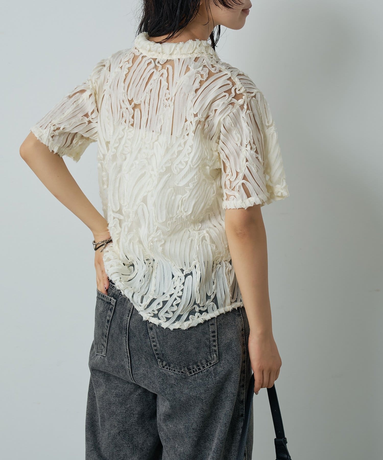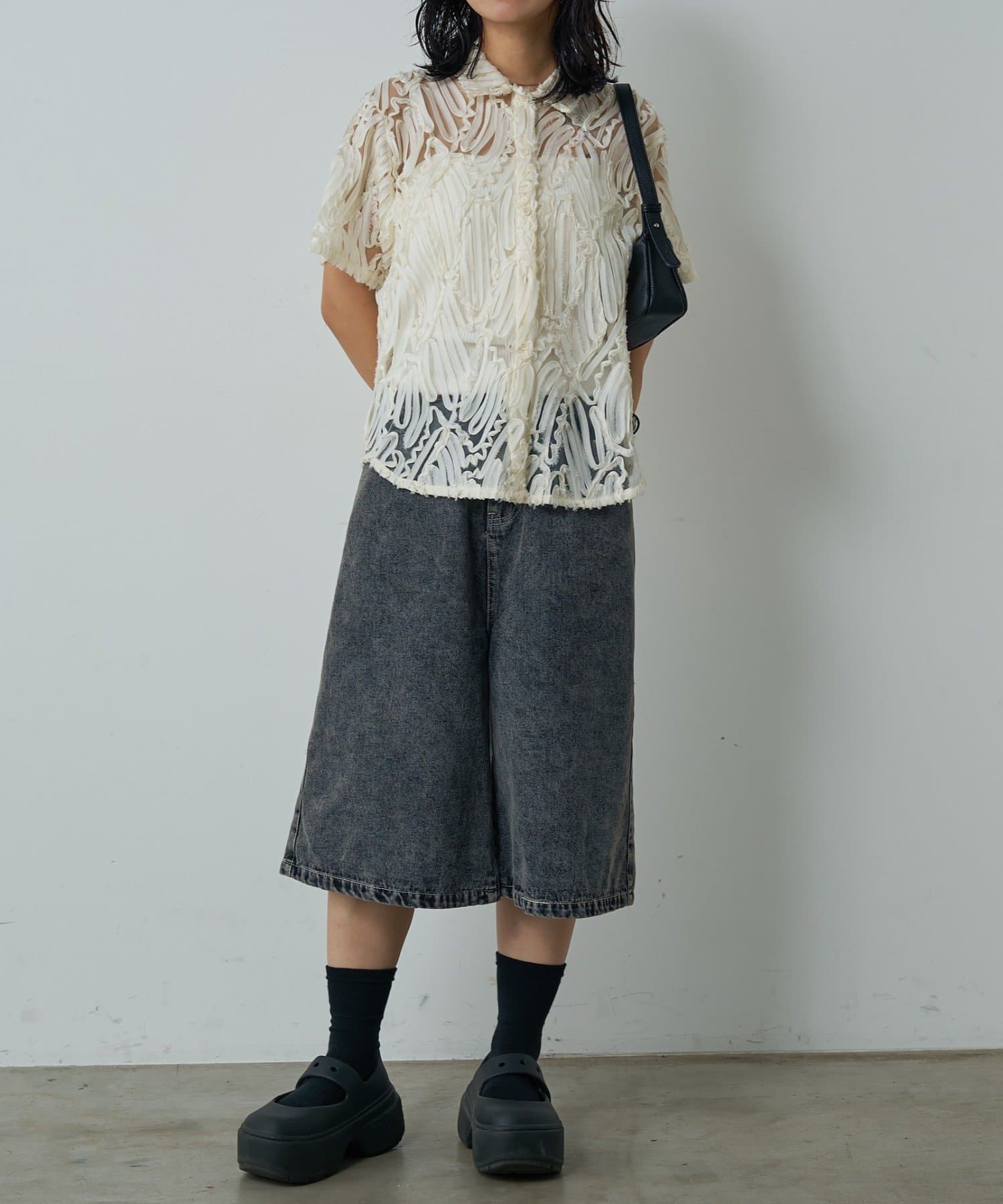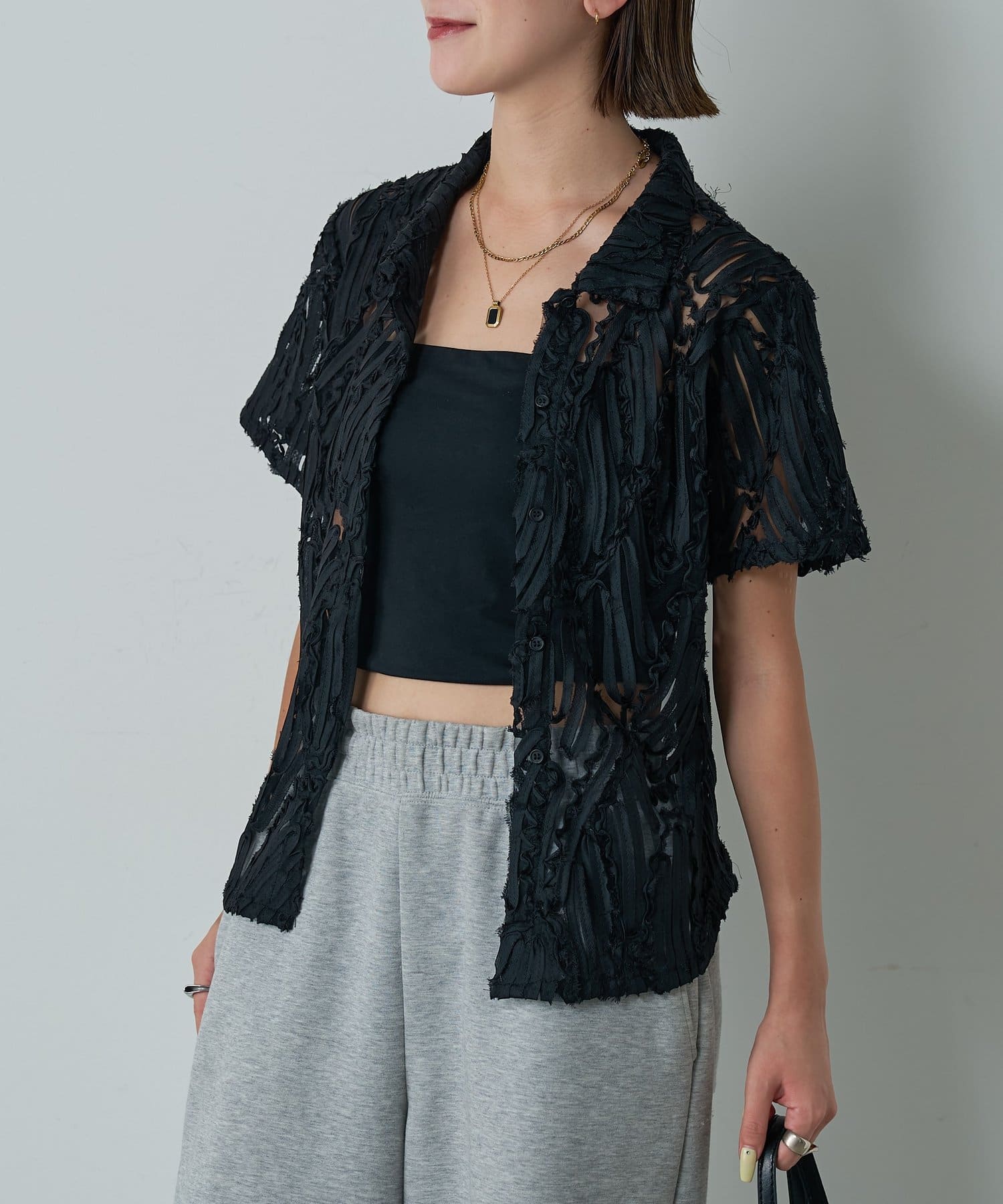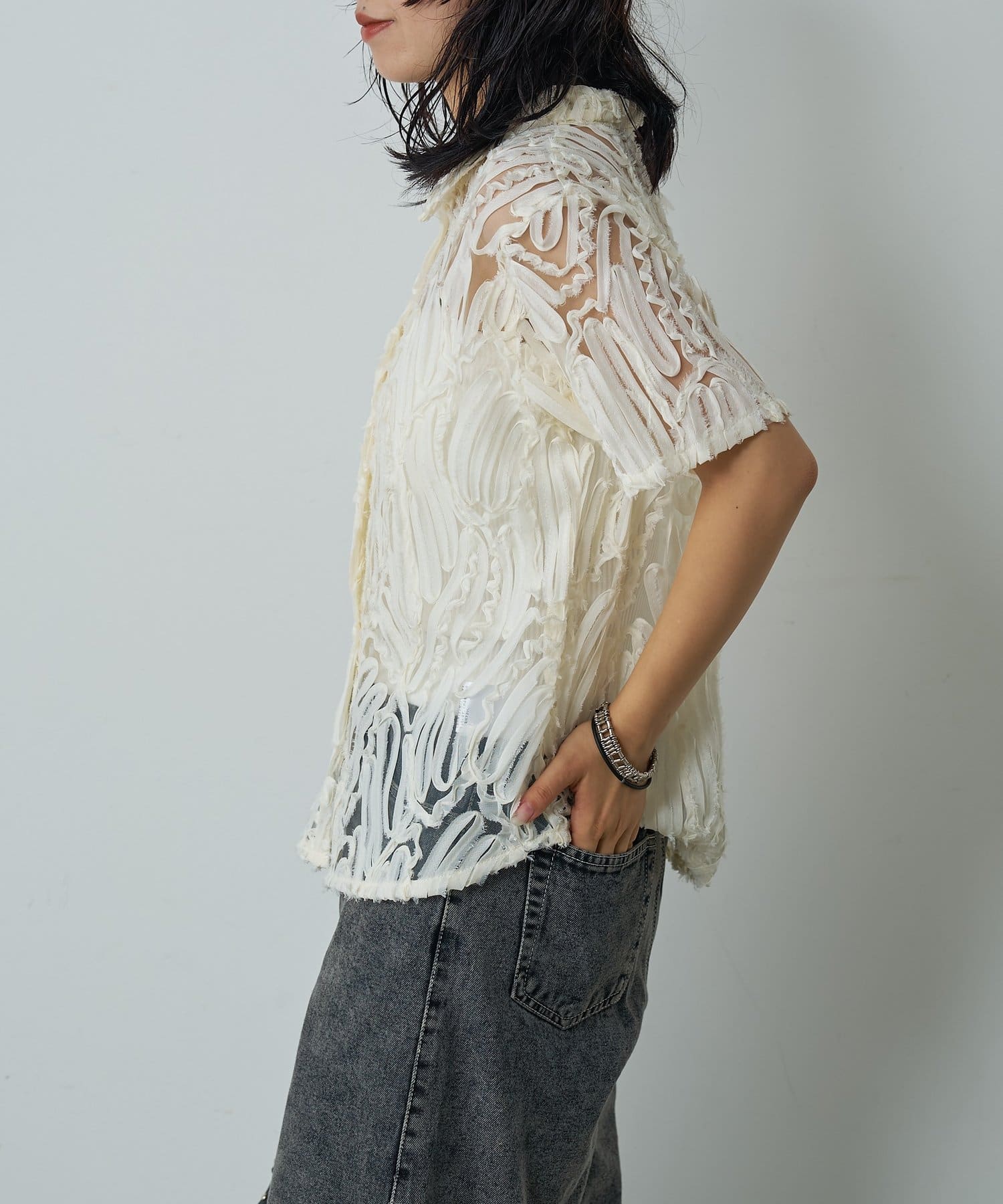 #襟付きシャツ #刺繍レース #レースシャツ #透け感