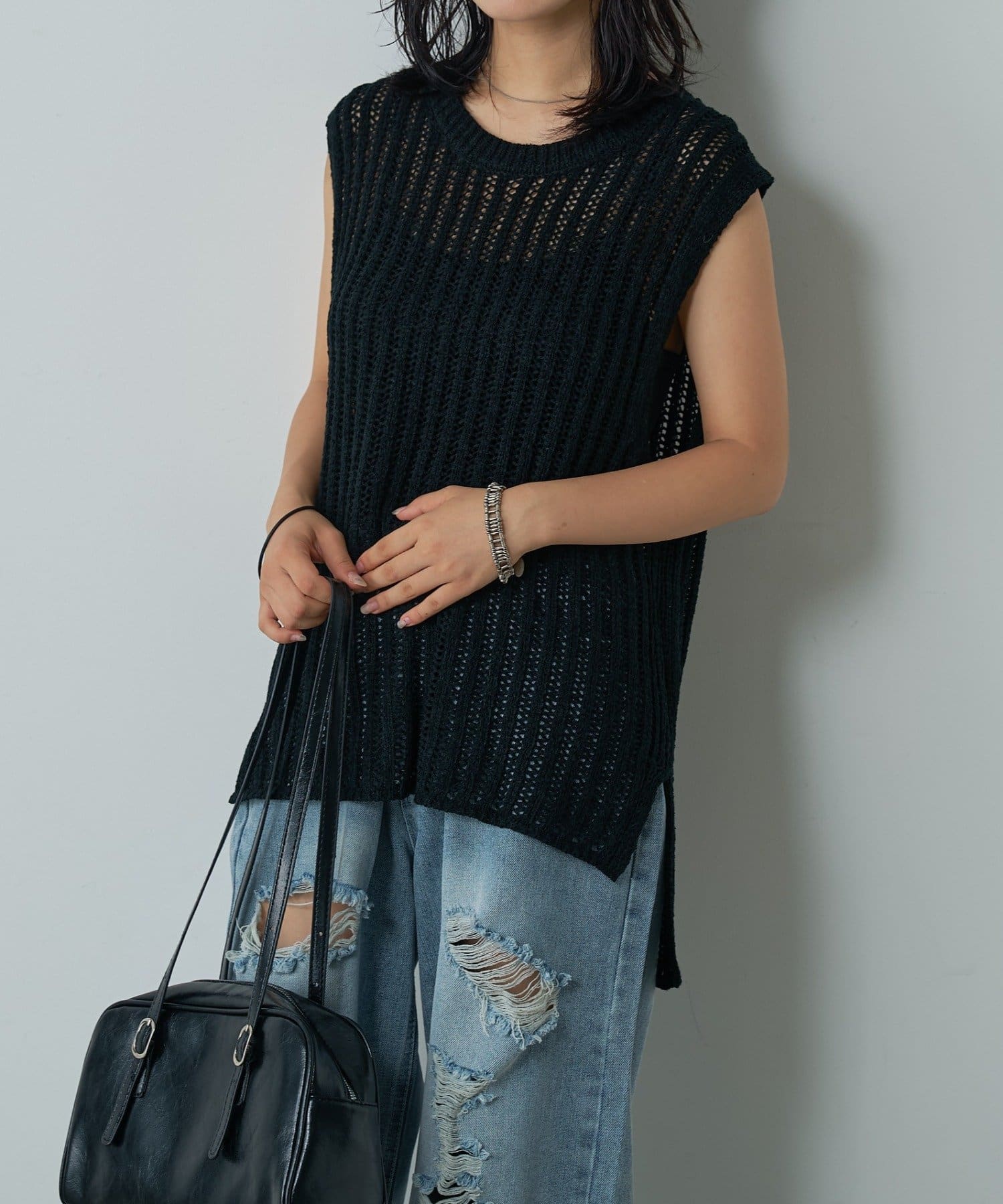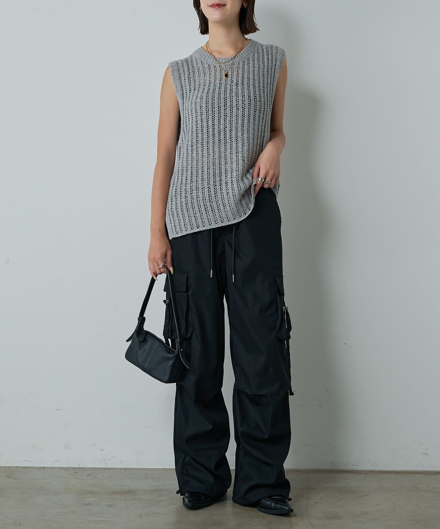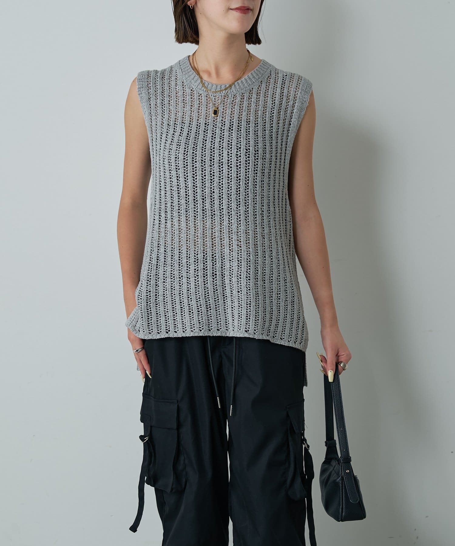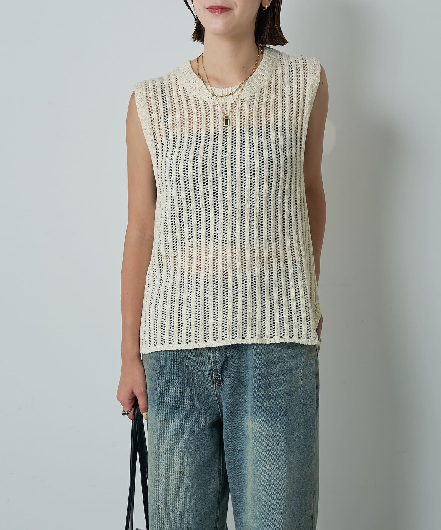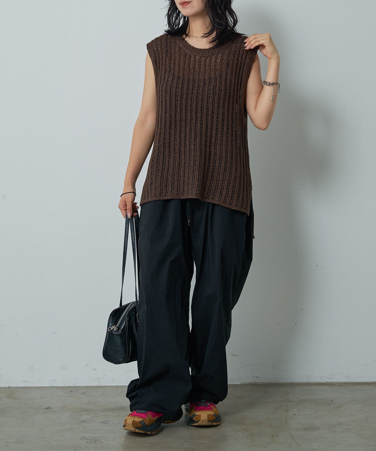 ・透け感のあるアイテムなので、インナーにキャミソールやタンクトップと合わせるのがおすすめ。
