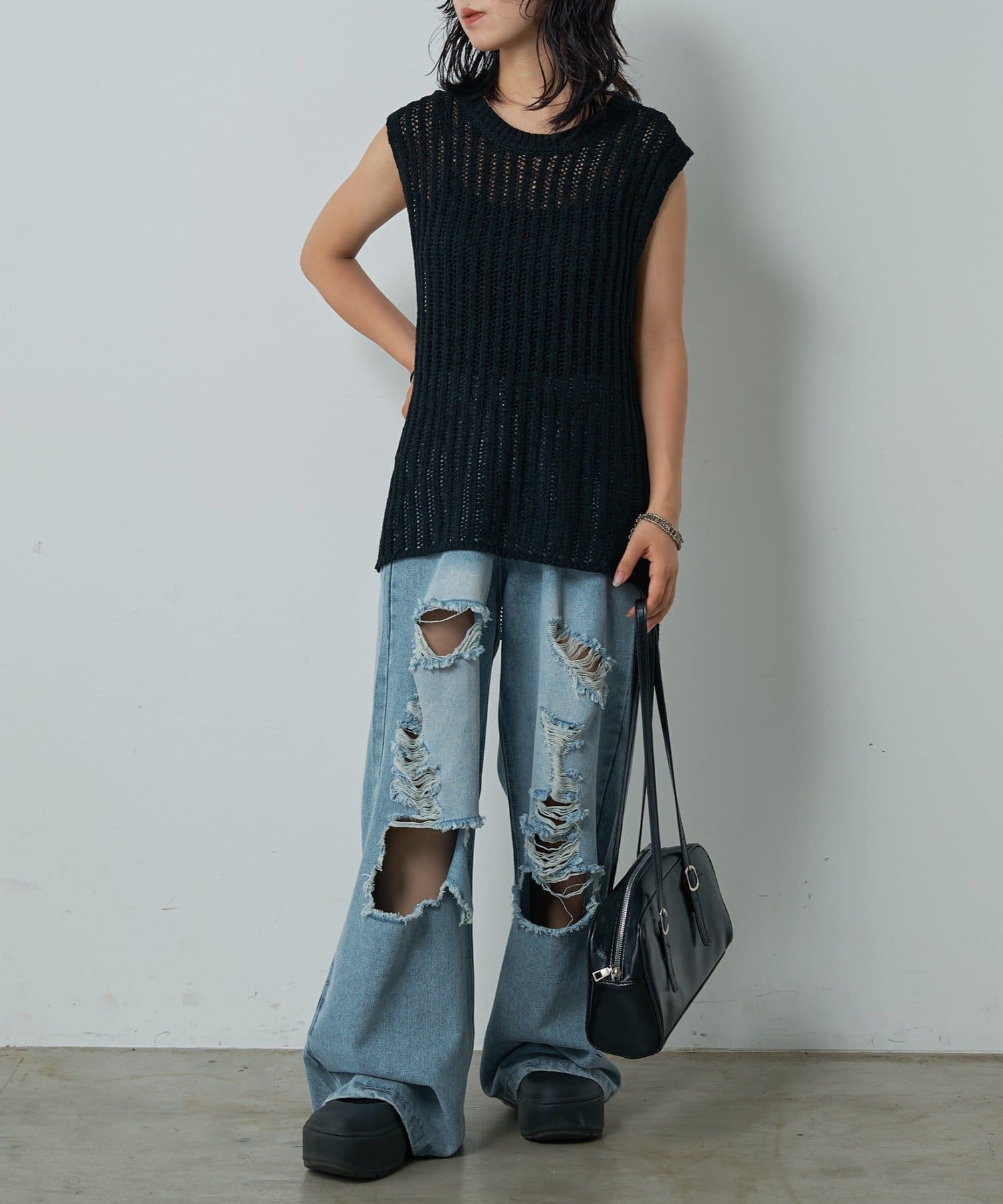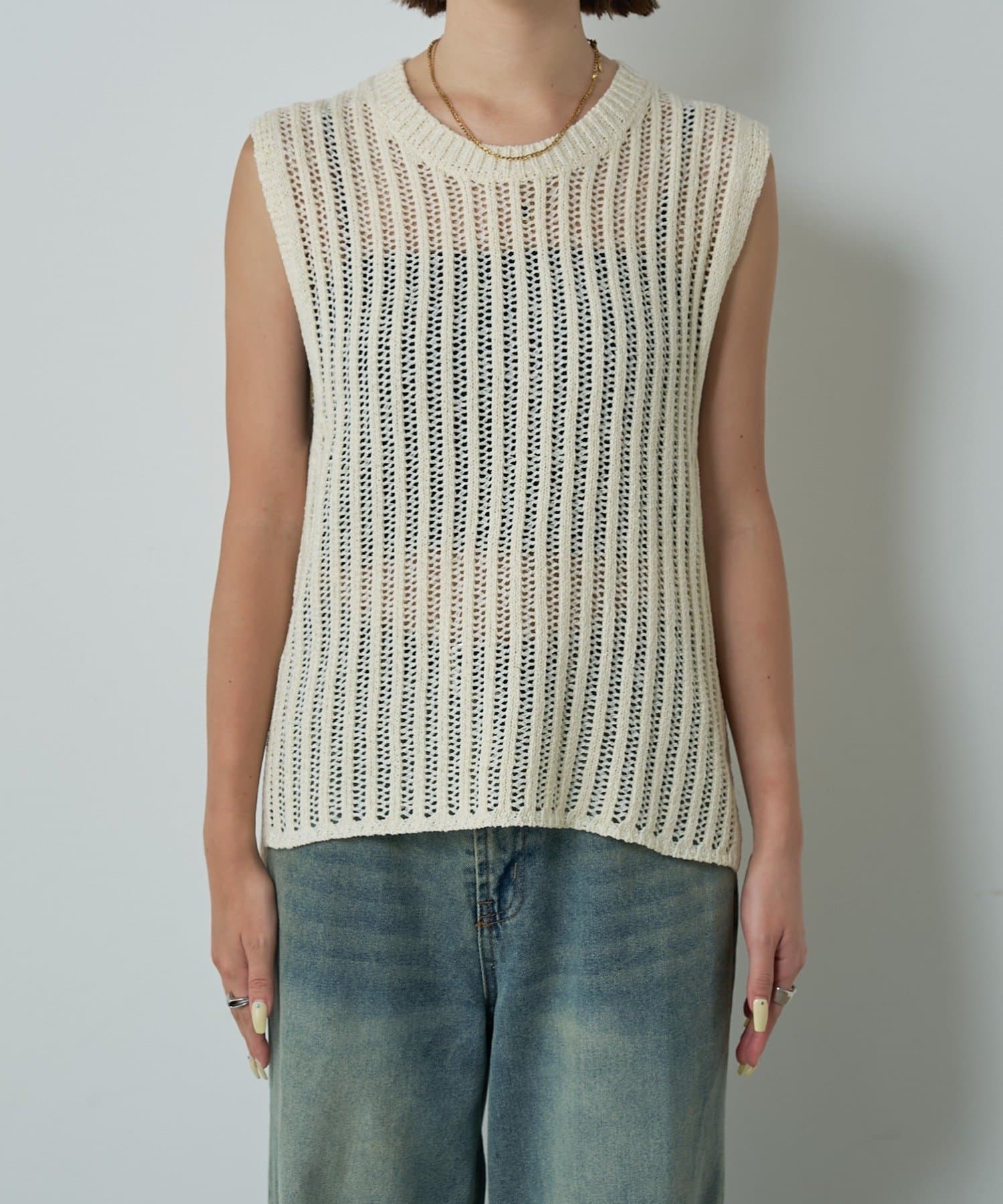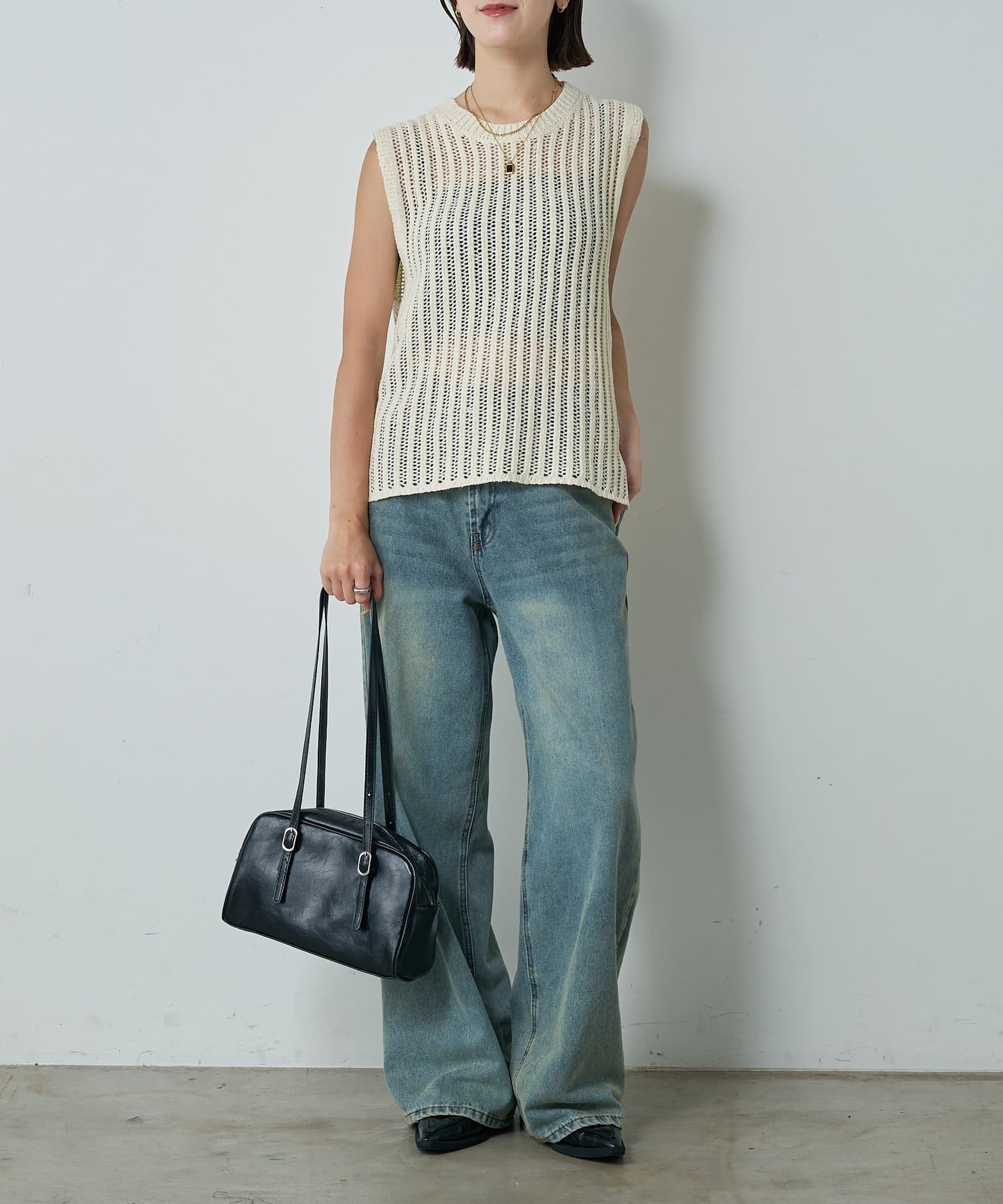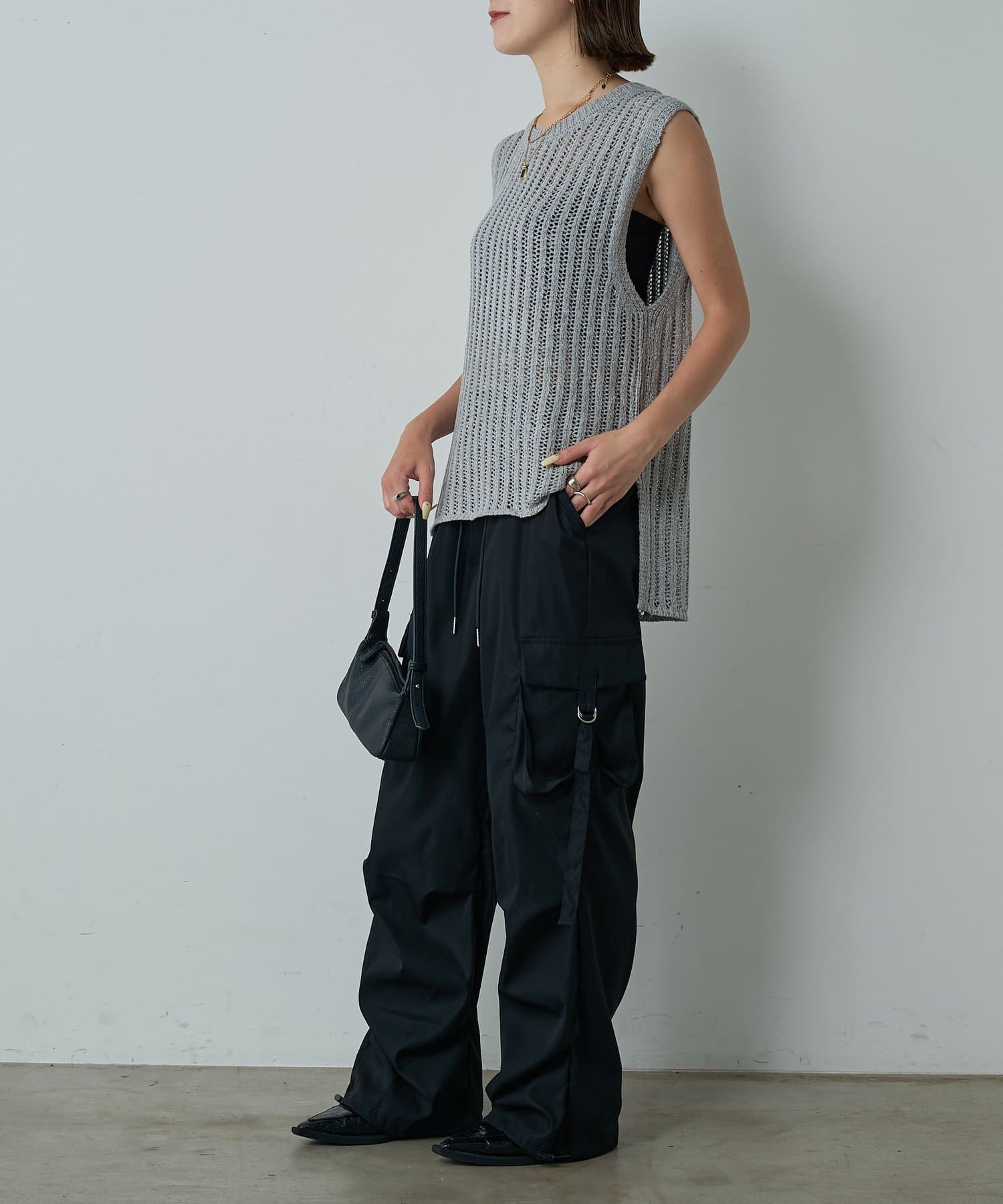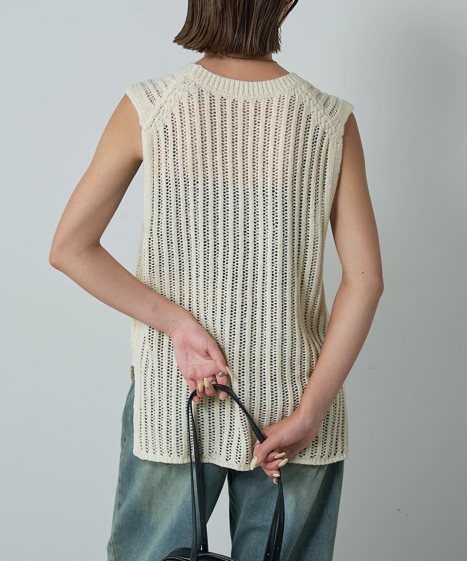 ・透け感のあるアイテムなので、インナーにキャミソールやタンクトップと合わせるのがおすすめ。