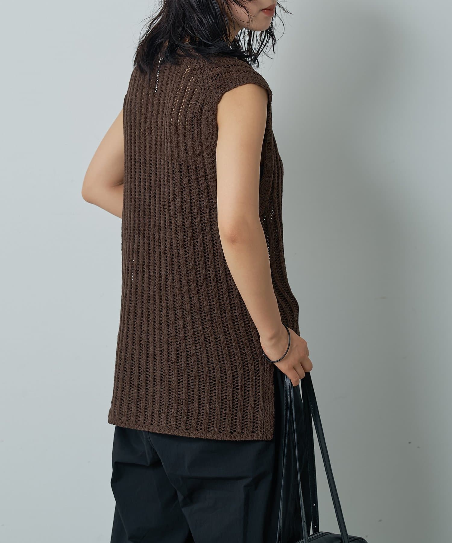 ・シンプルながらも存在感のあるテープヤーン素材のニット