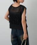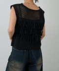 ビスチェを重ねたようなデザインが目を惹く、フリンジビスチェ風プルオーバー