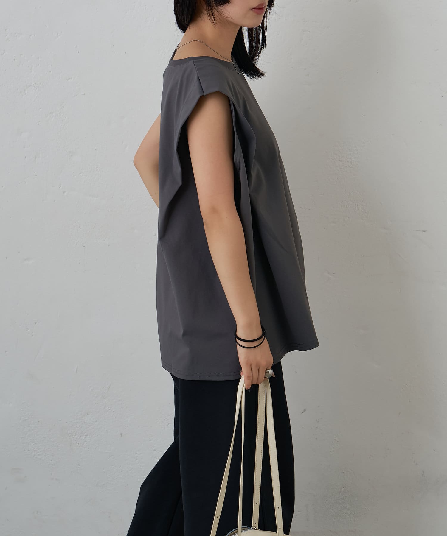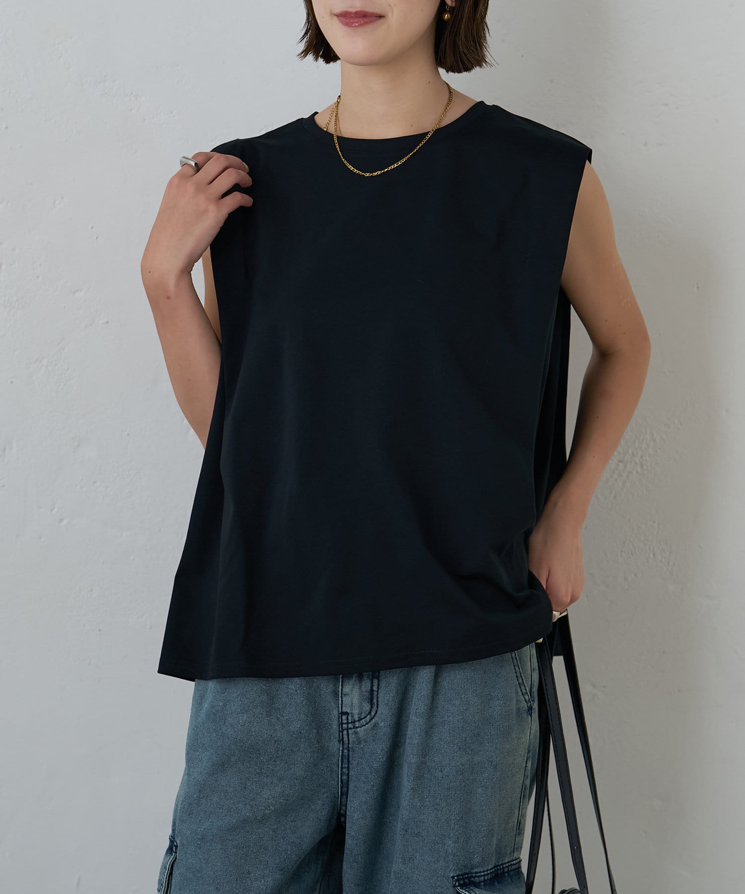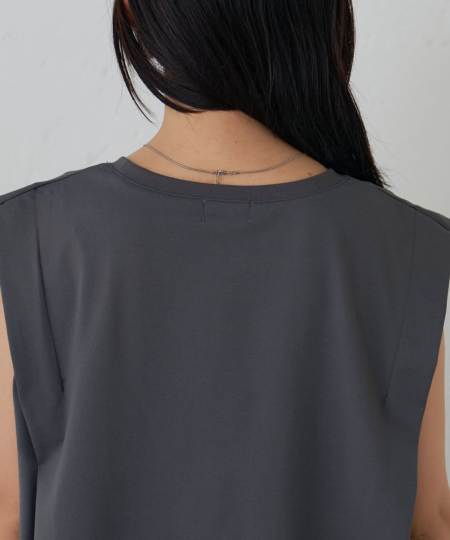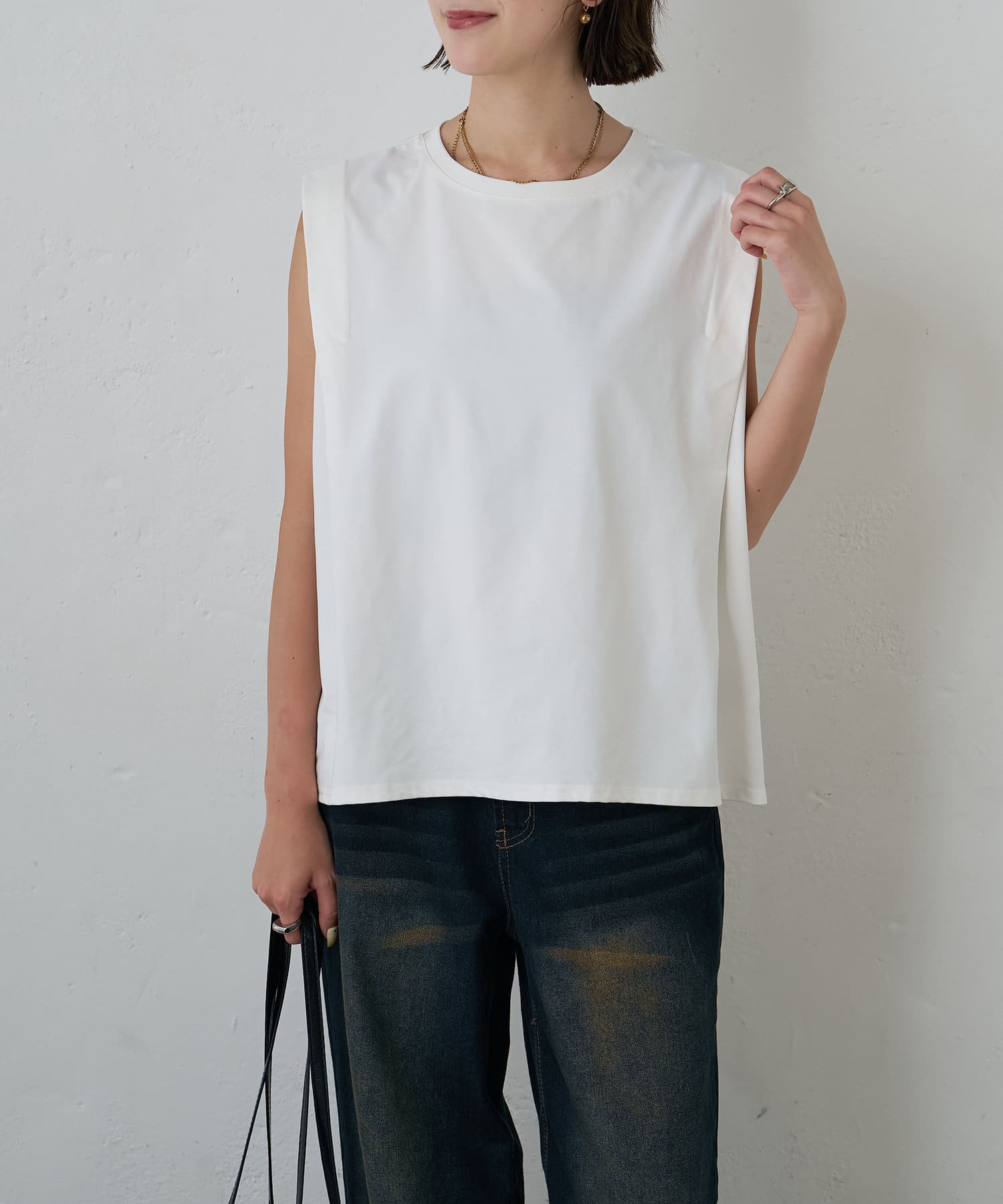 ・クルーネックと程よい丈感のベーシックなノースリブ