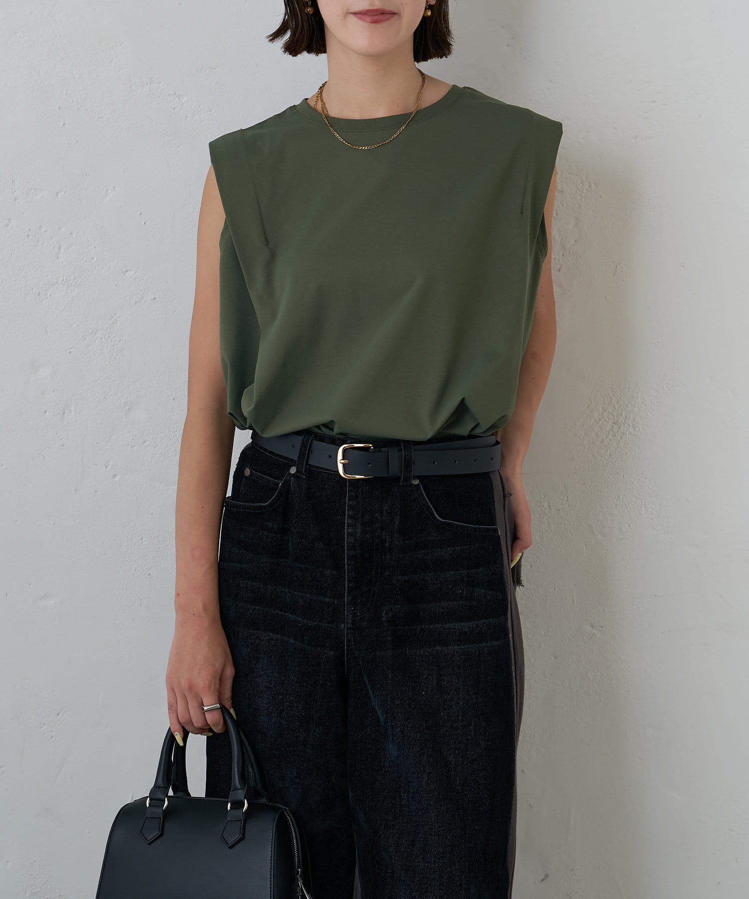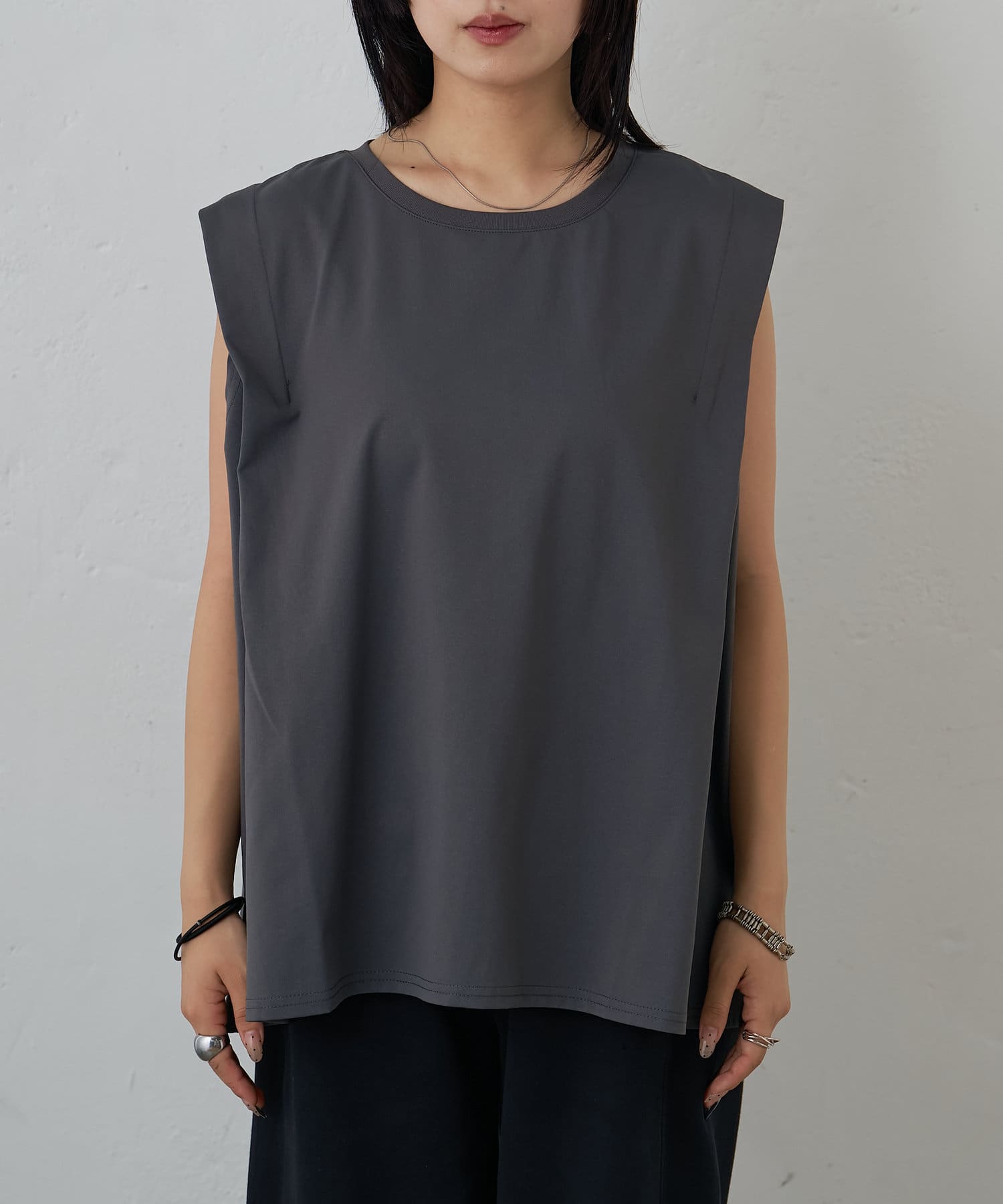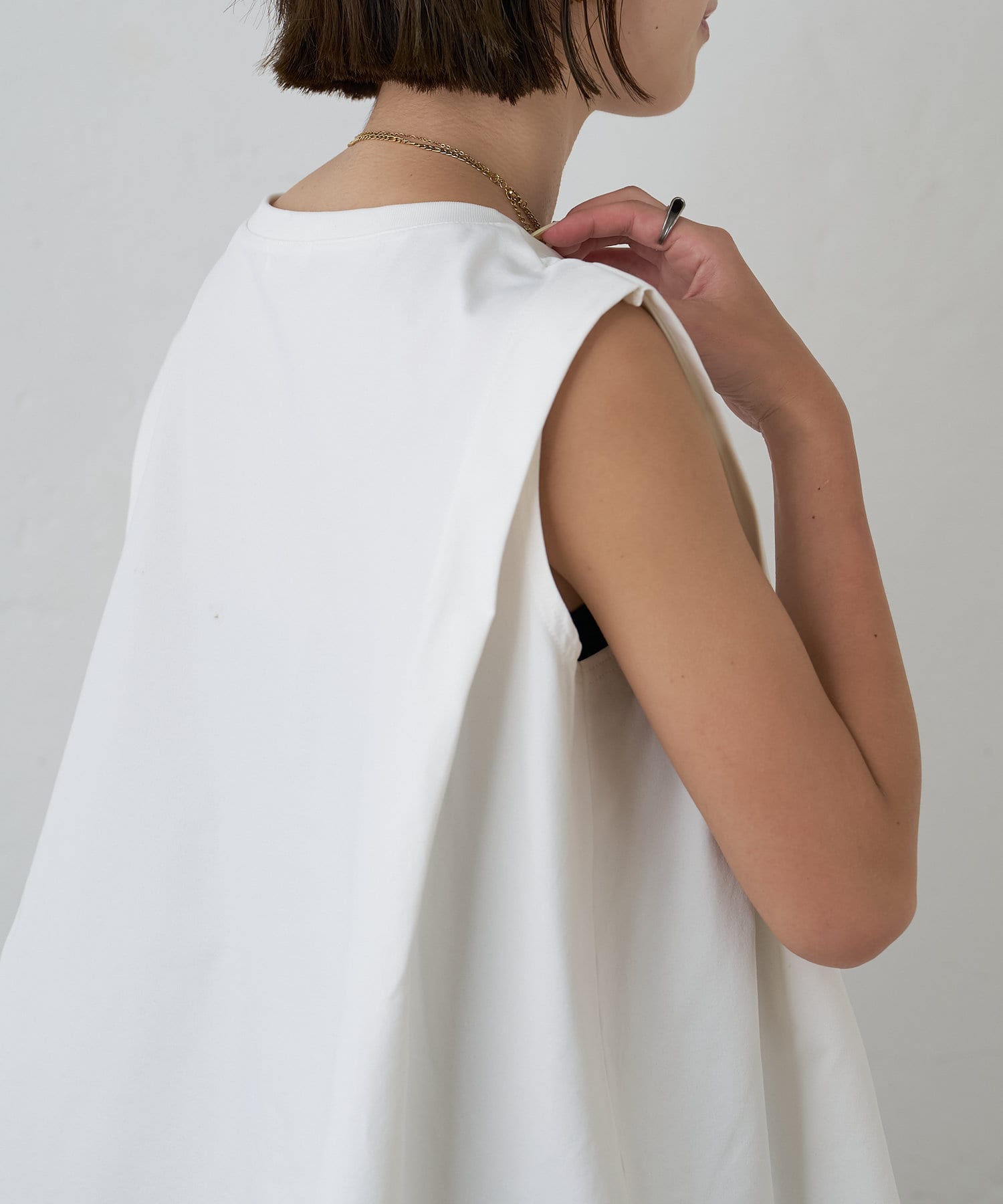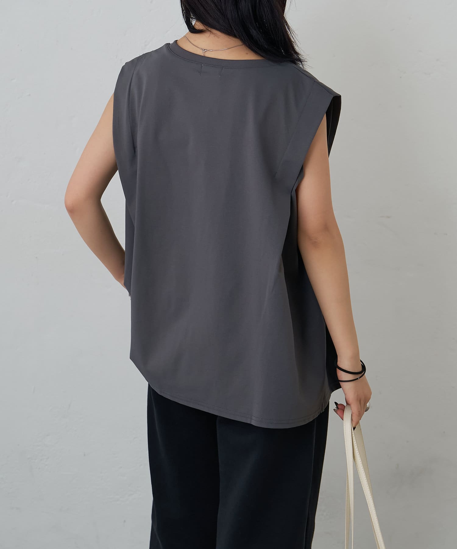 ・クルーネックと程よい丈感のベーシックなノースリブ