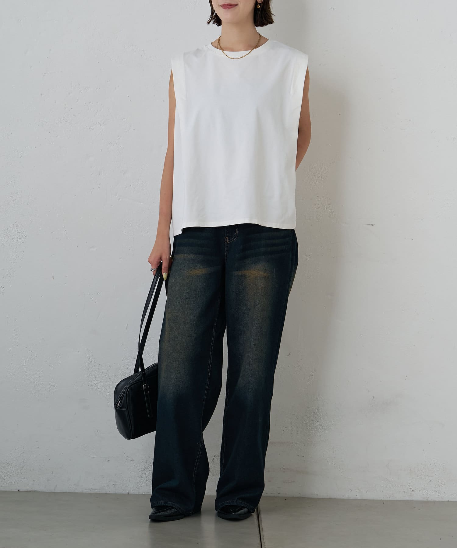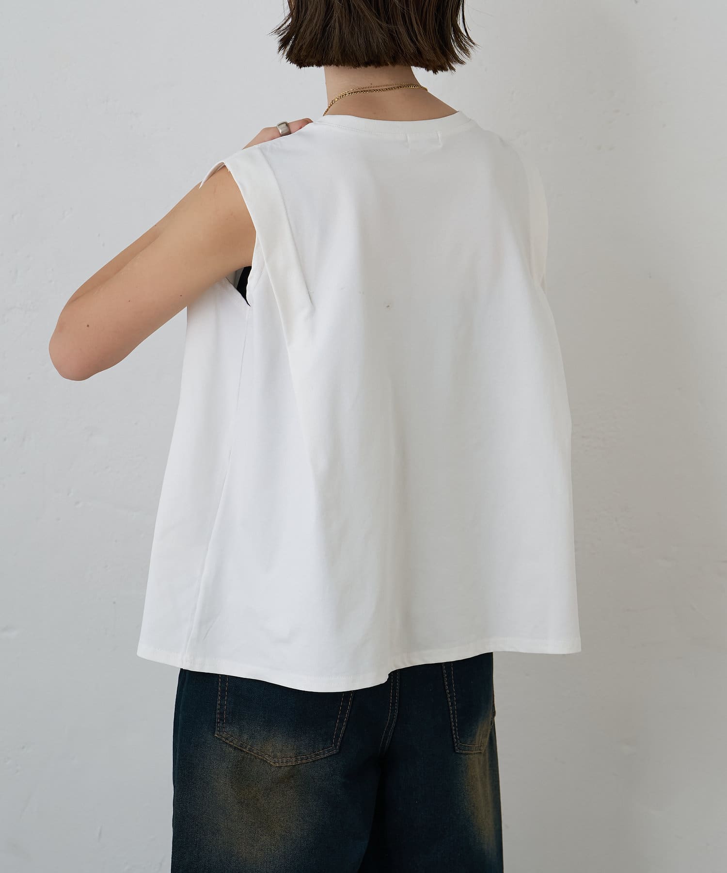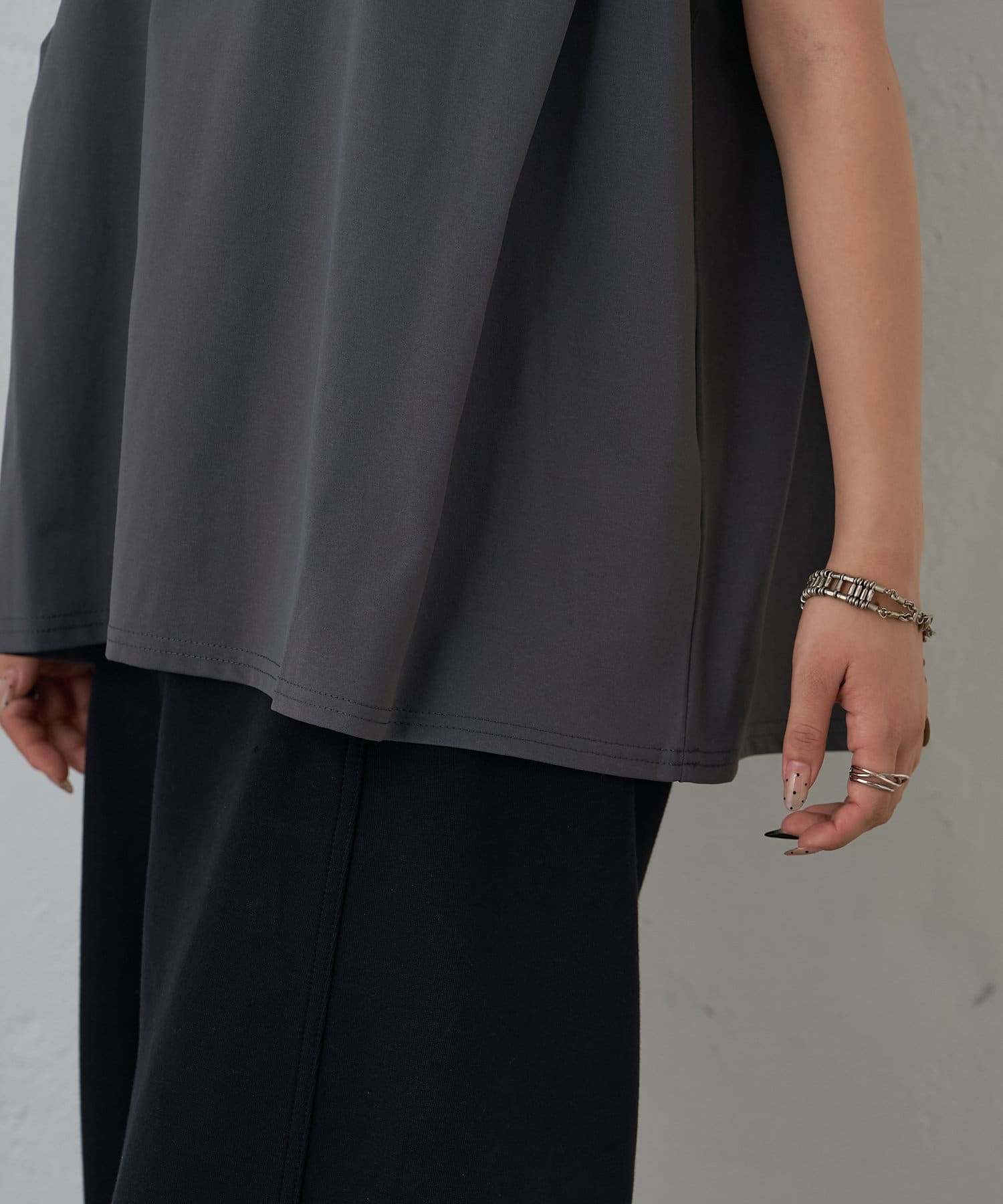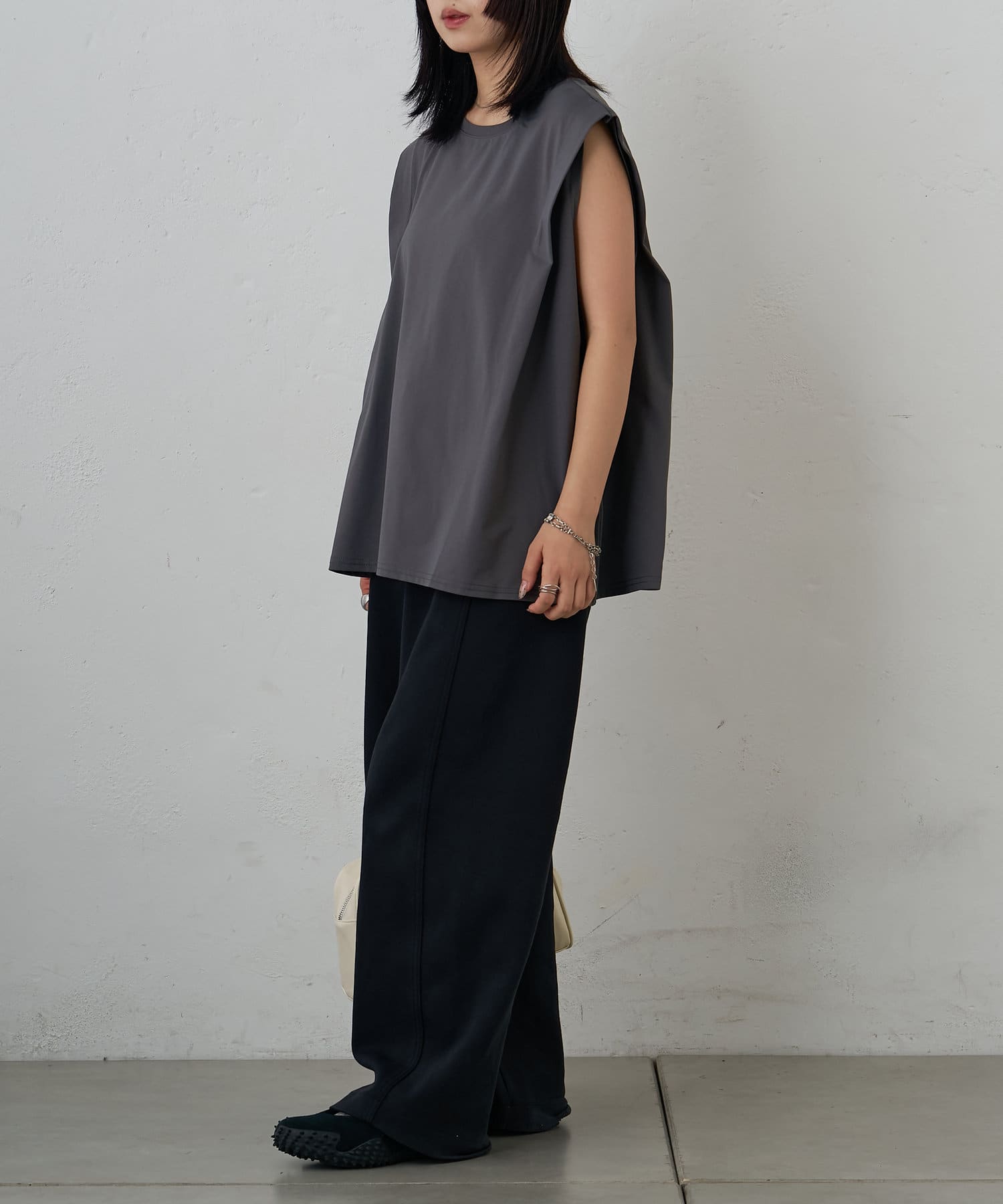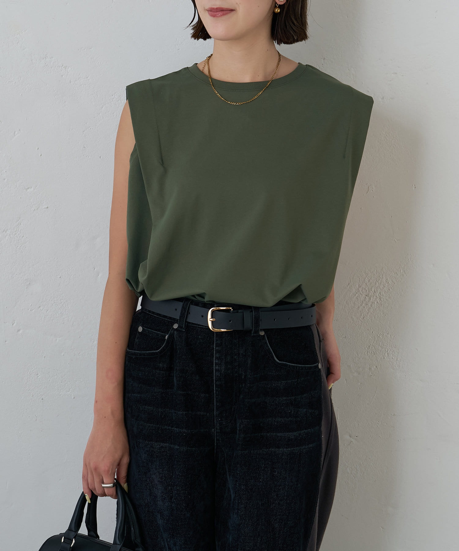 ・クルーネックと程よい丈感のベーシックなノースリブ