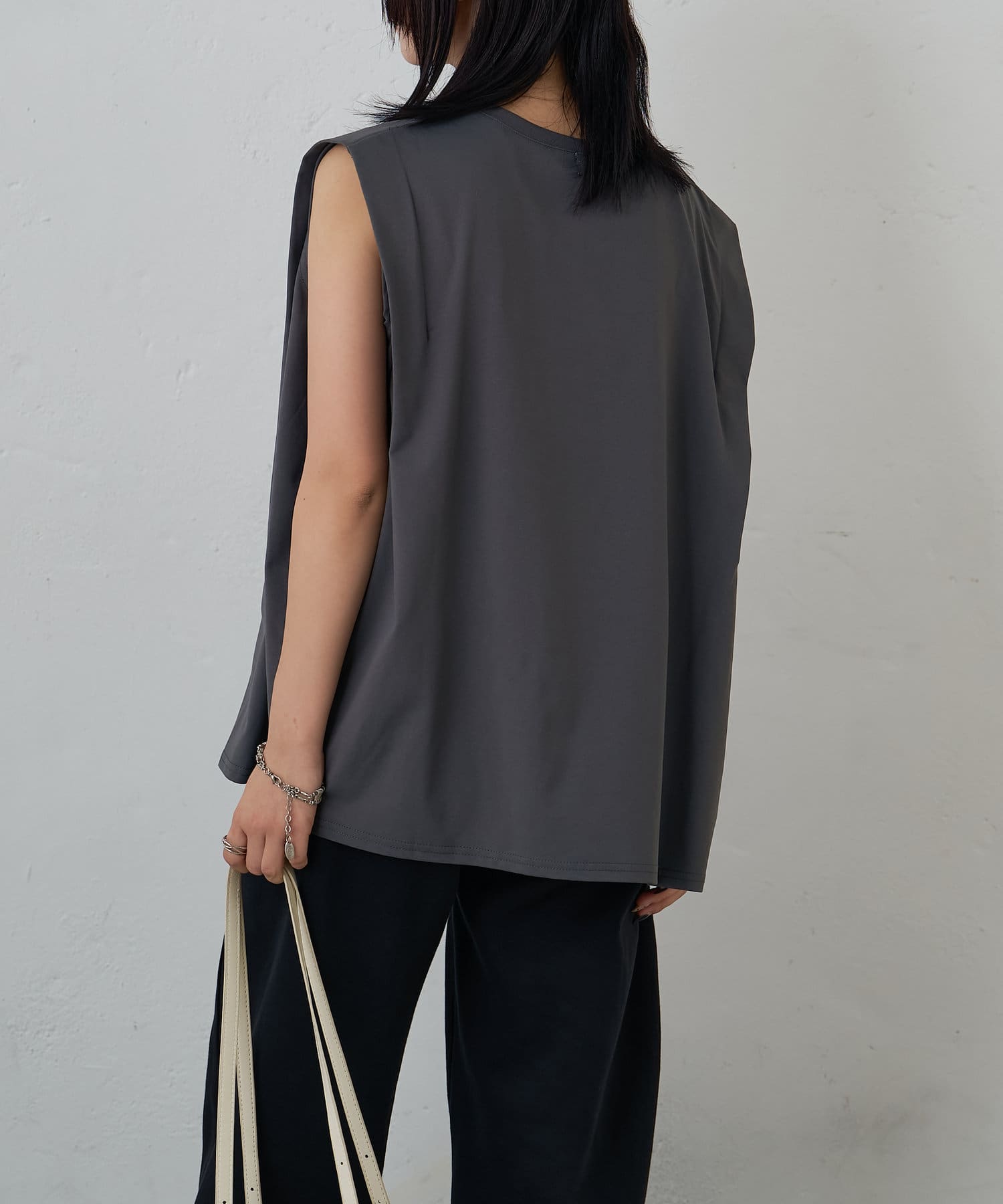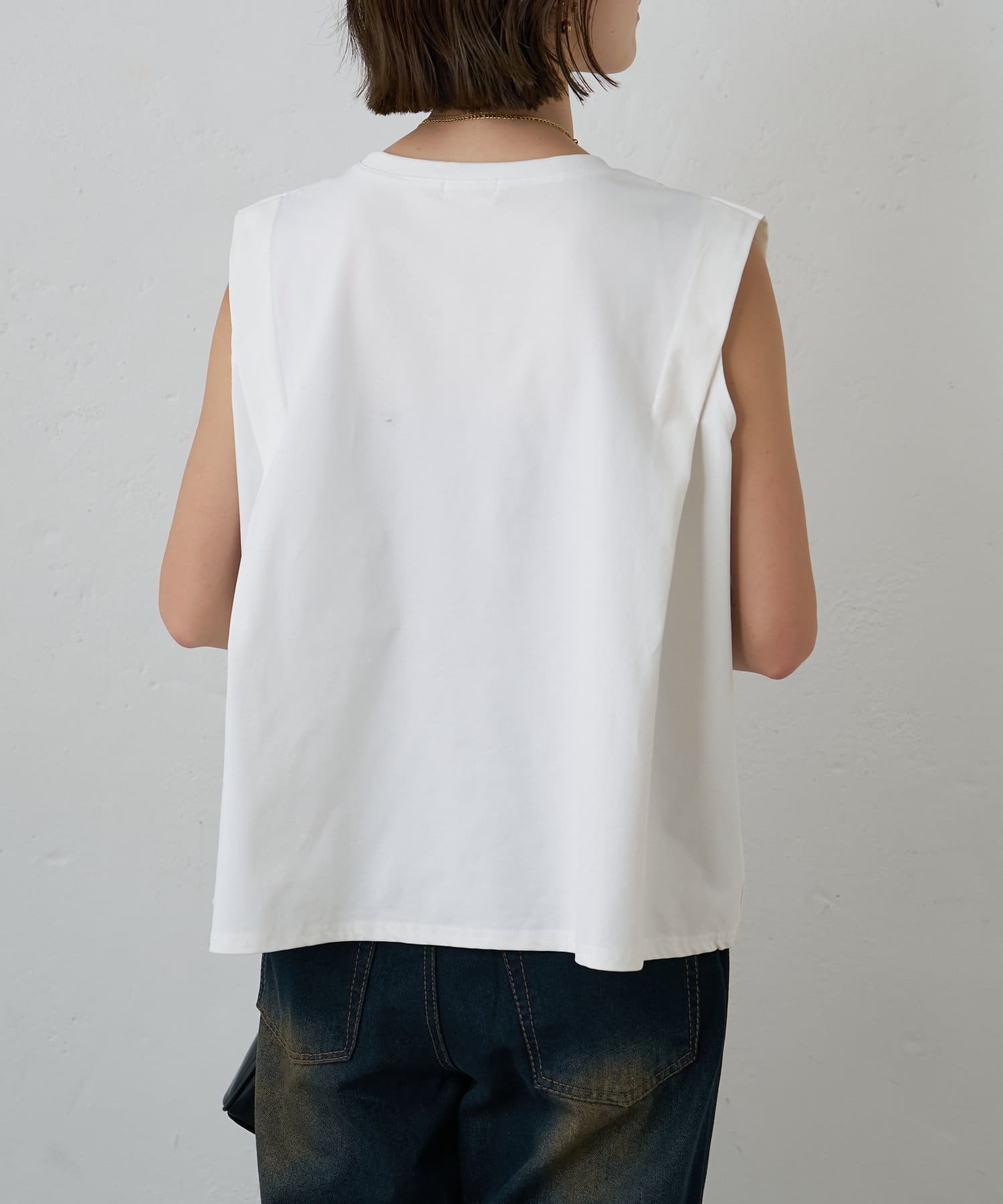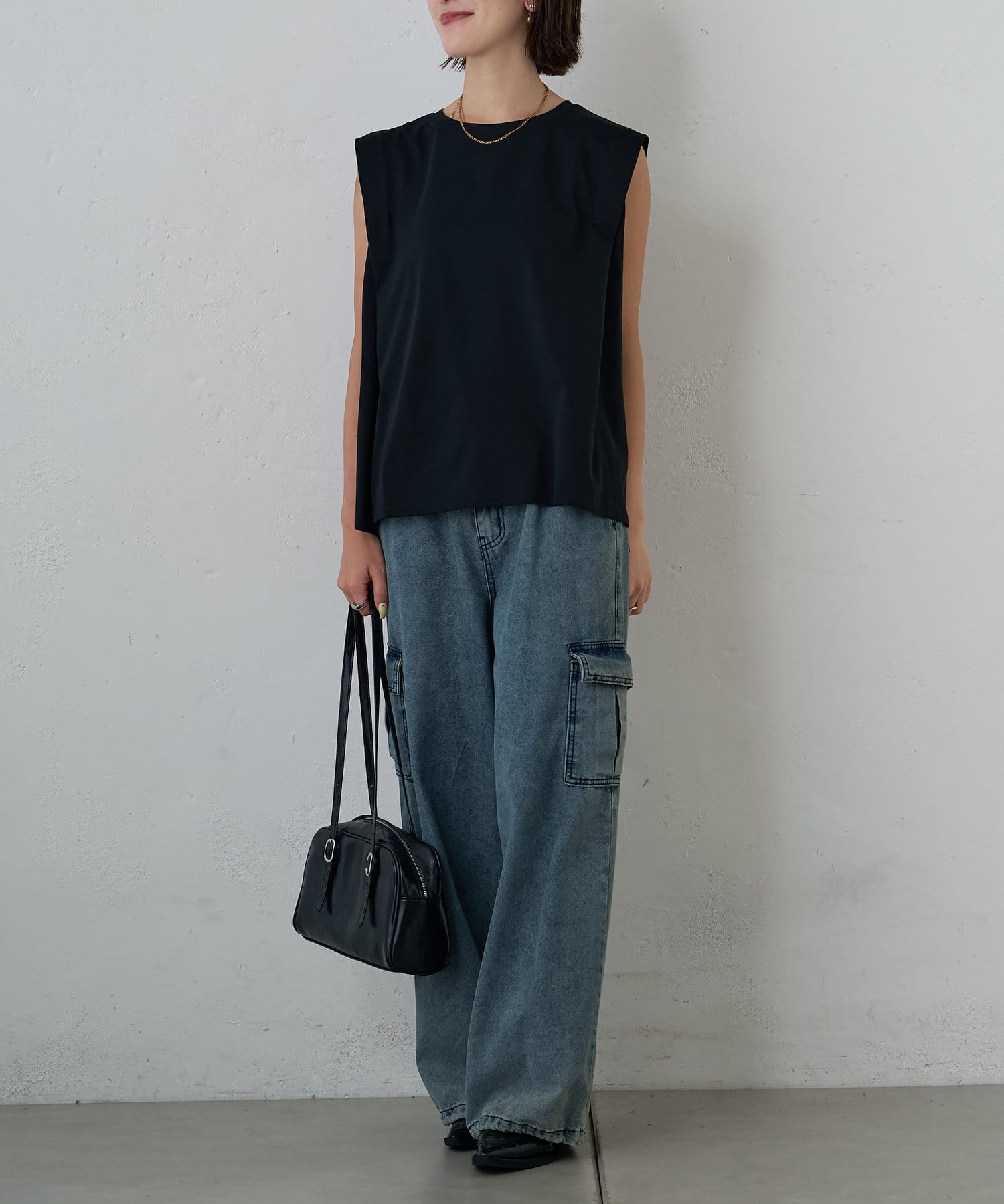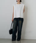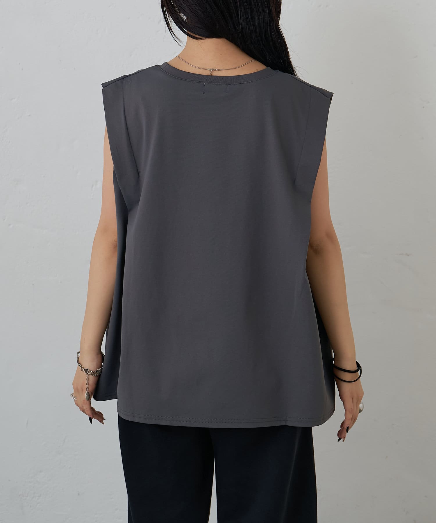 ・クルーネックと程よい丈感のベーシックなノースリブ