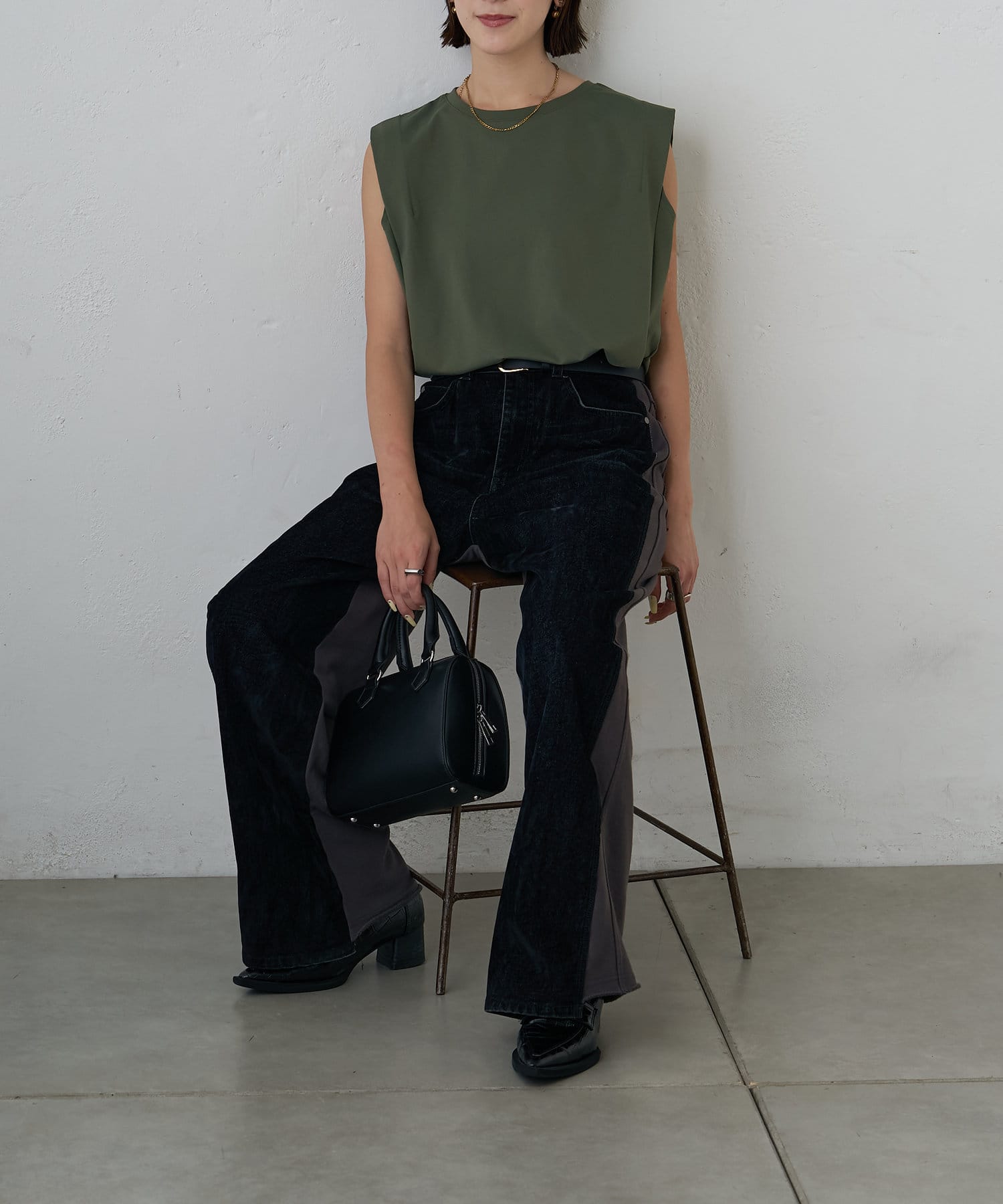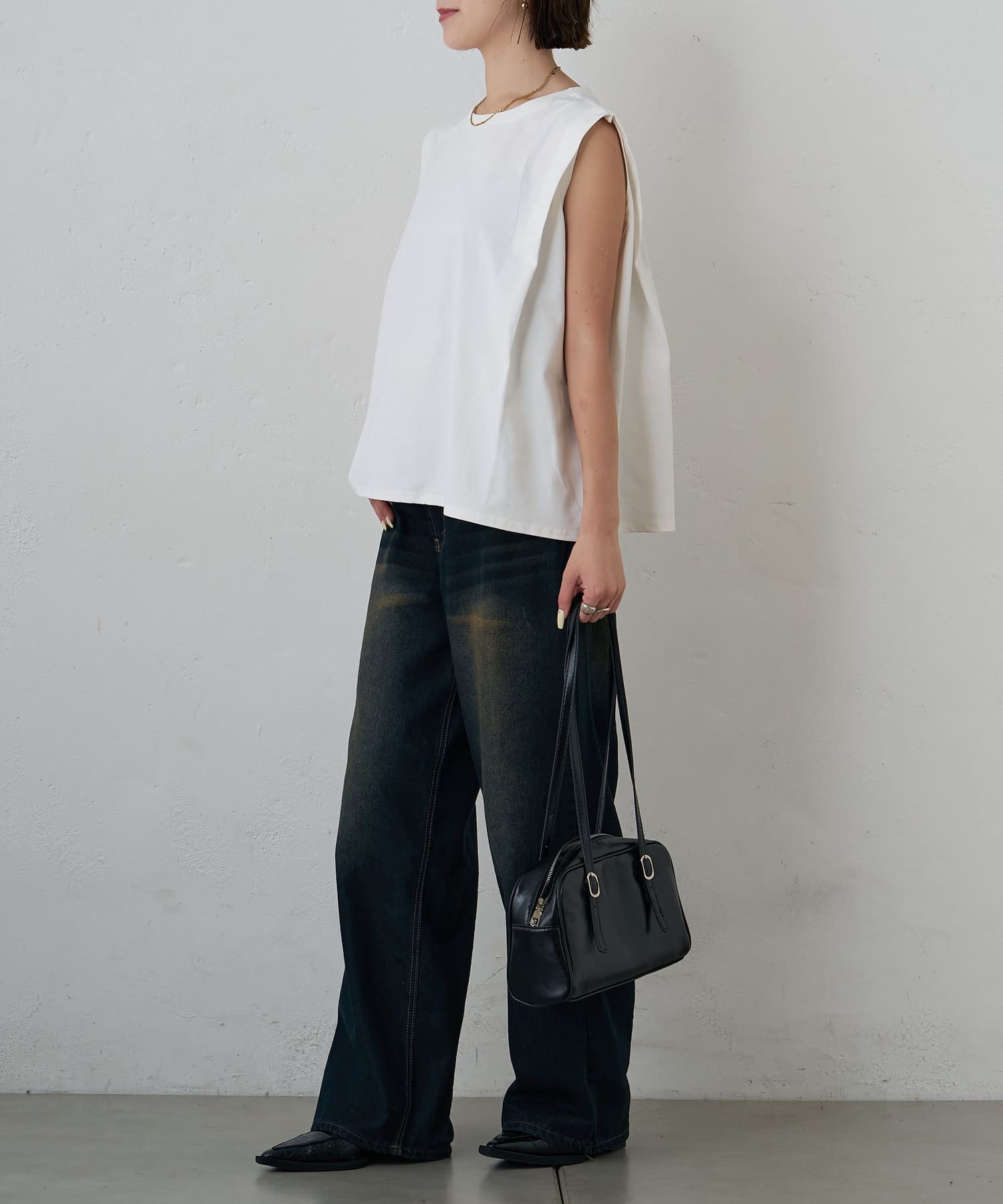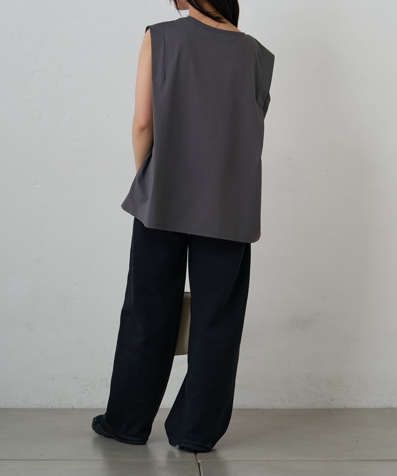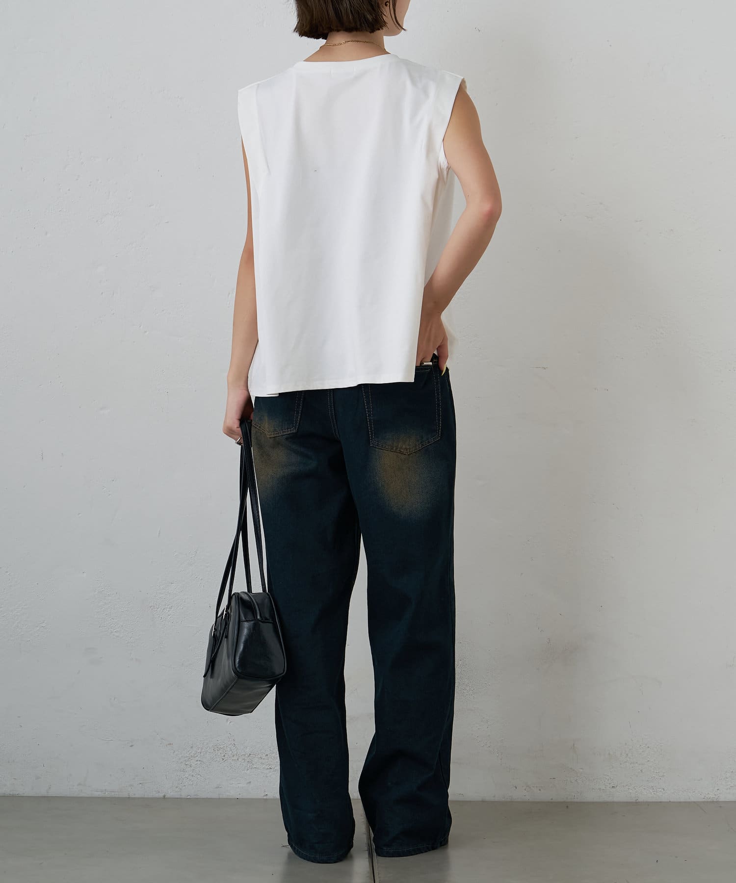 ・クルーネックと程よい丈感のベーシックなノースリブ