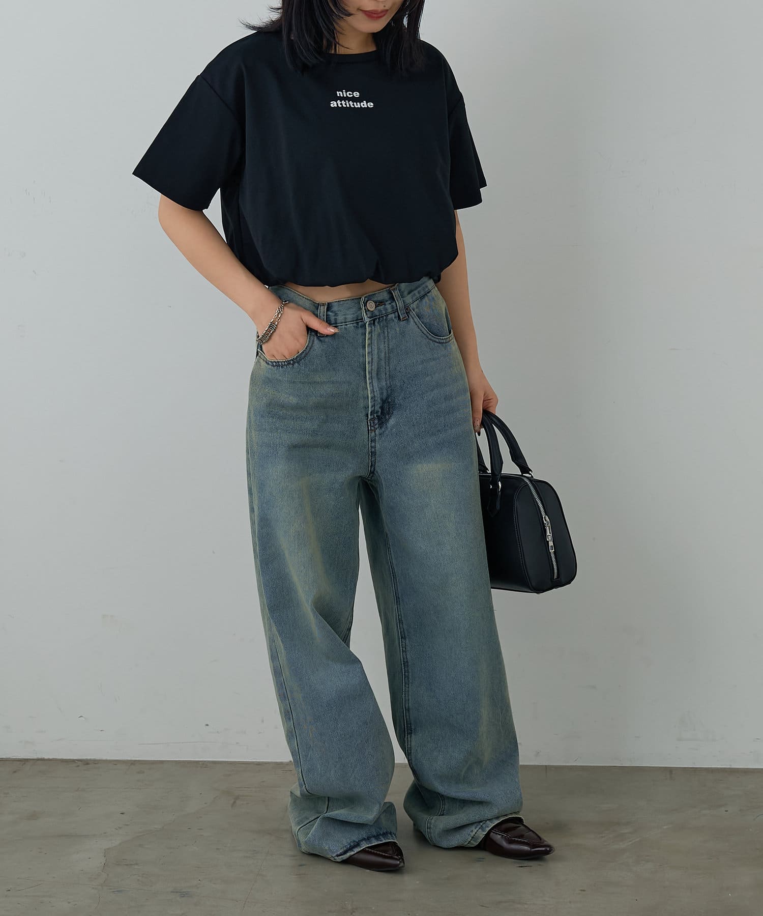 ・短丈でバルーンデザインなのでハイウエストのパンツなどで合わせるのがおすすめです。