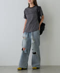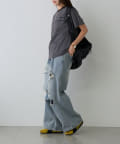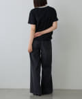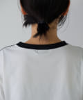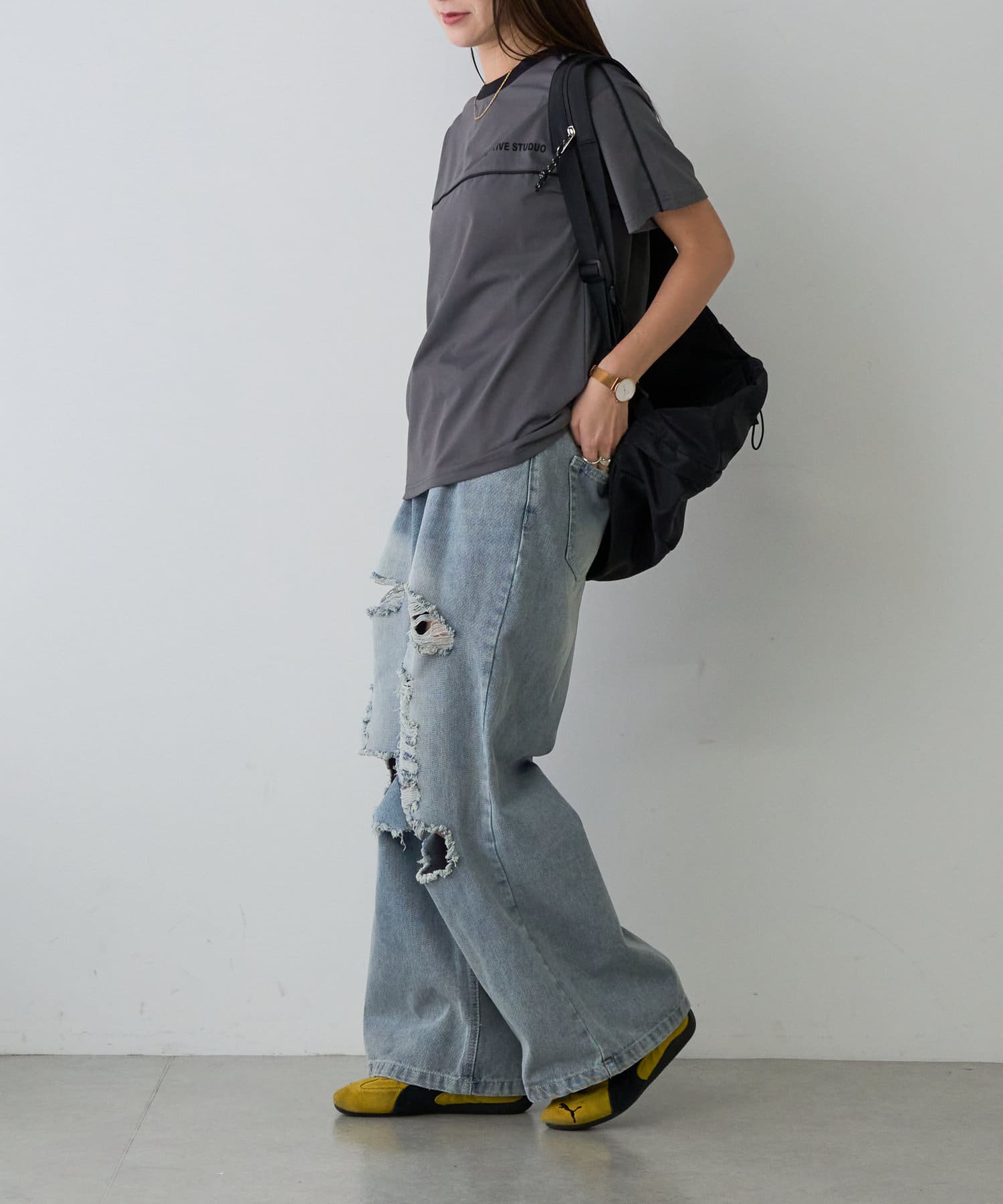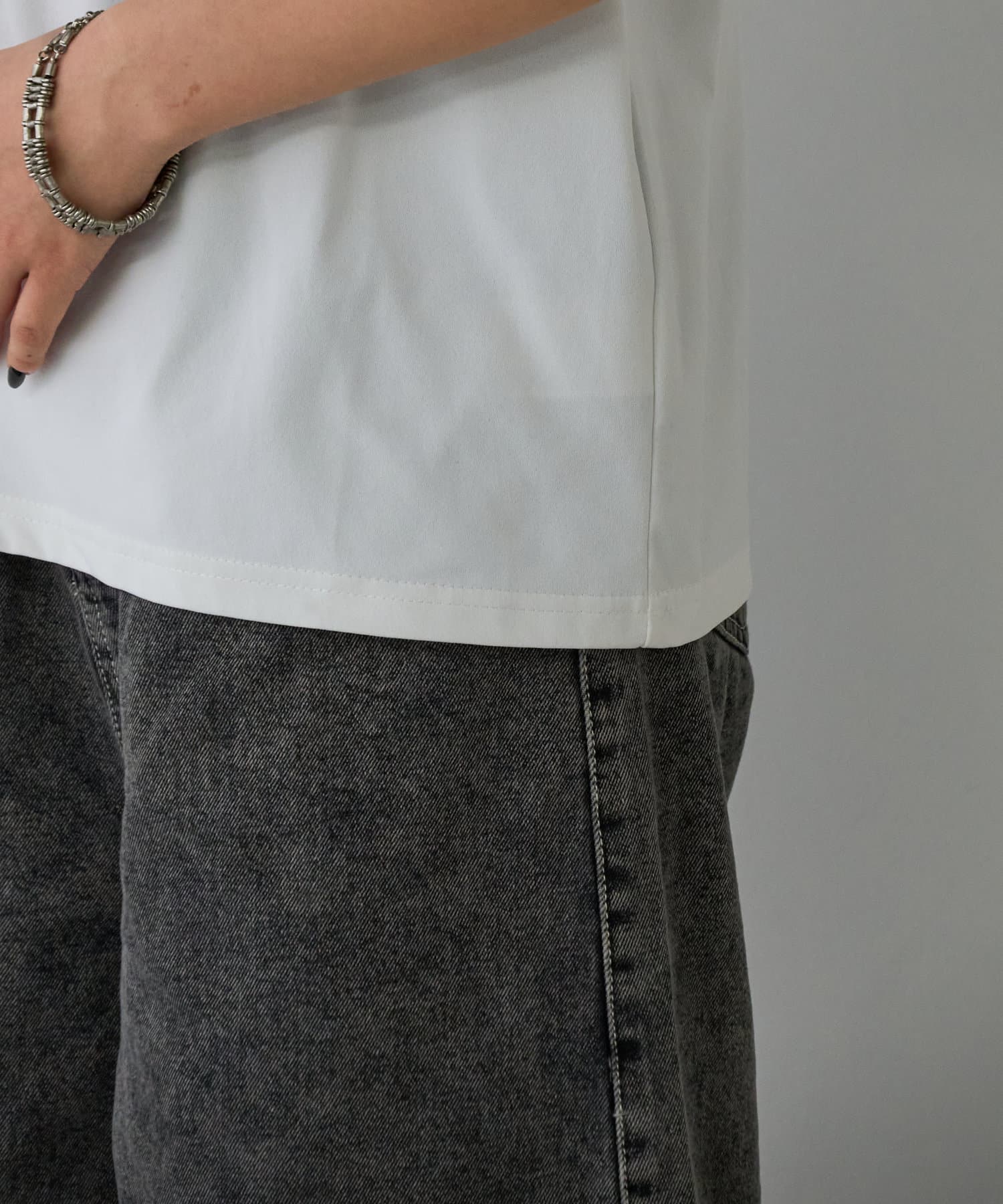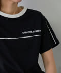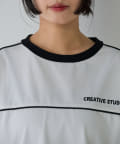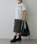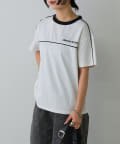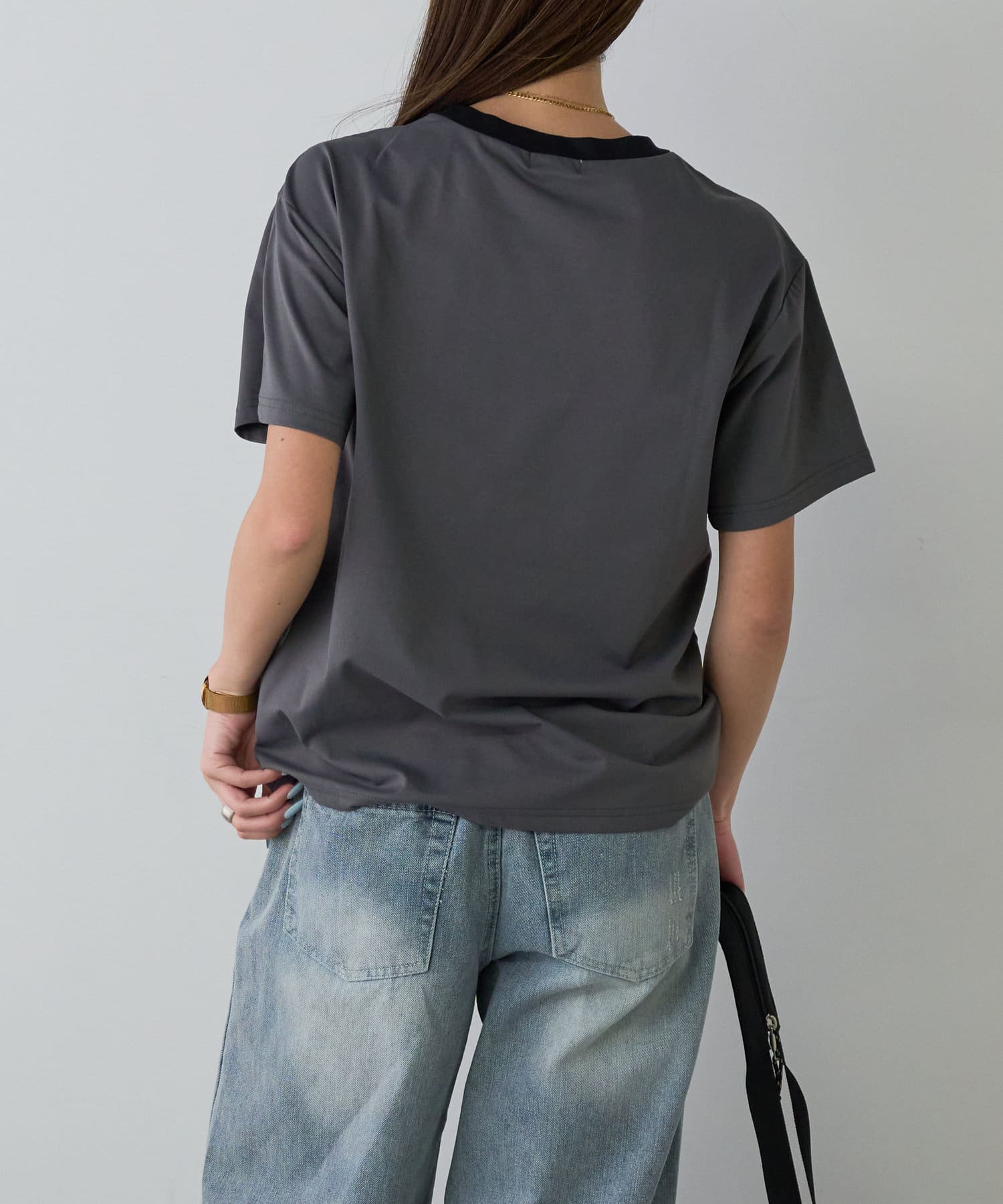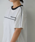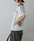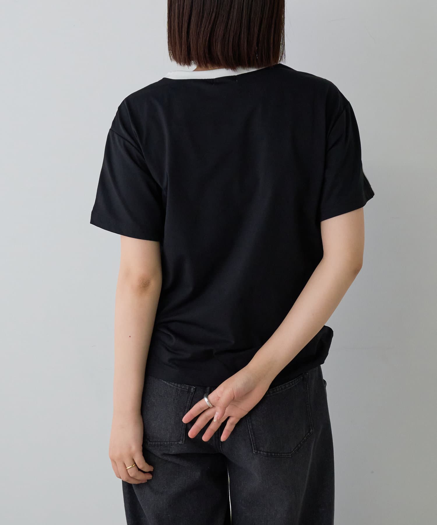 ・黒のパイピングが施されたTシャツにで荷を合わせてモード感のあるストリートスタイルに◎