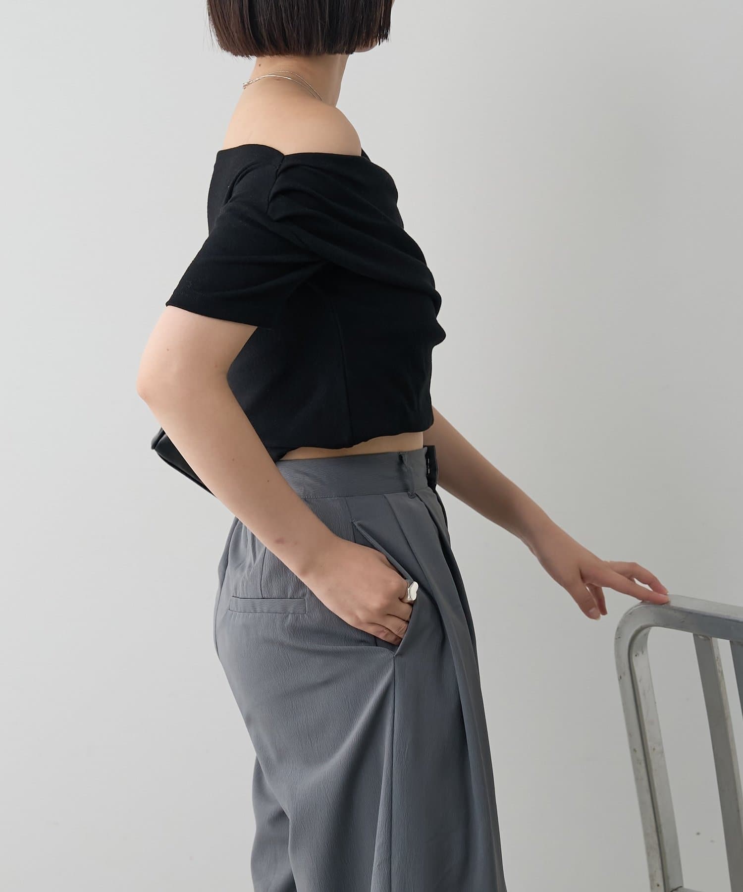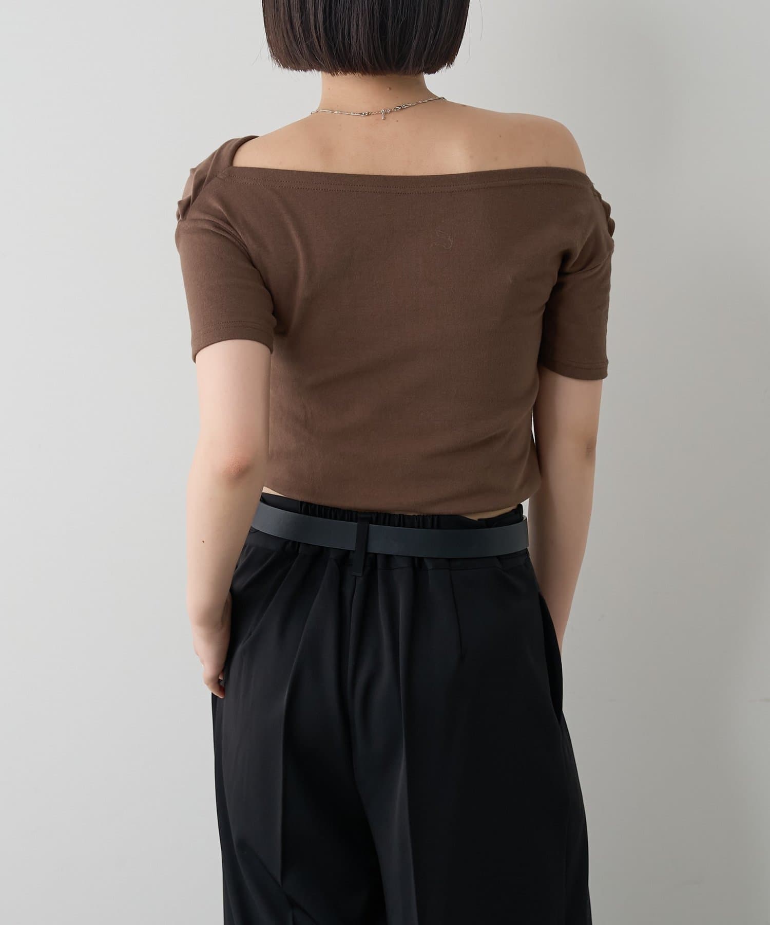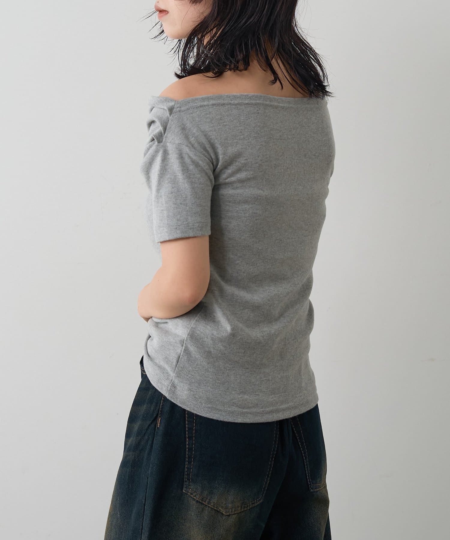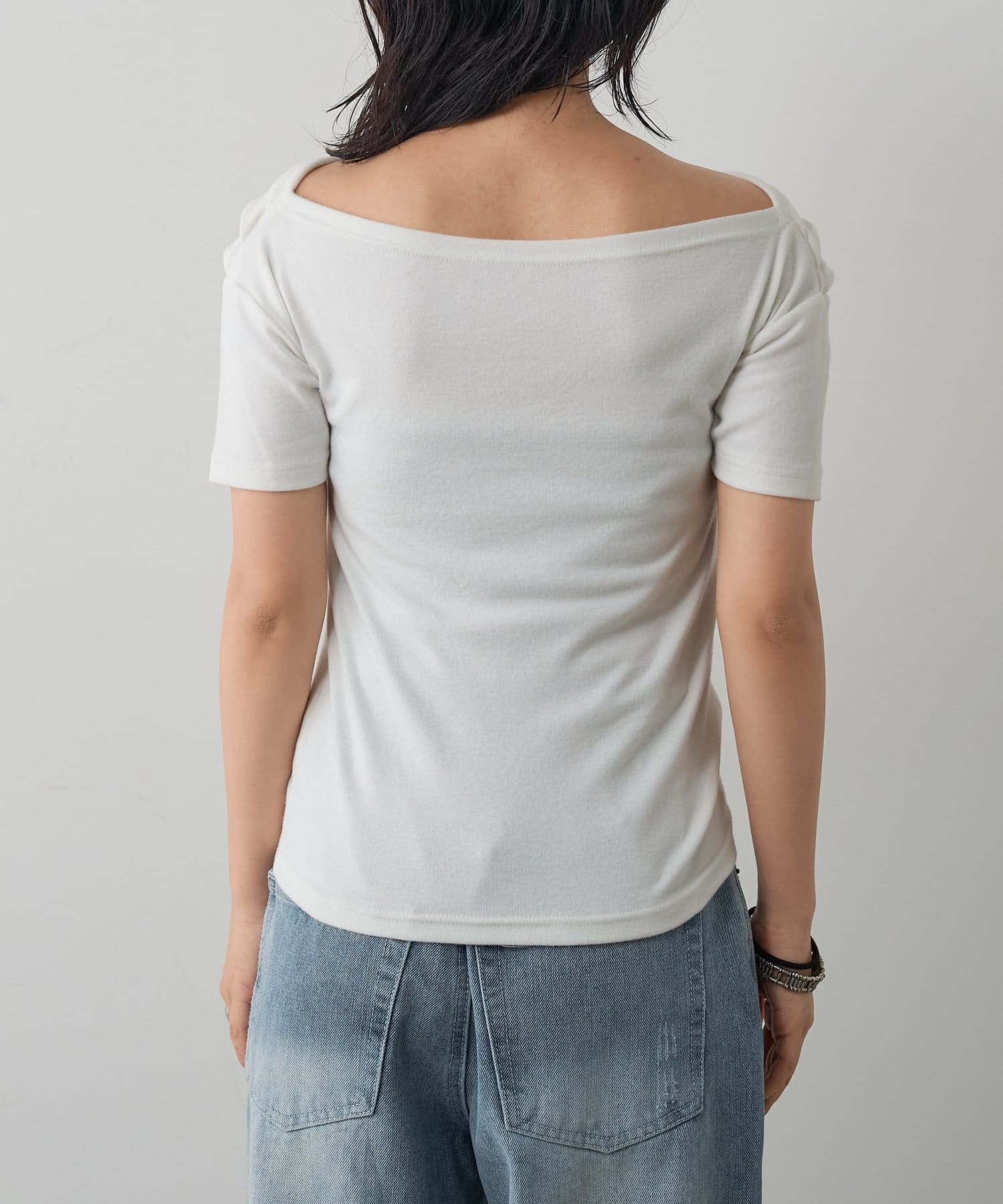 ・オフショルダーにして着ていただくことで雰囲気を変えて着用していただけます。