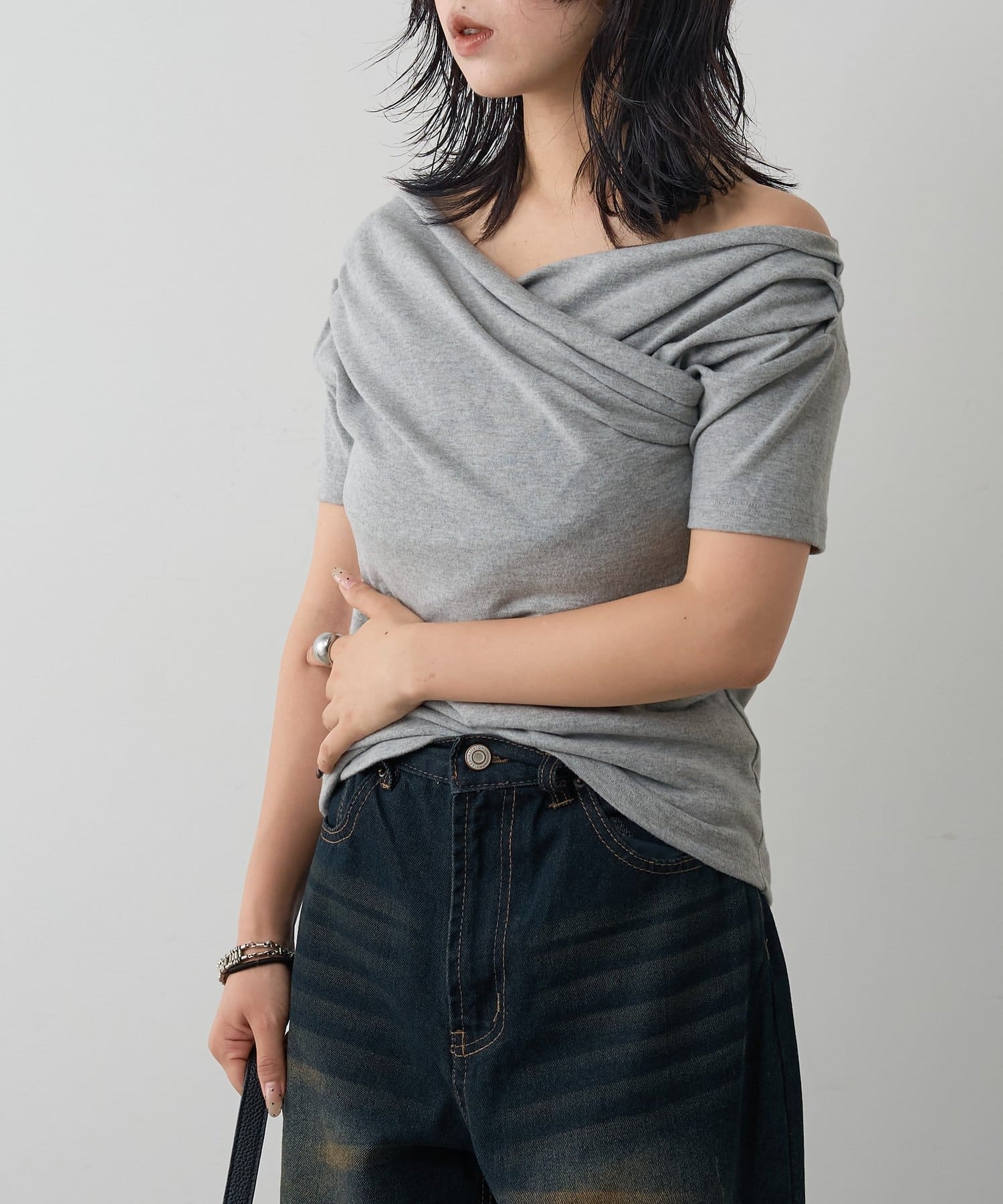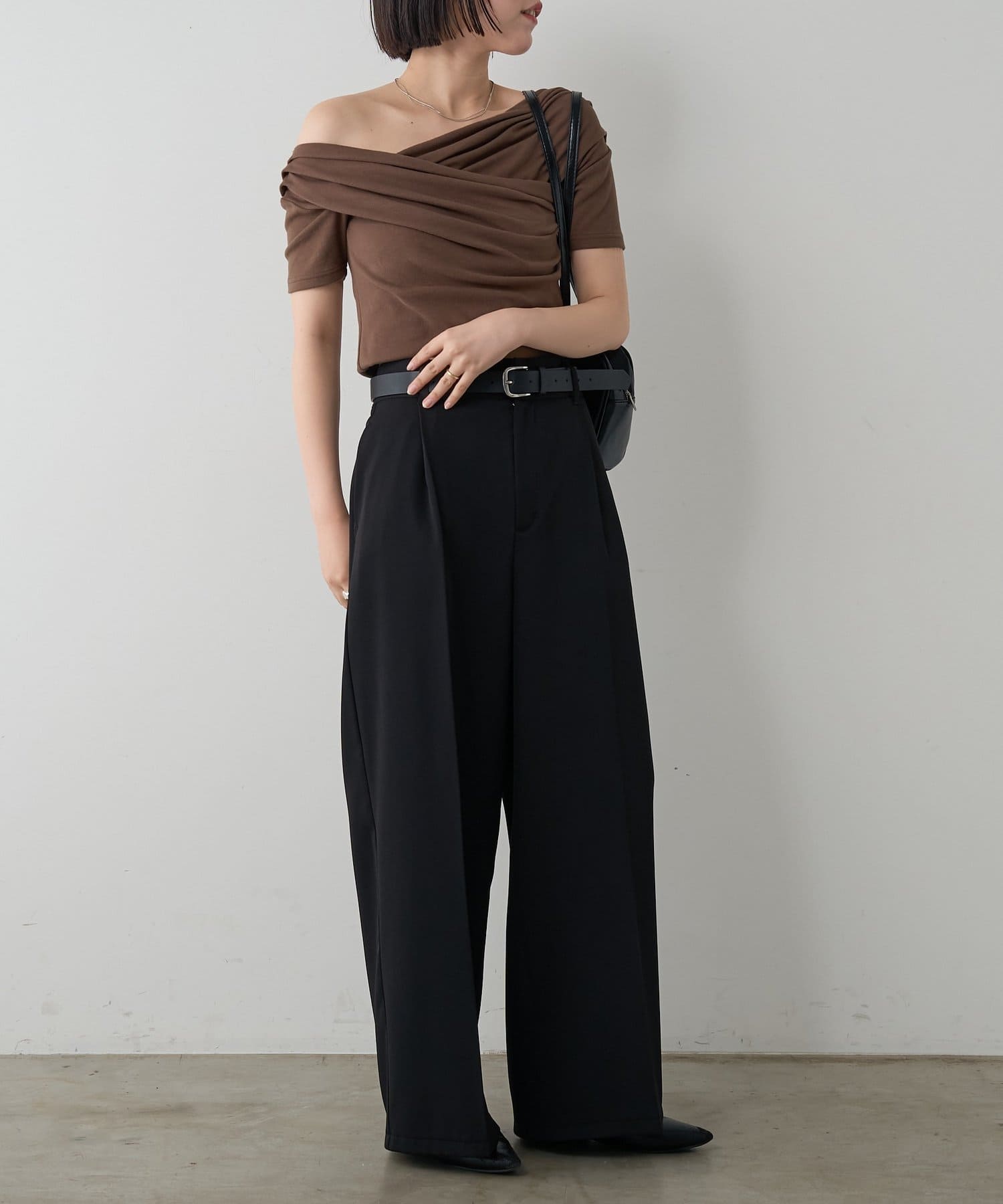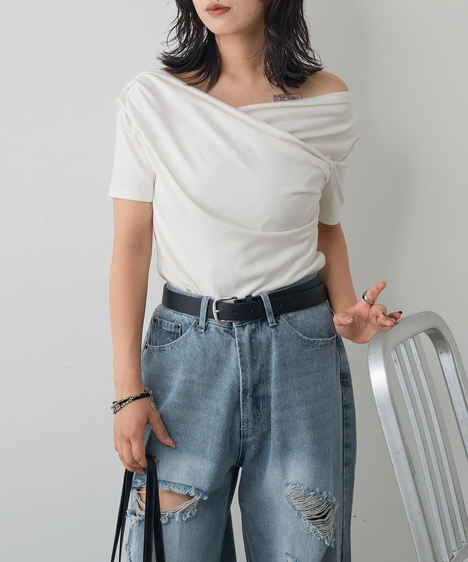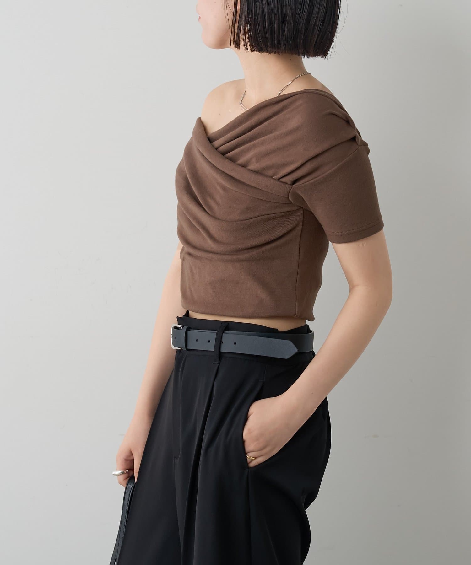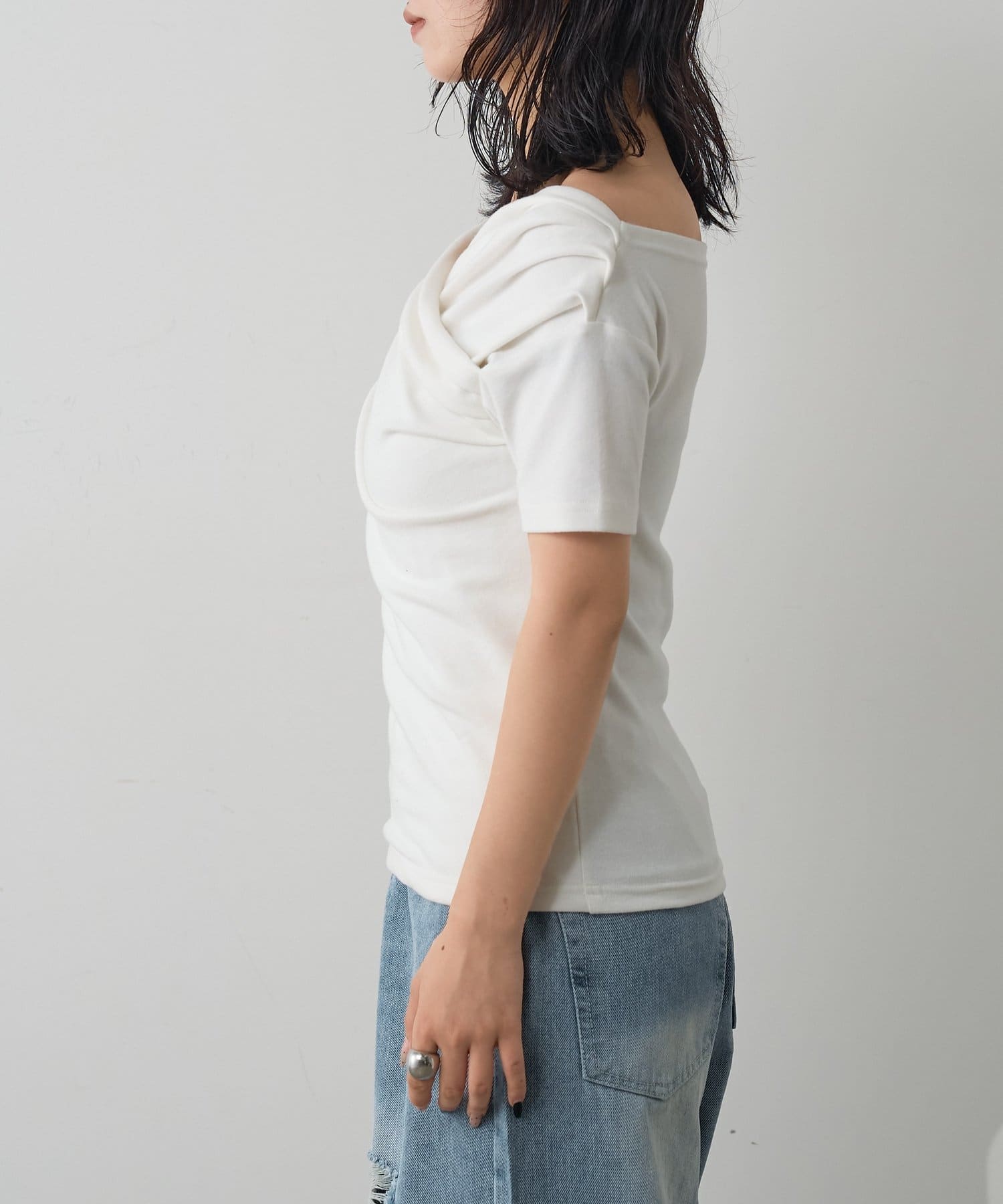 ・オフショルダーにして着ていただくことで雰囲気を変えて着用していただけます。
