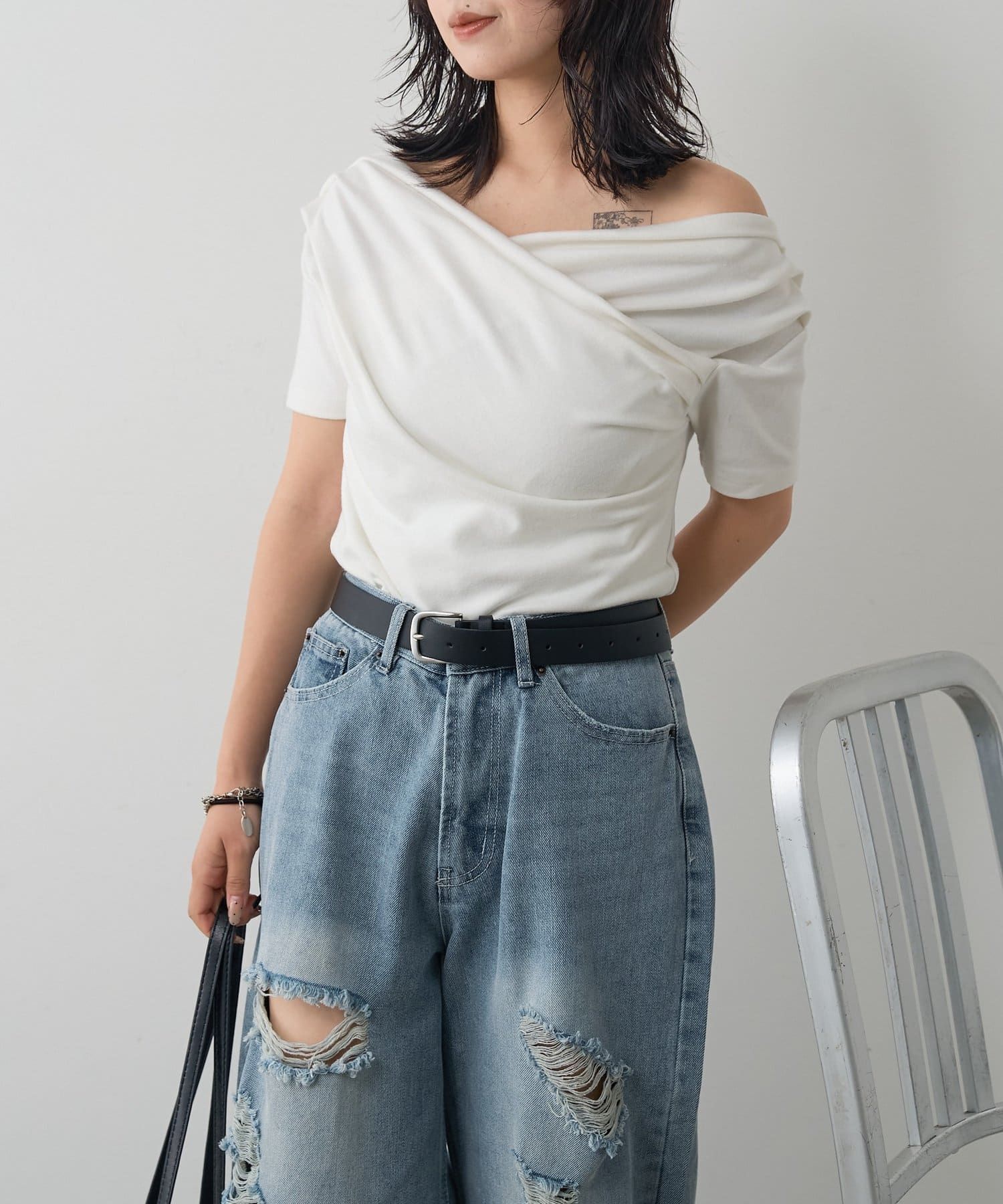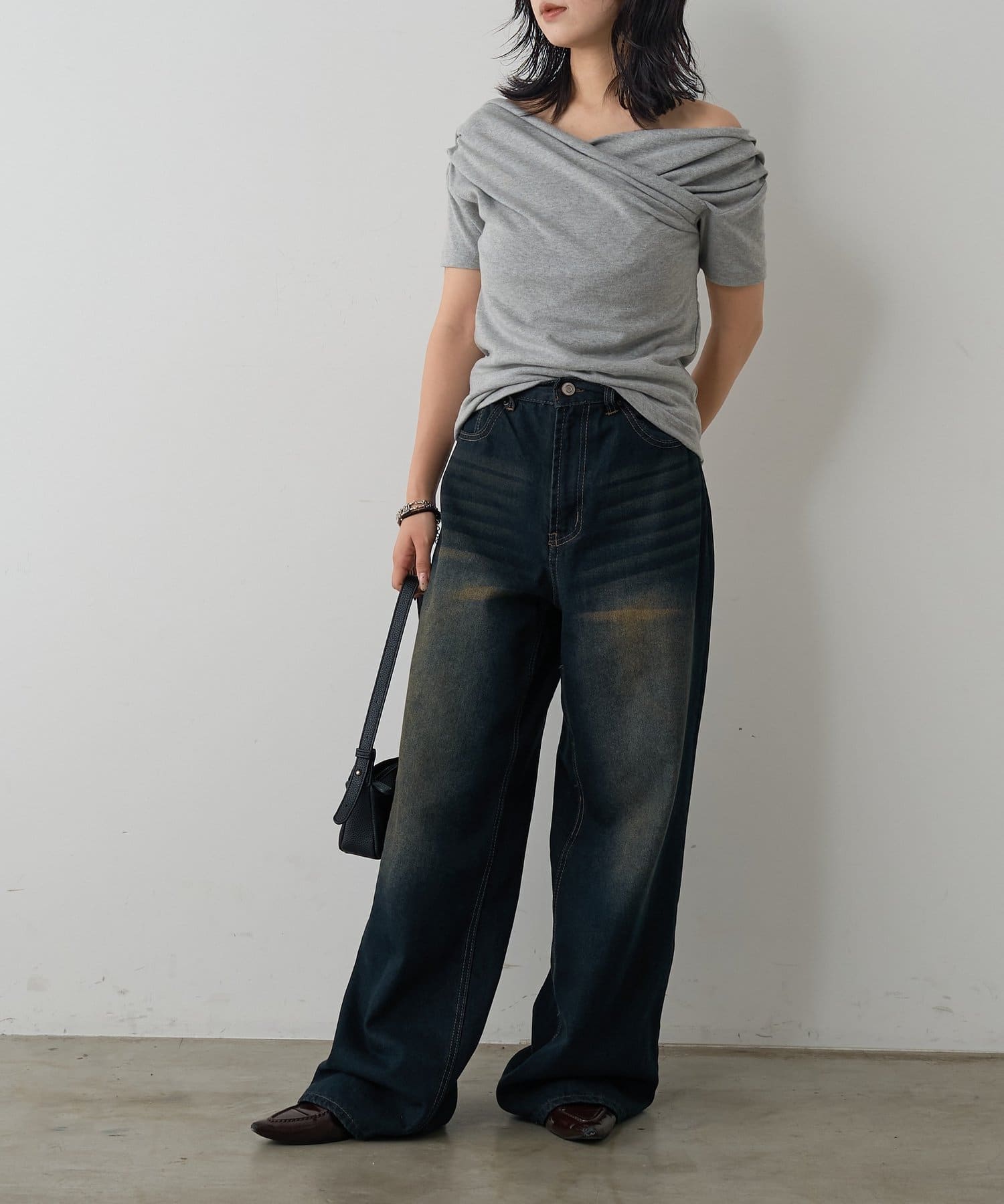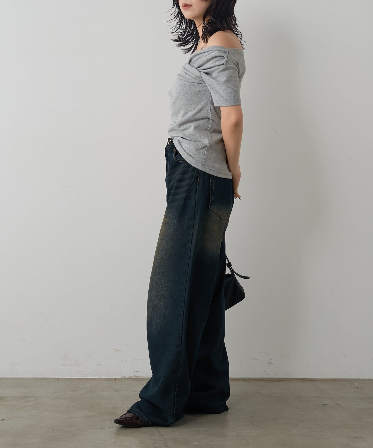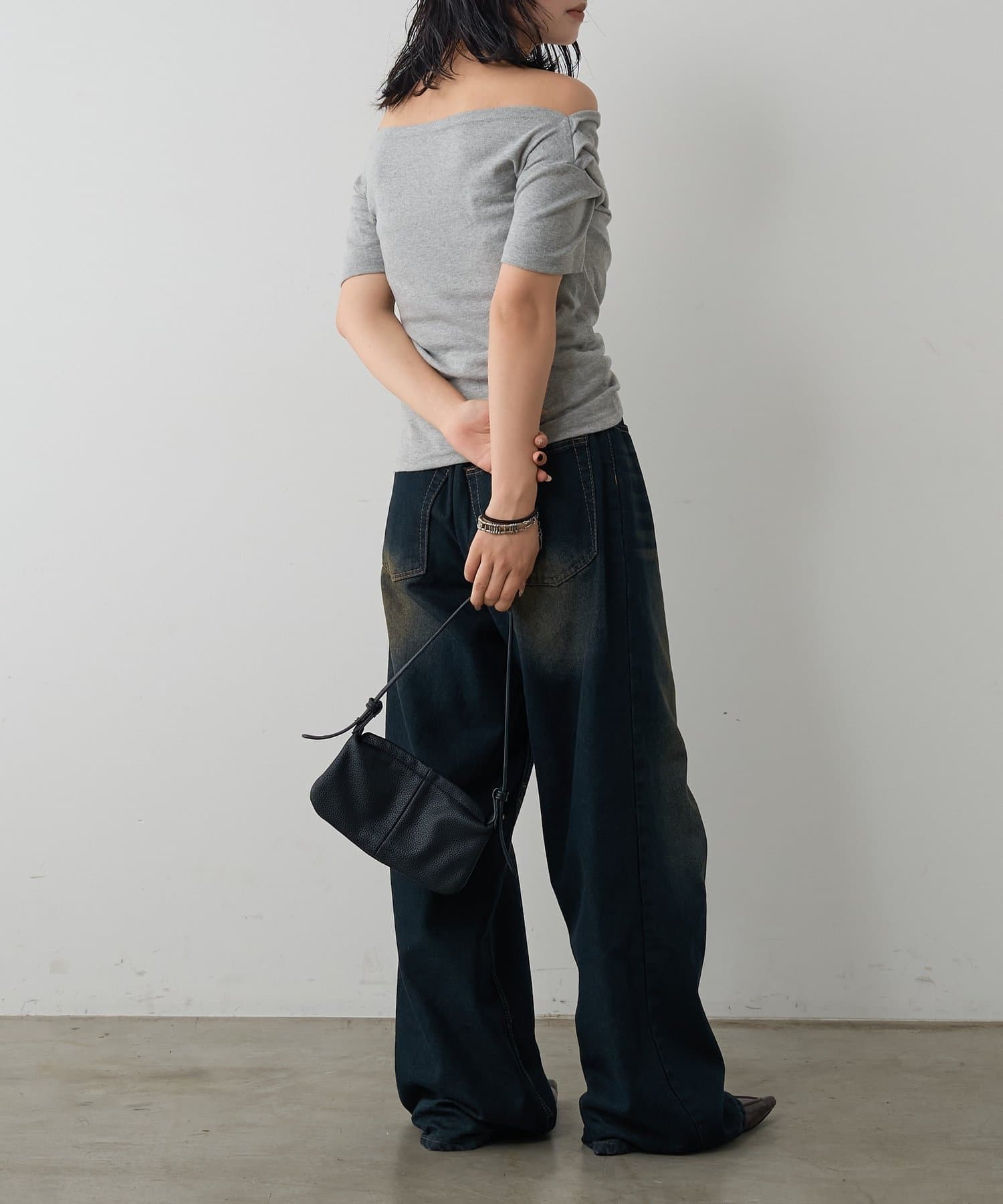 ・オフショルダーにして着ていただくことで雰囲気を変えて着用していただけます。