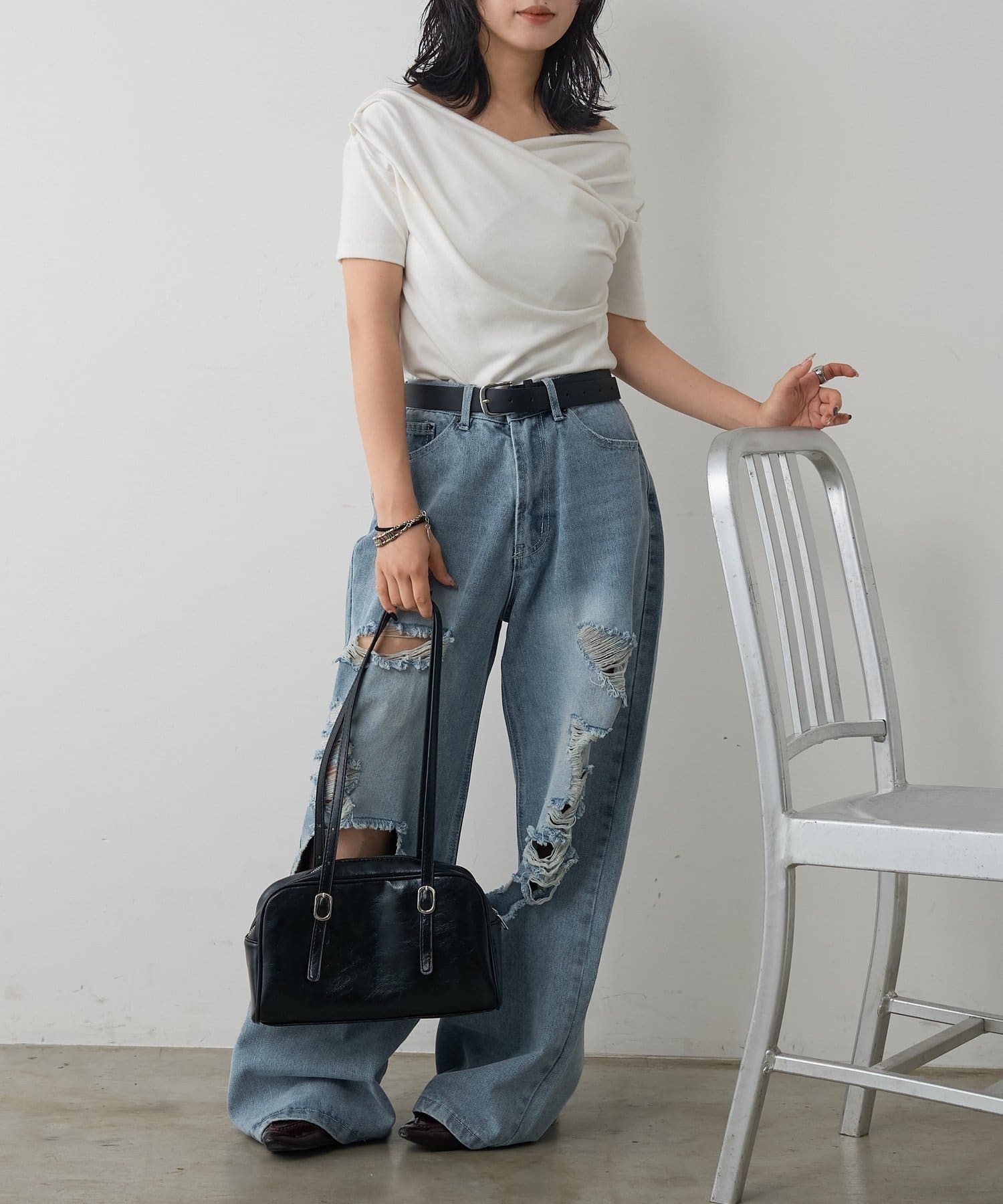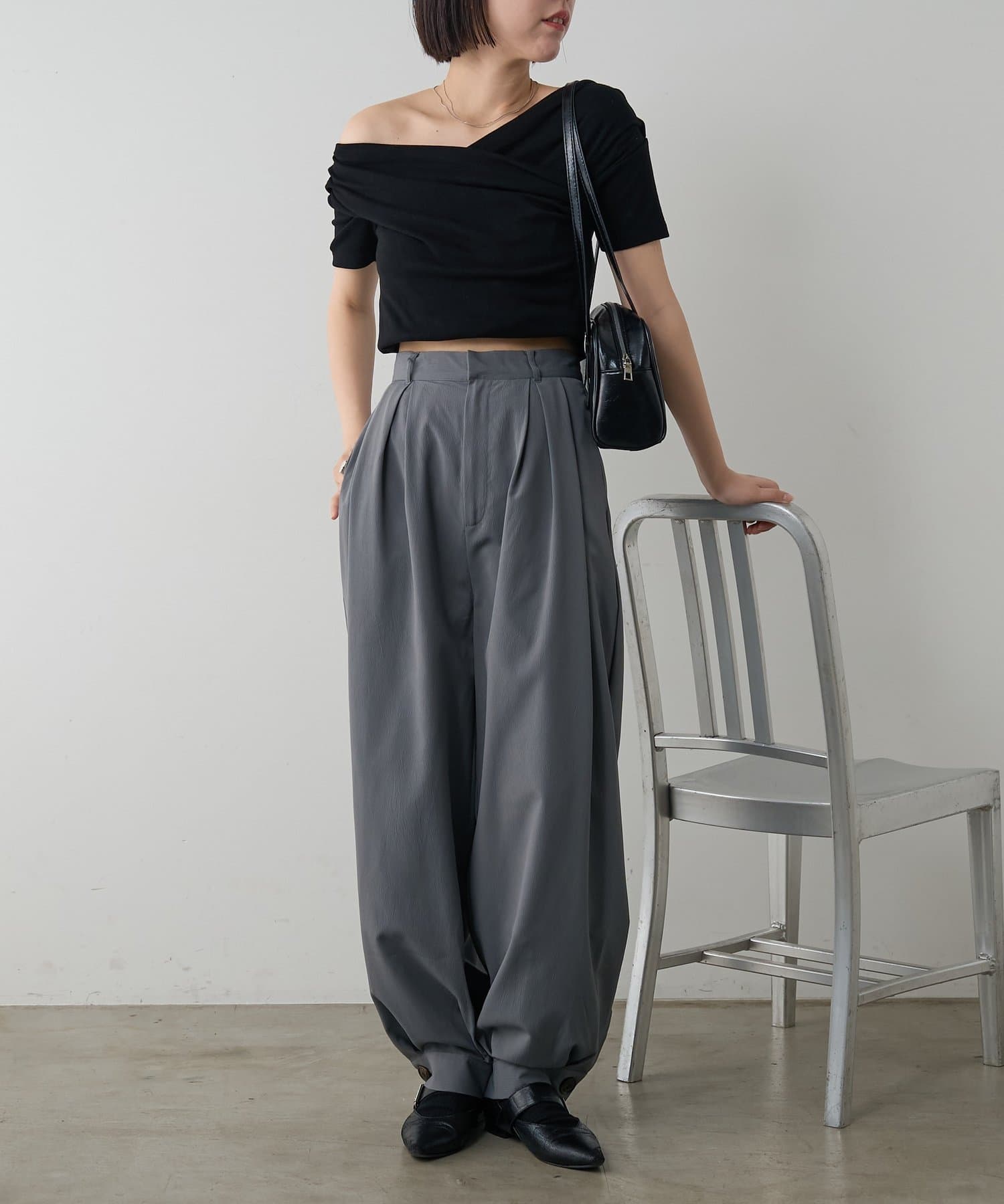 ・ワイドパンツなどボリュームのあるボトムスとの相性抜群◎