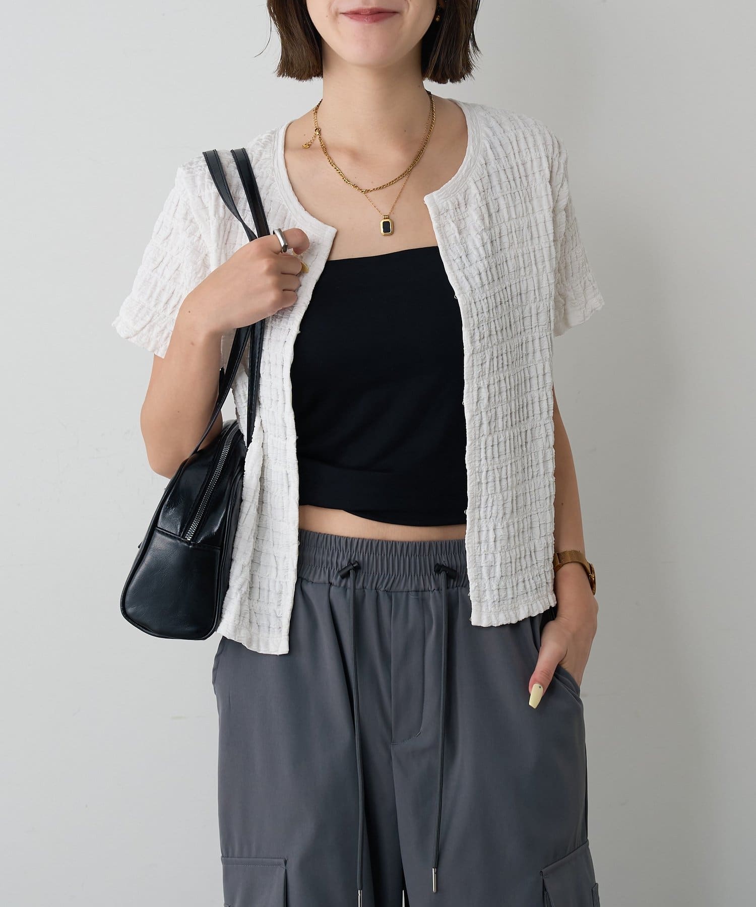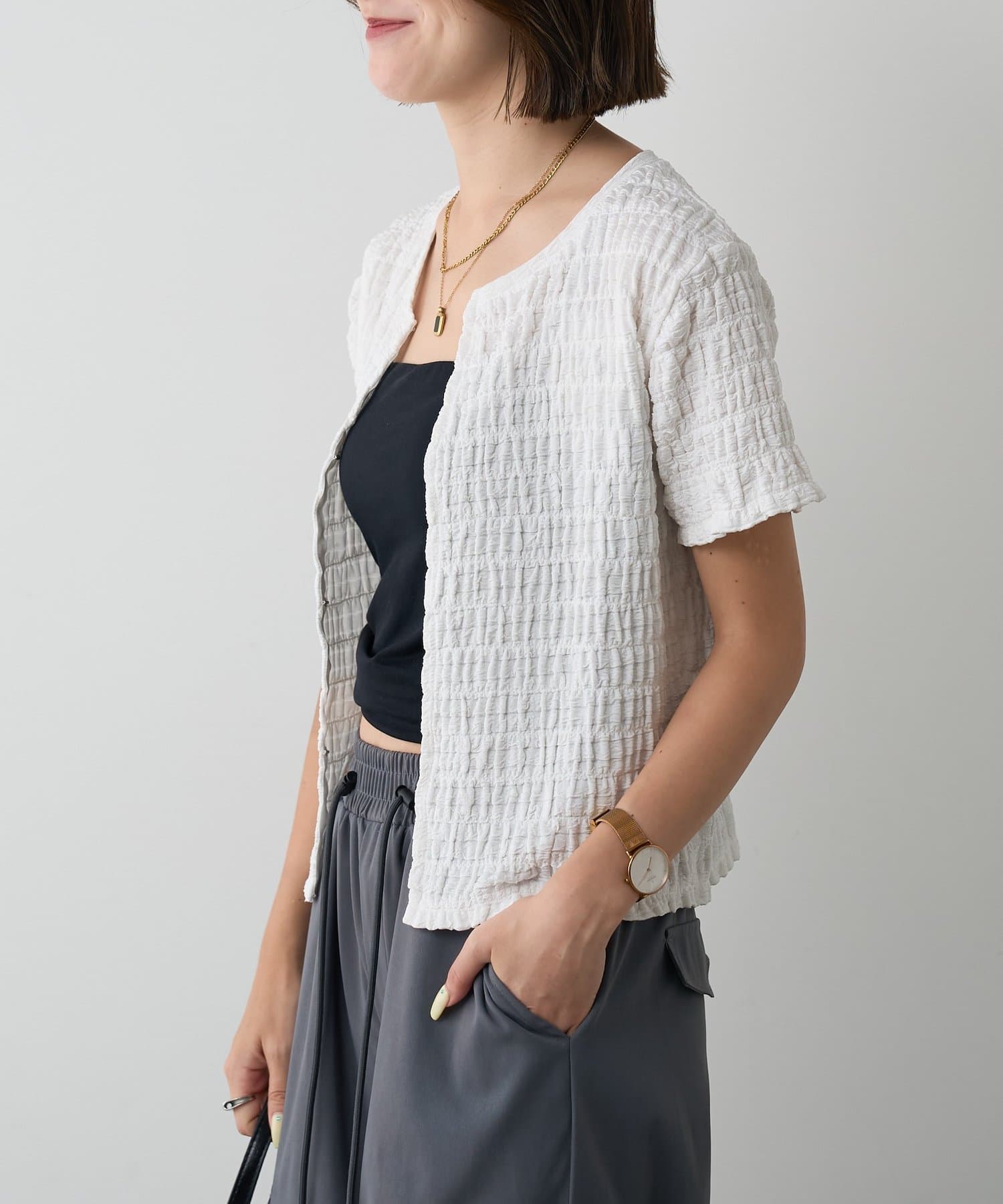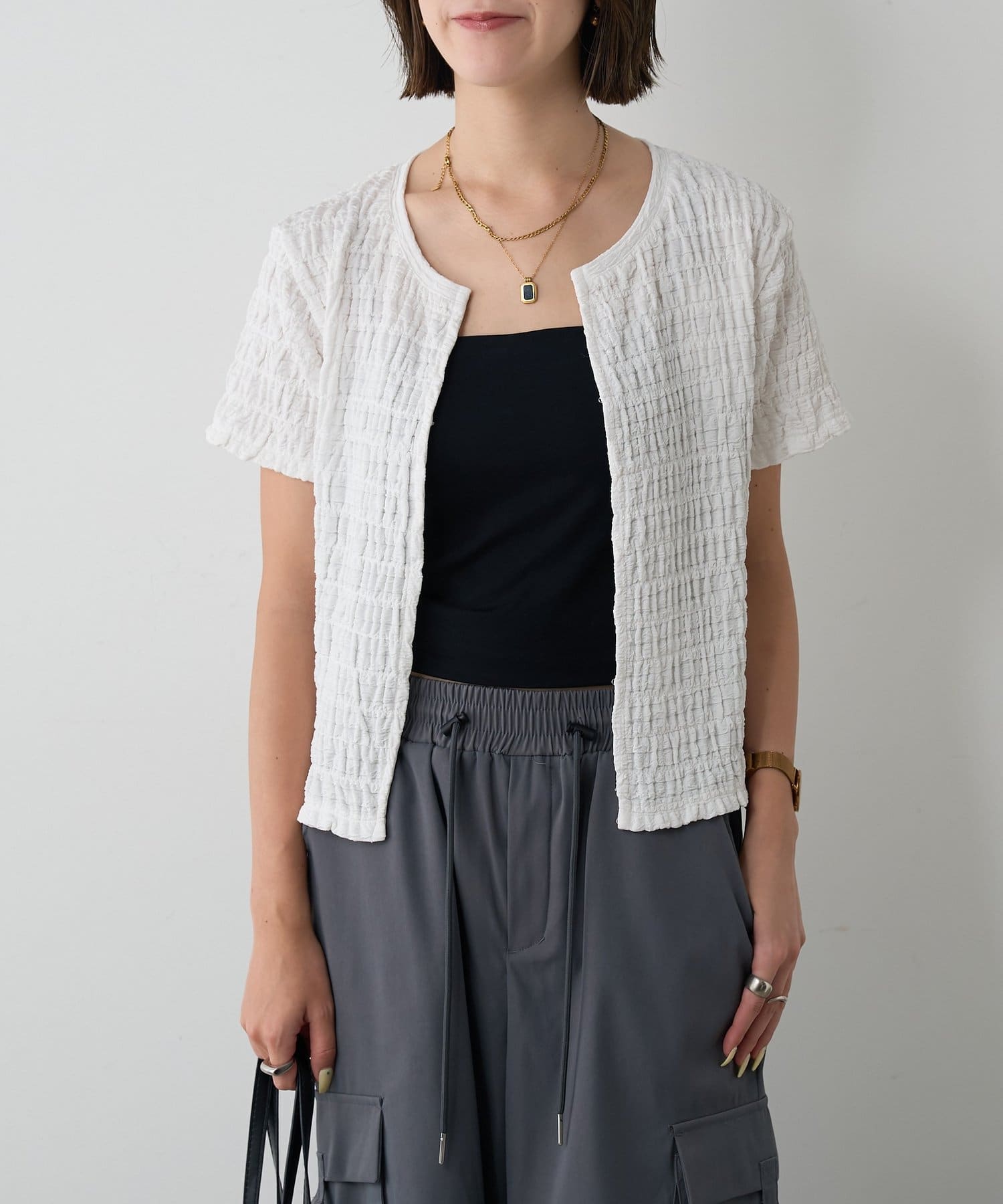 #フロントホック #ジャガードトップス #伸縮素材 #クロップド丈