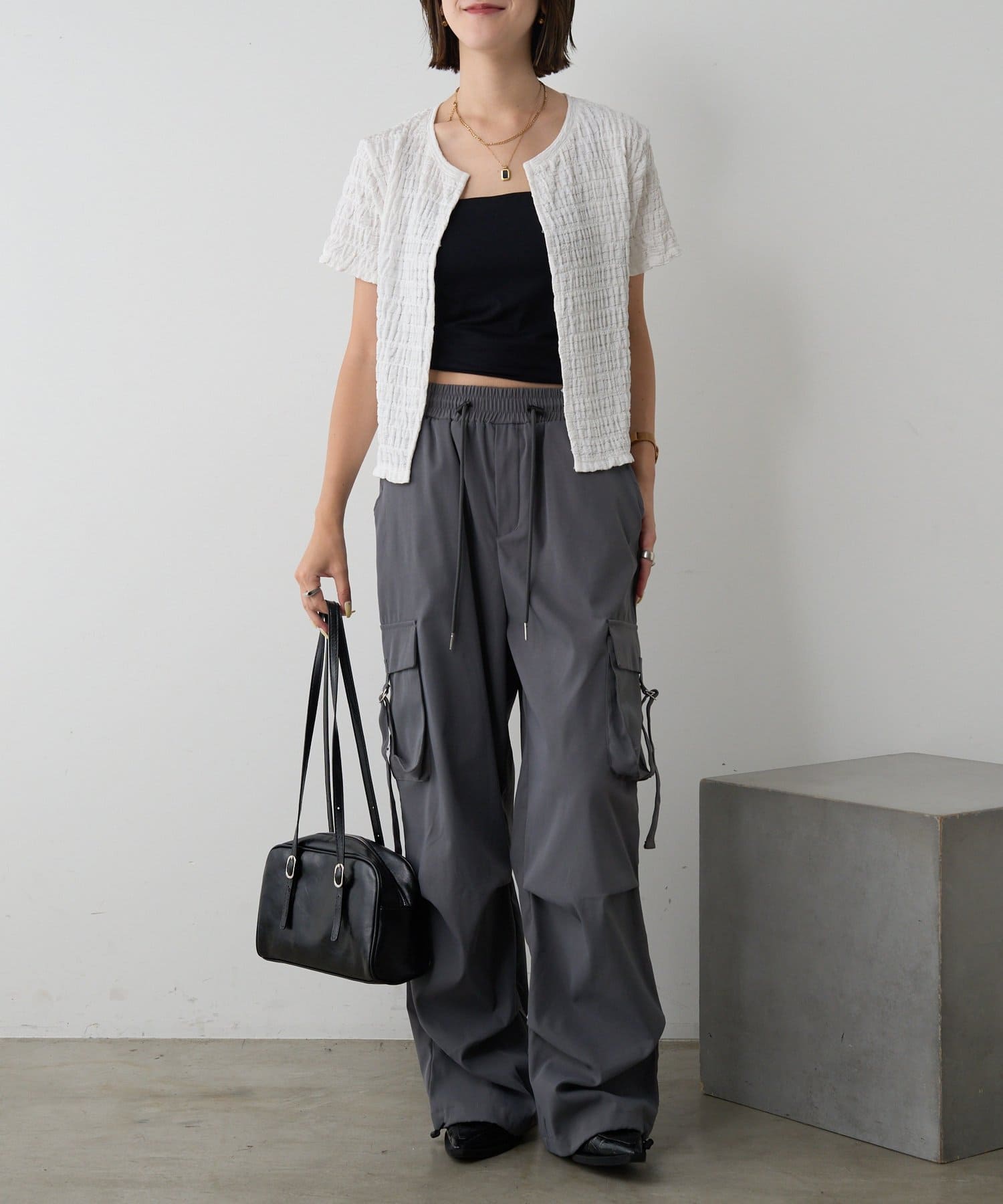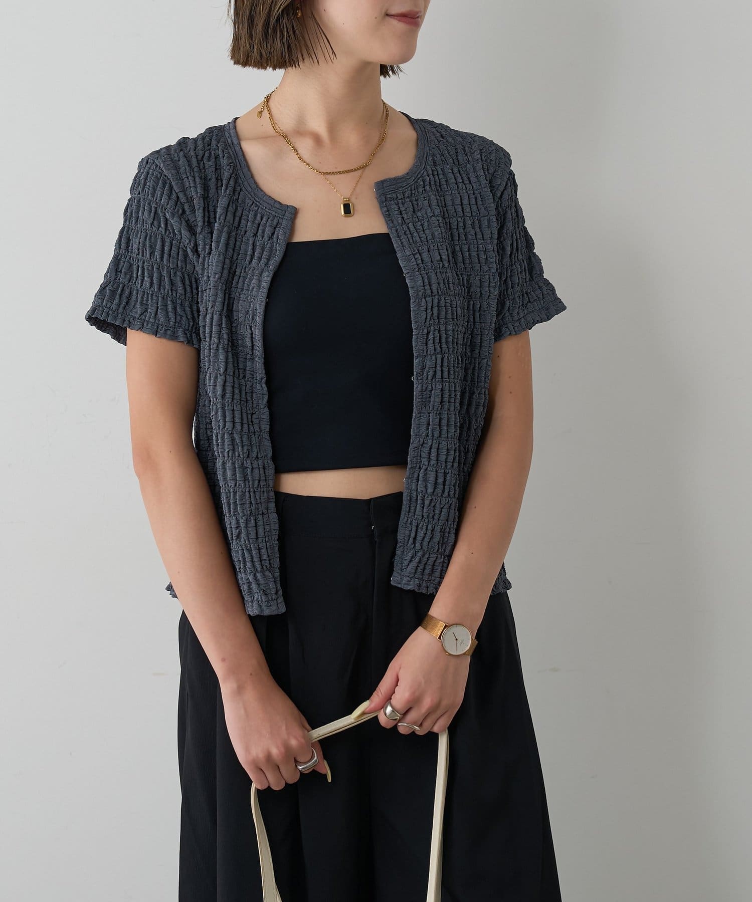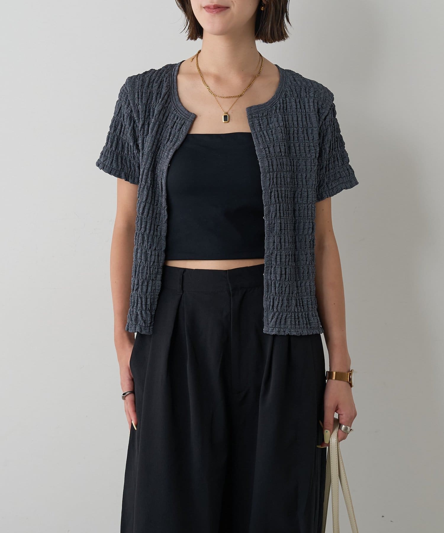 #フロントホック #ジャガードトップス #伸縮素材 #クロップド丈