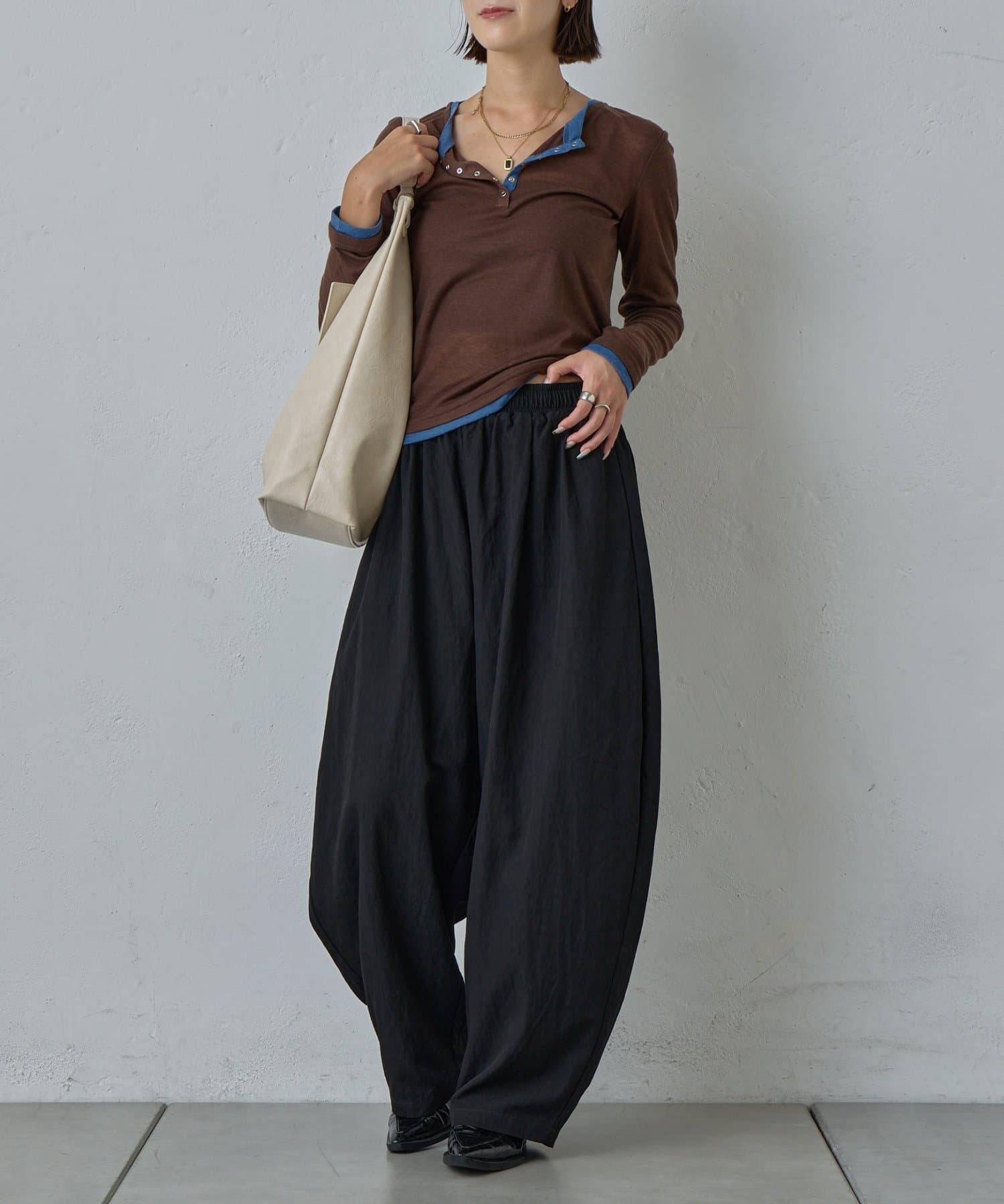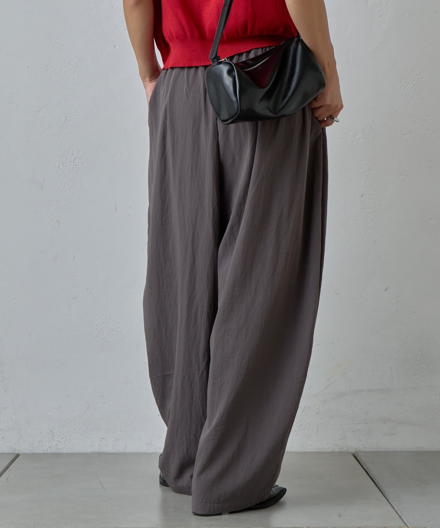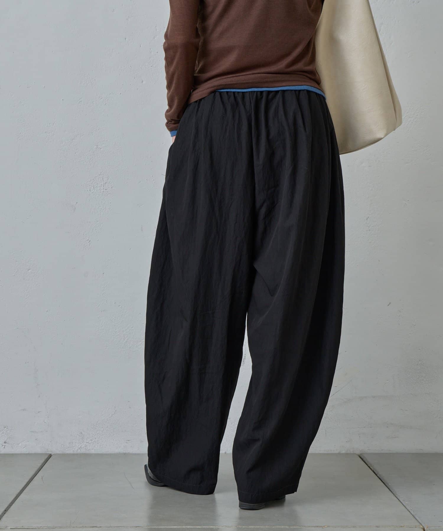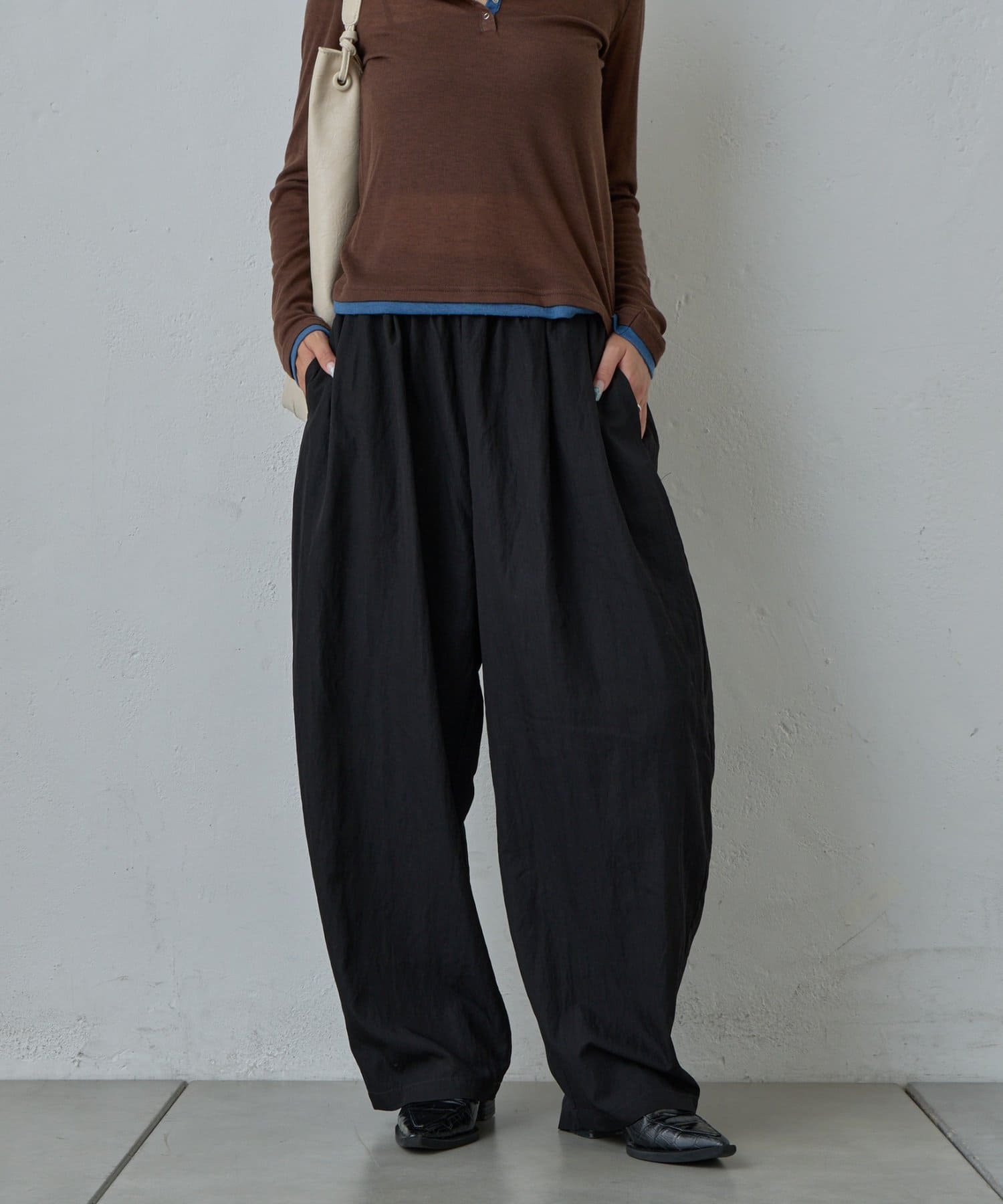 履くだけでこなれたカジュアルスタイルになる、ビスコースコクーンイージーパンツ