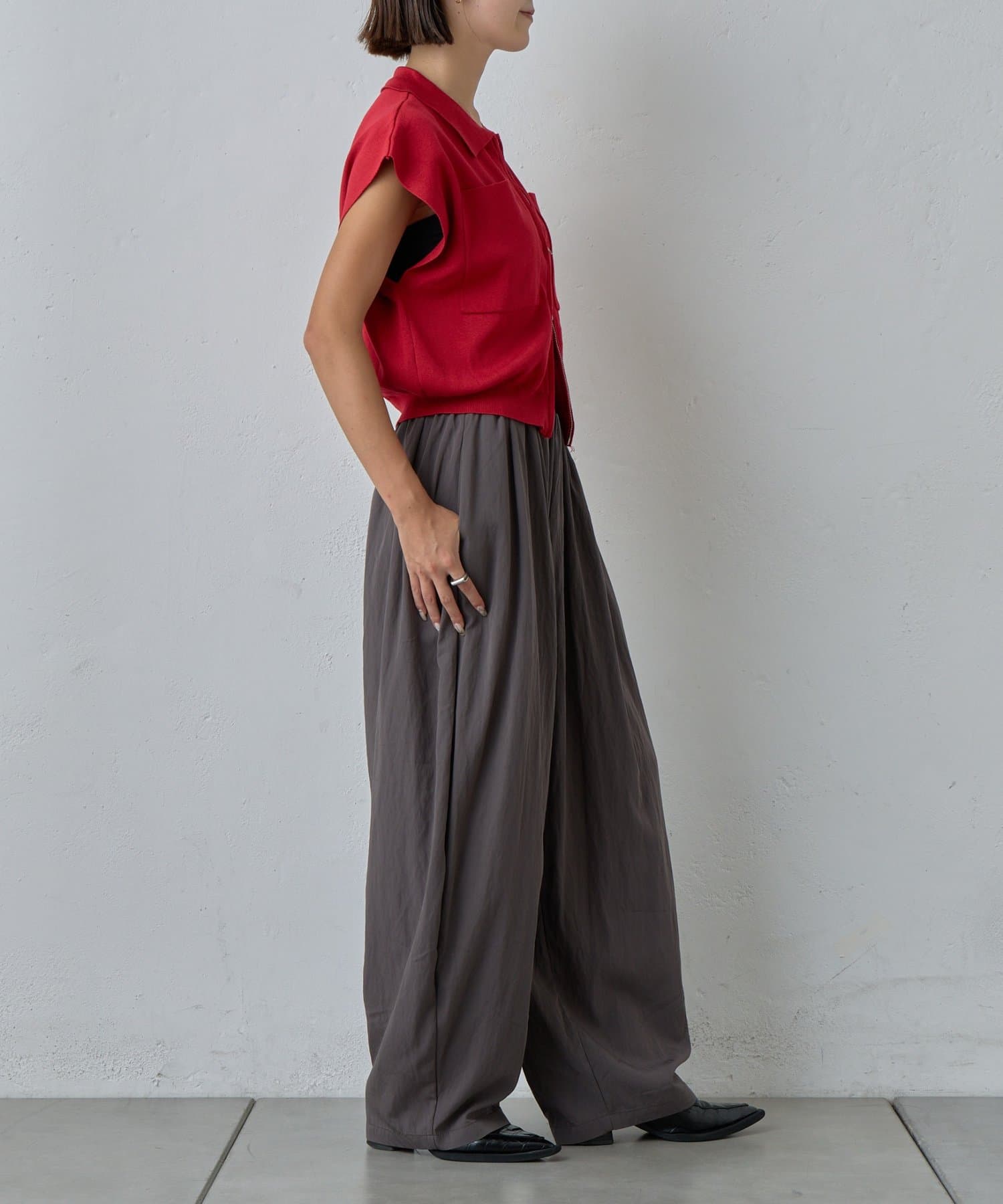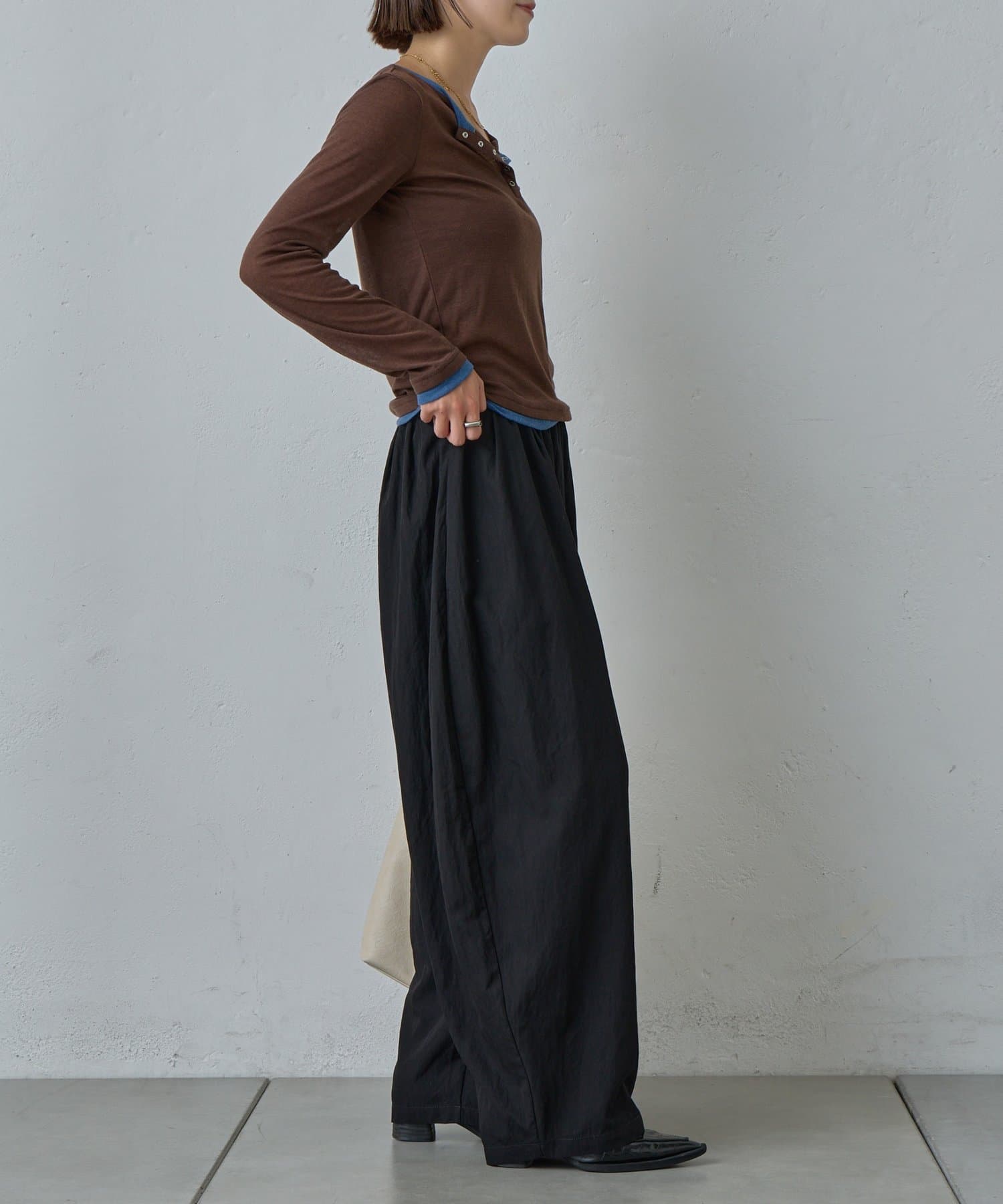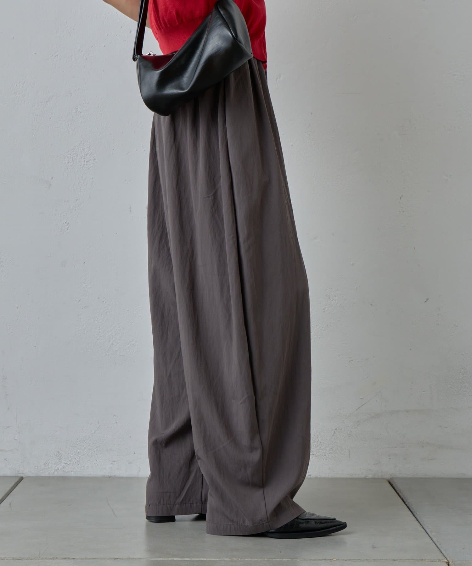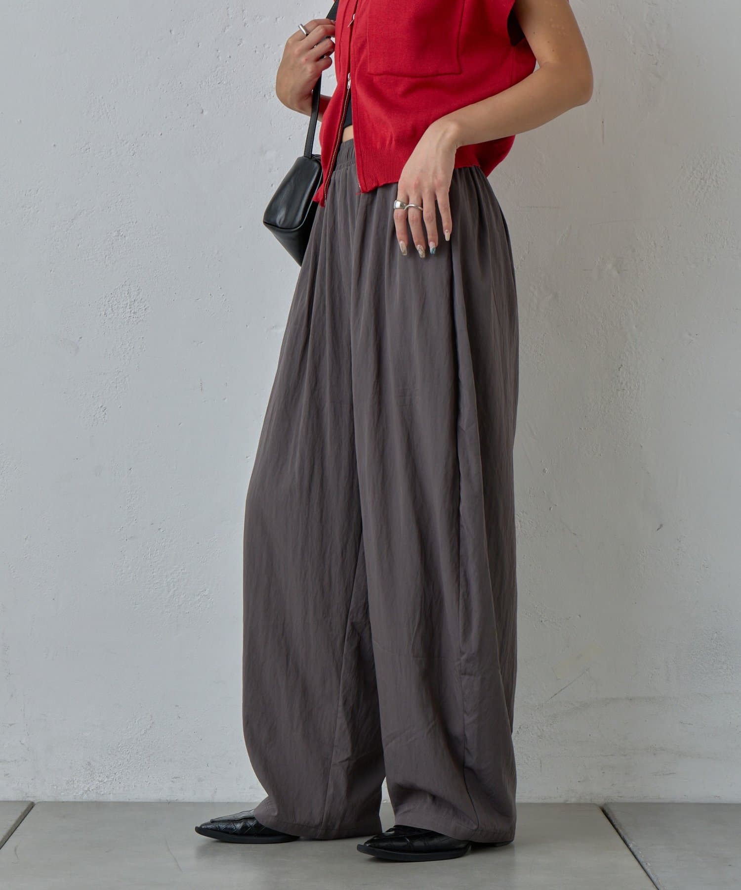 履くだけでこなれたカジュアルスタイルになる、ビスコースコクーンイージーパンツ