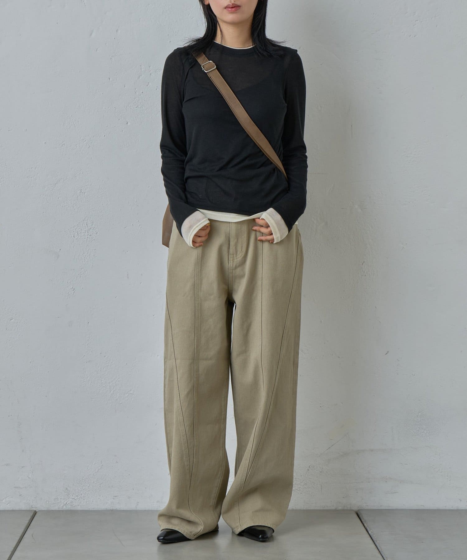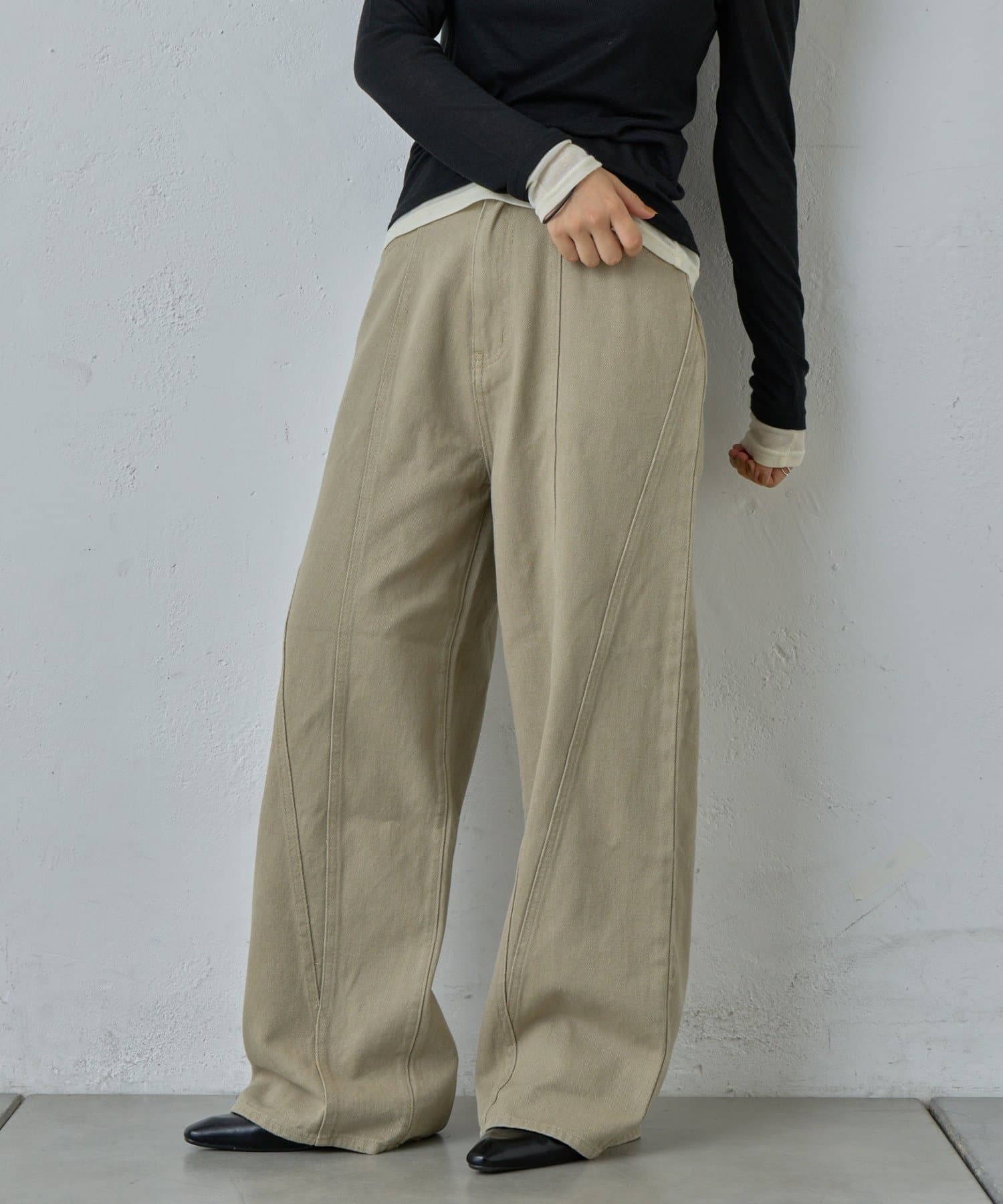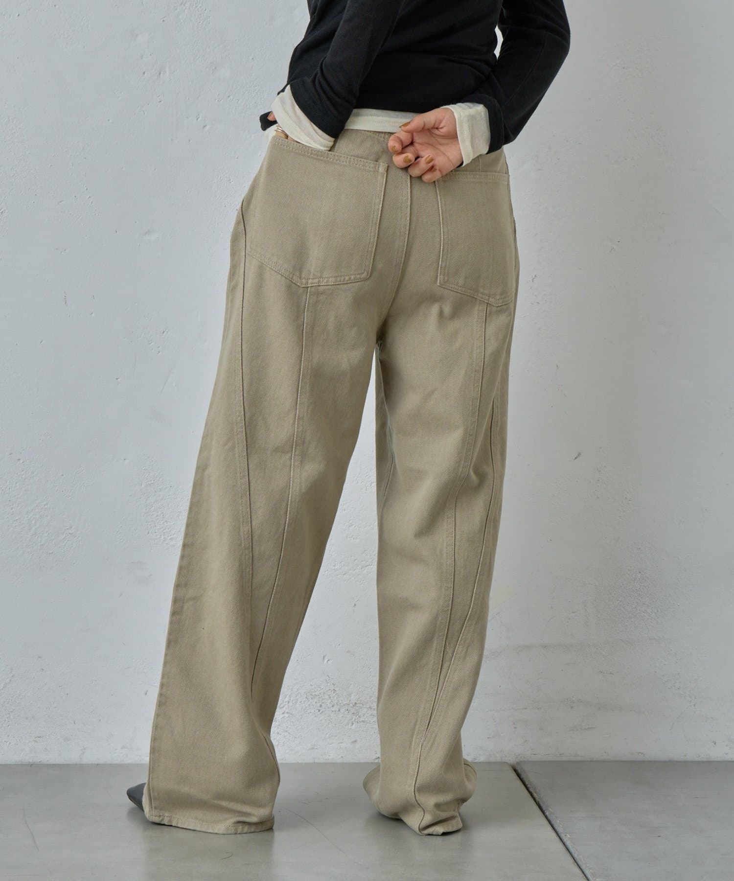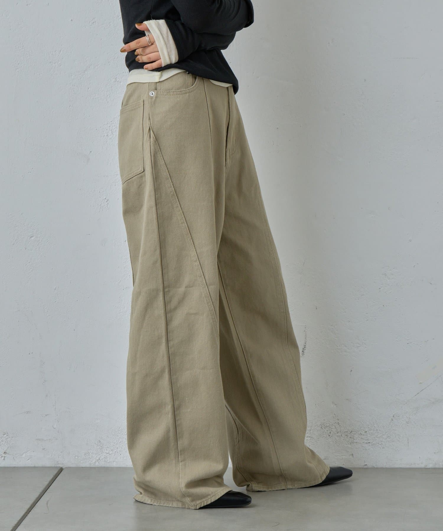 立体感のある切り替えデザインが特徴的なストレートパンツ