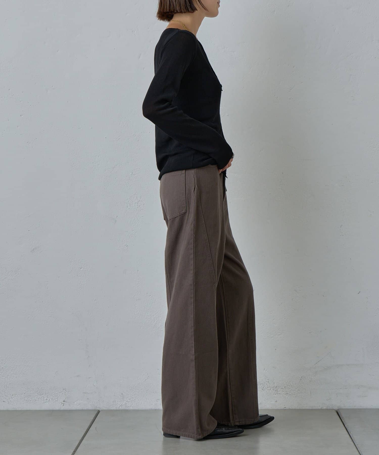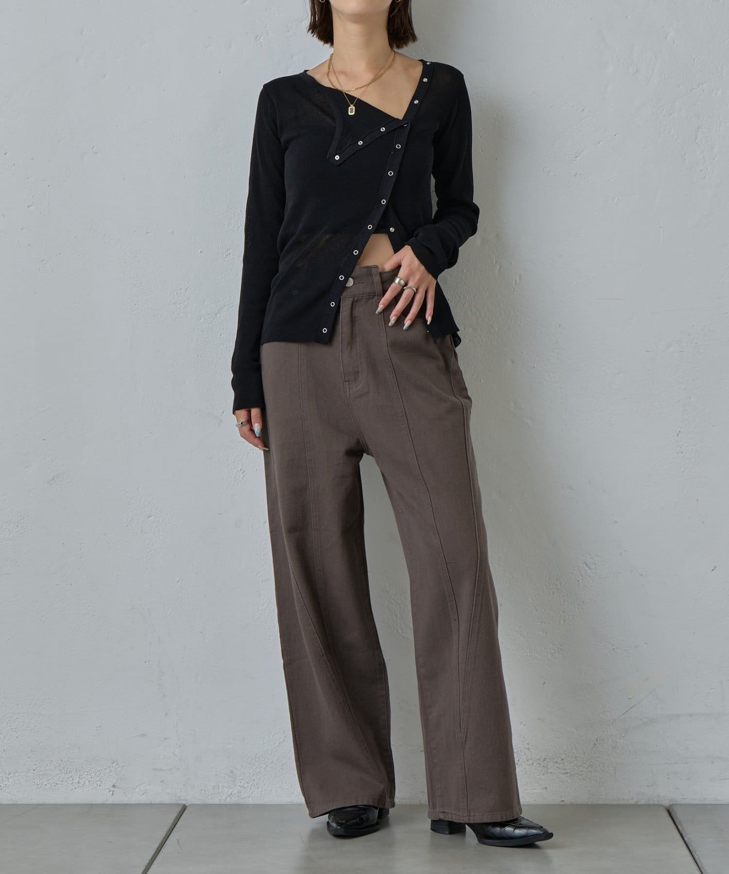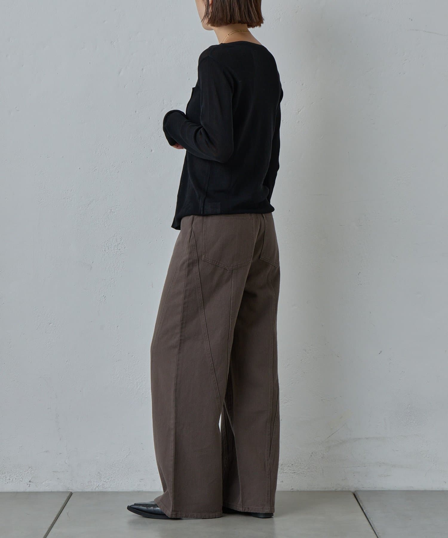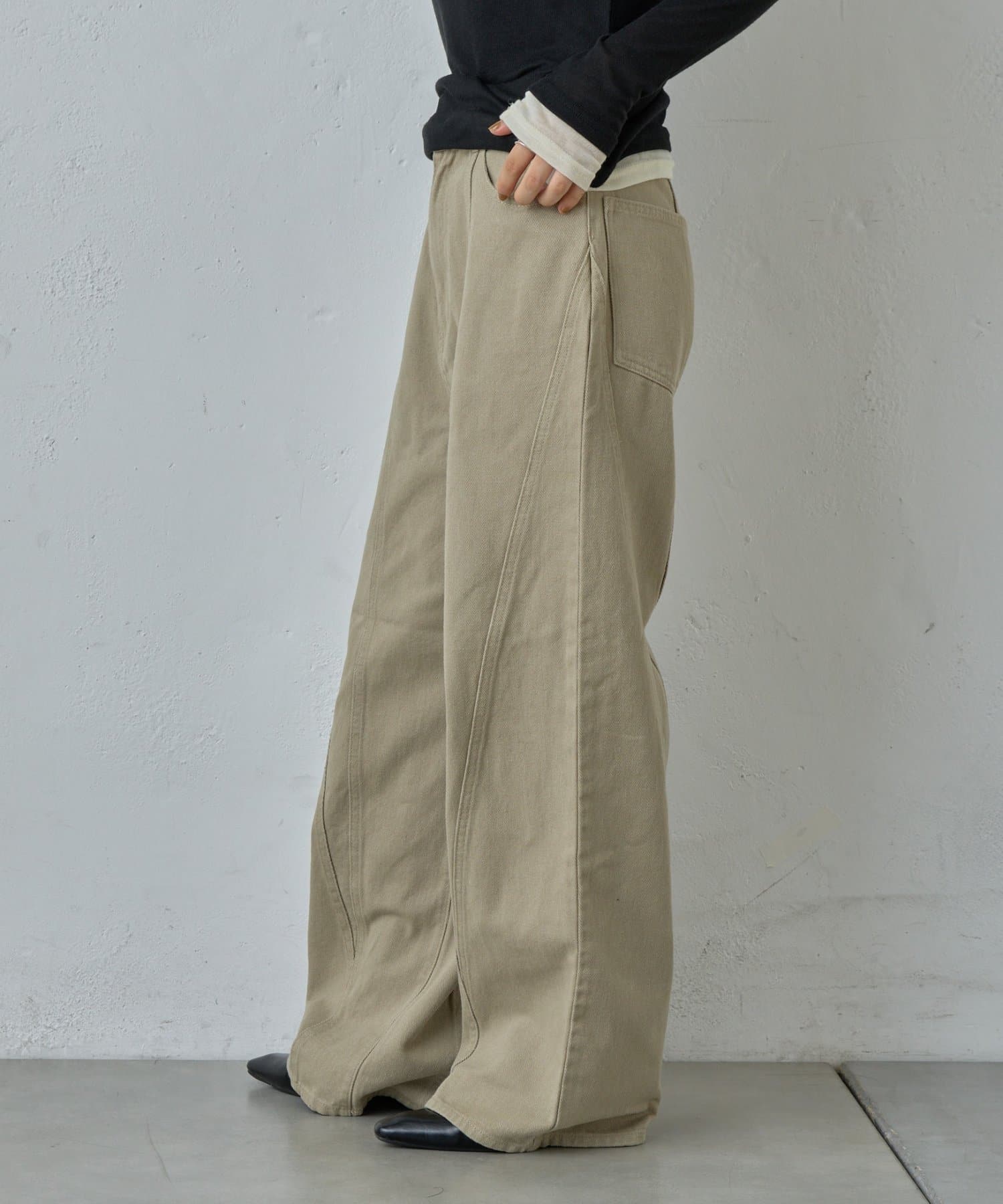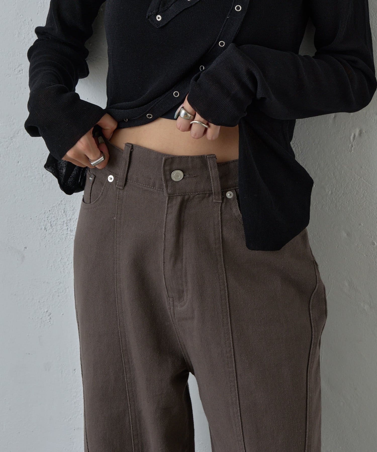 立体感のある切り替えデザインが特徴的なストレートパンツ