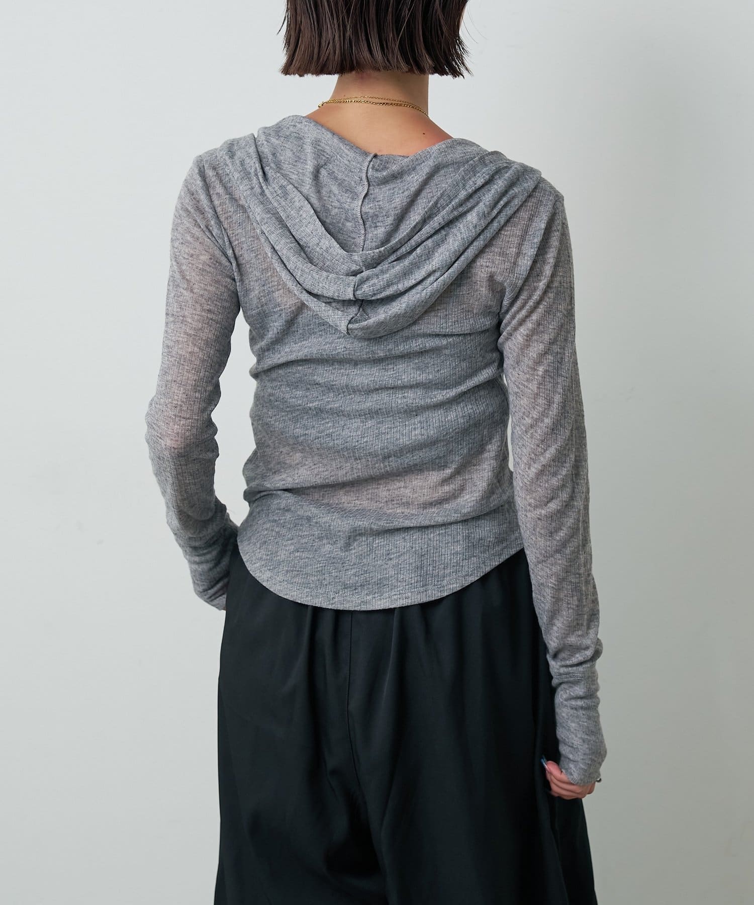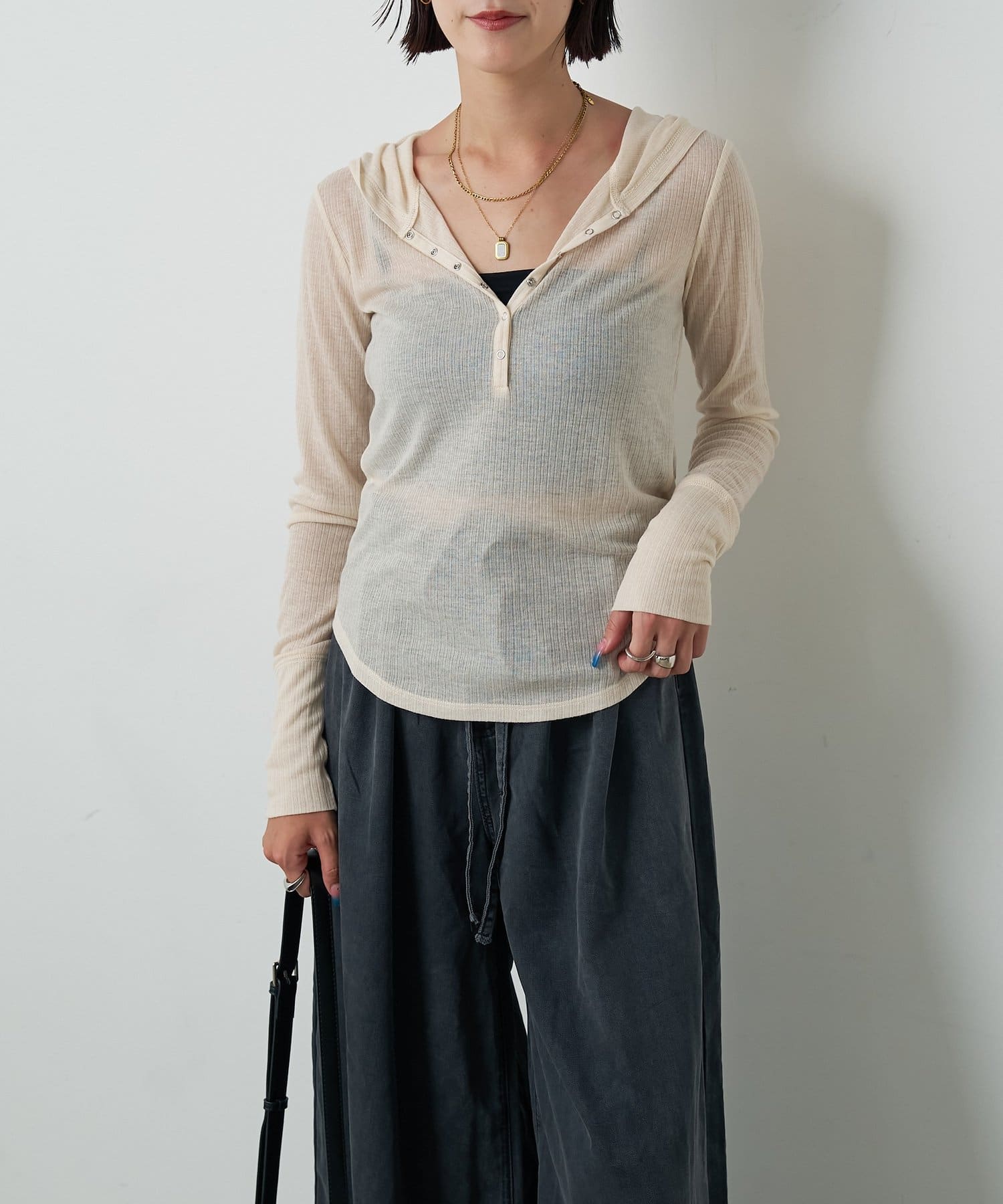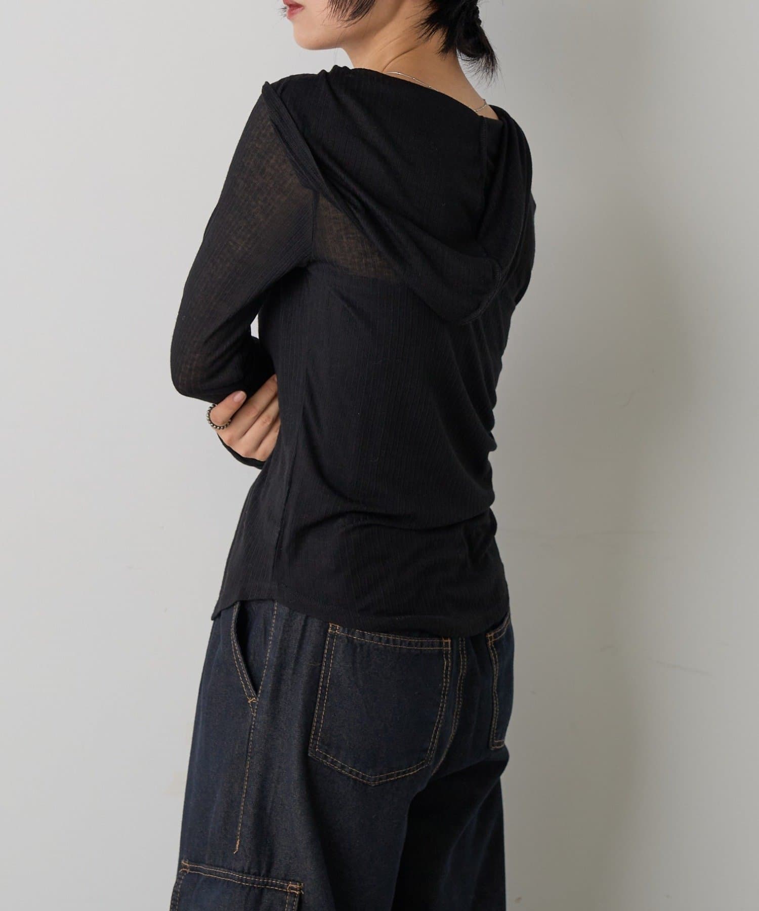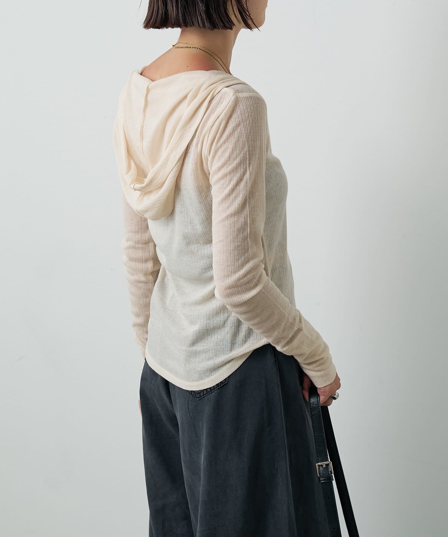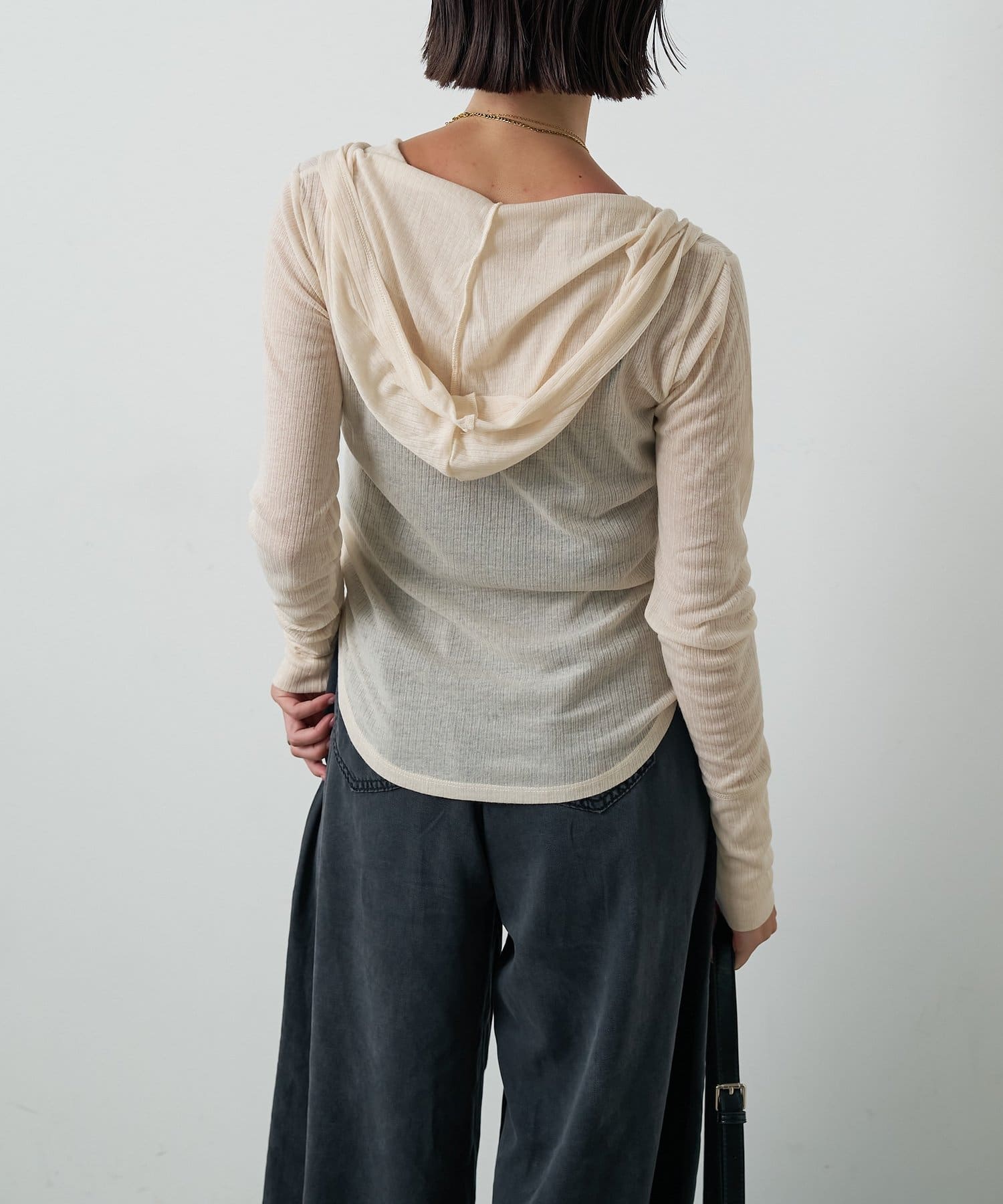 ほんのりシアーの、レイヤード自在なフーディトップス