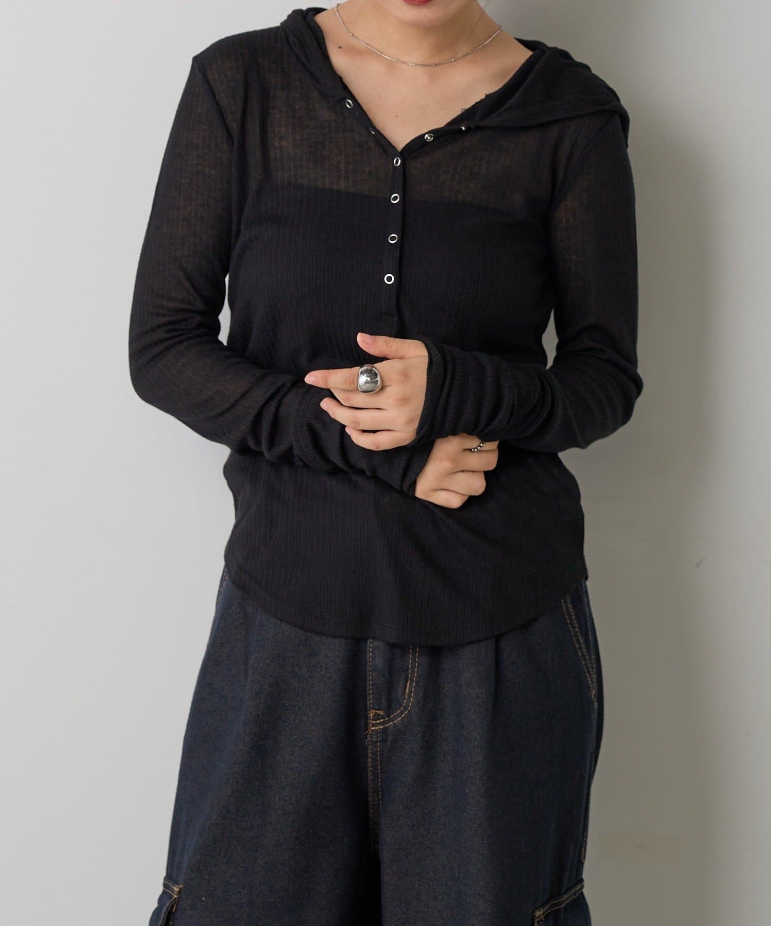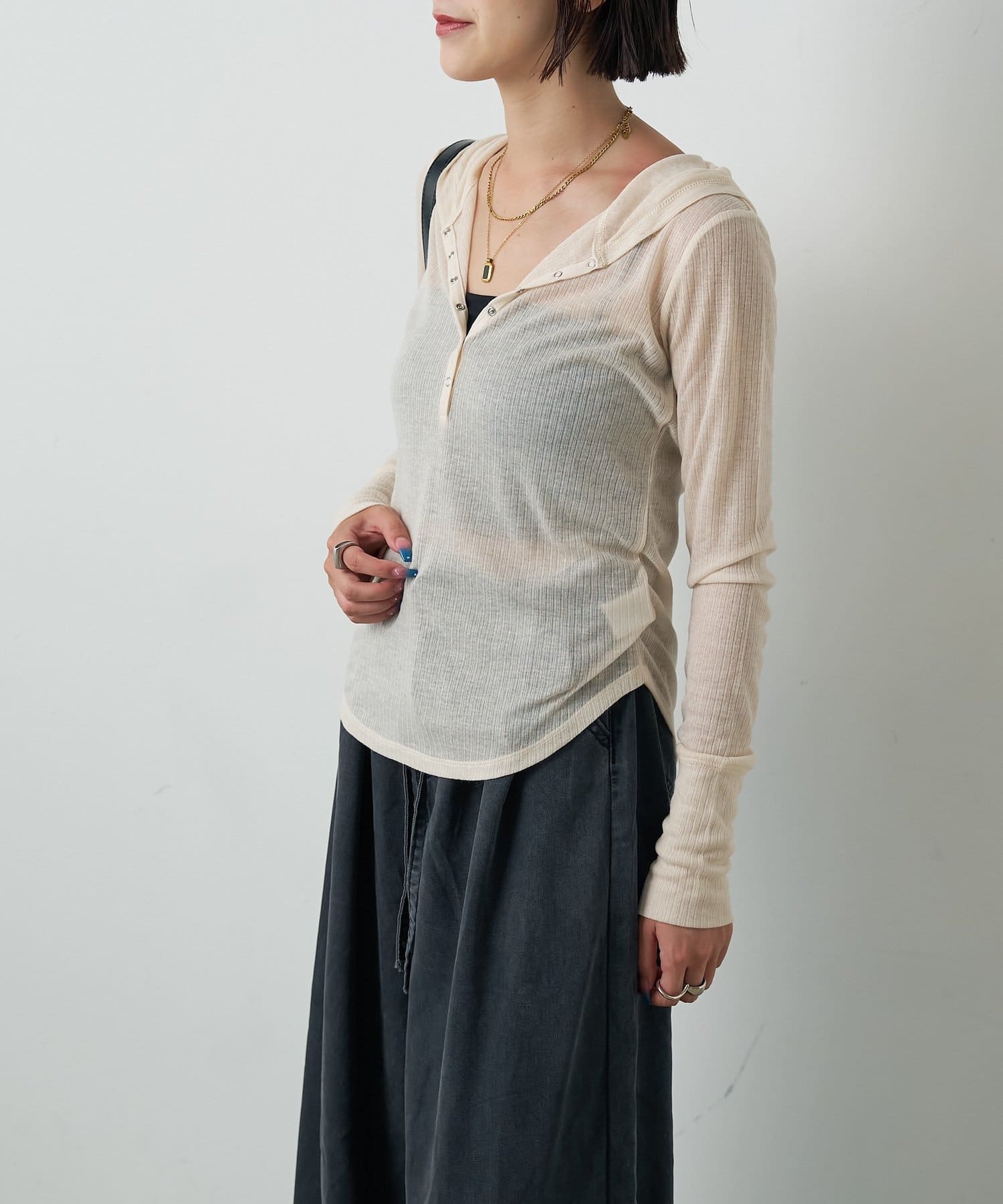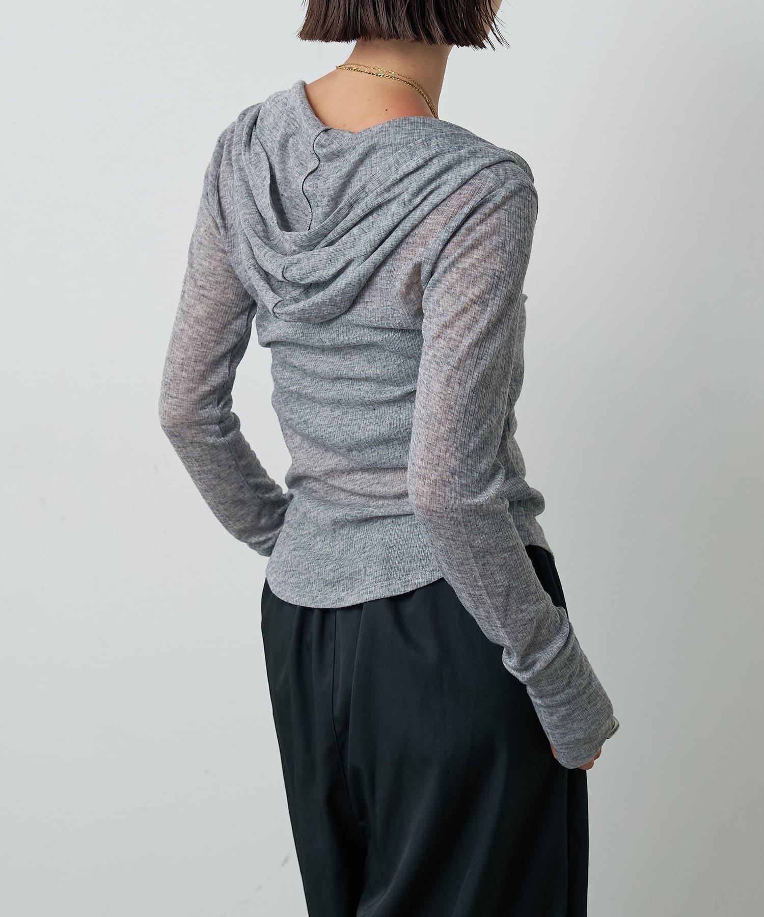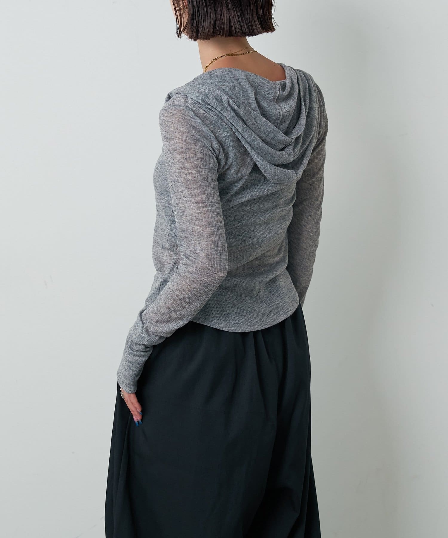 ほんのりシアーの、レイヤード自在なフーディトップス