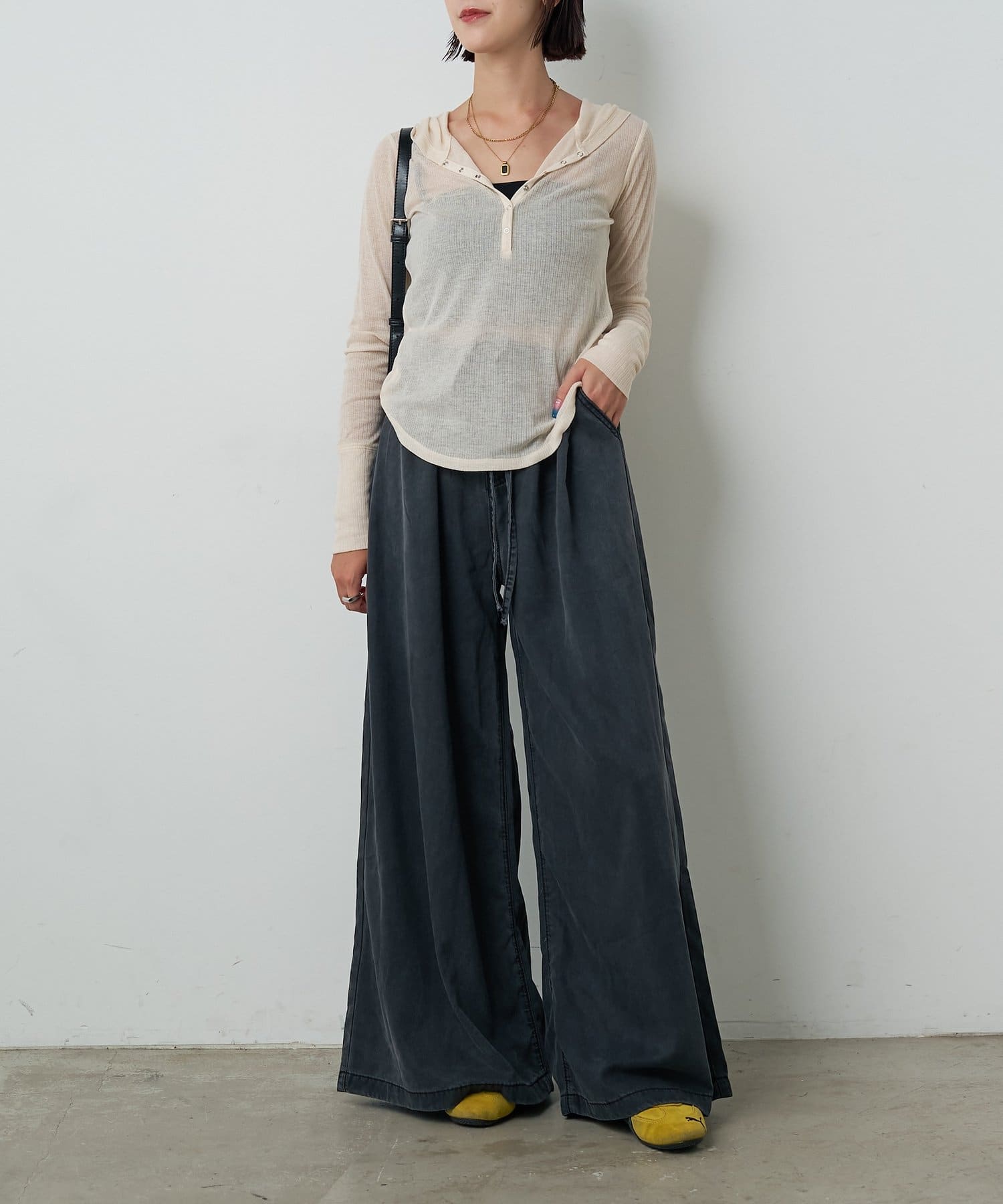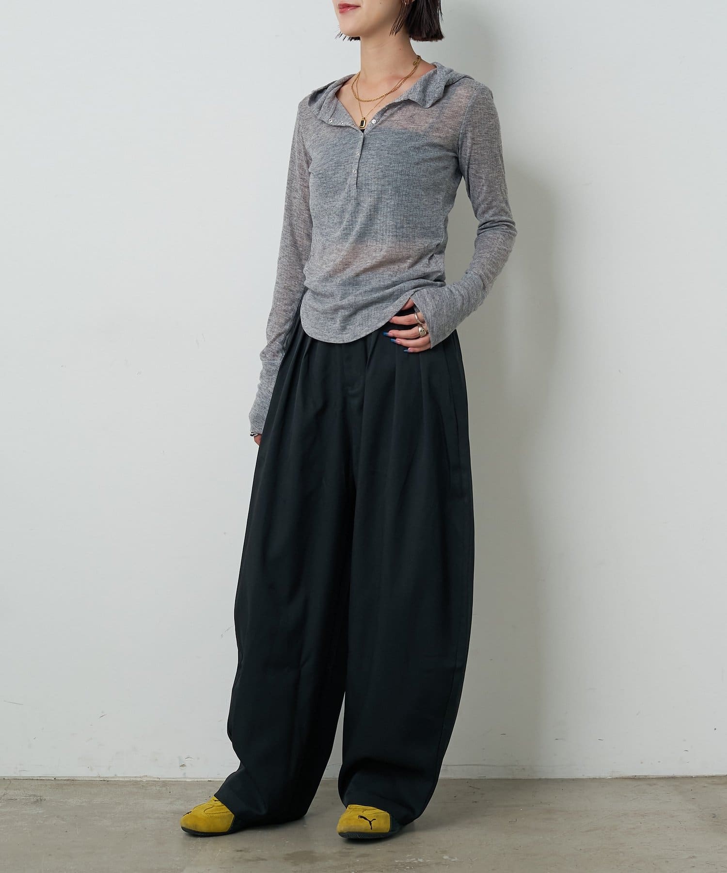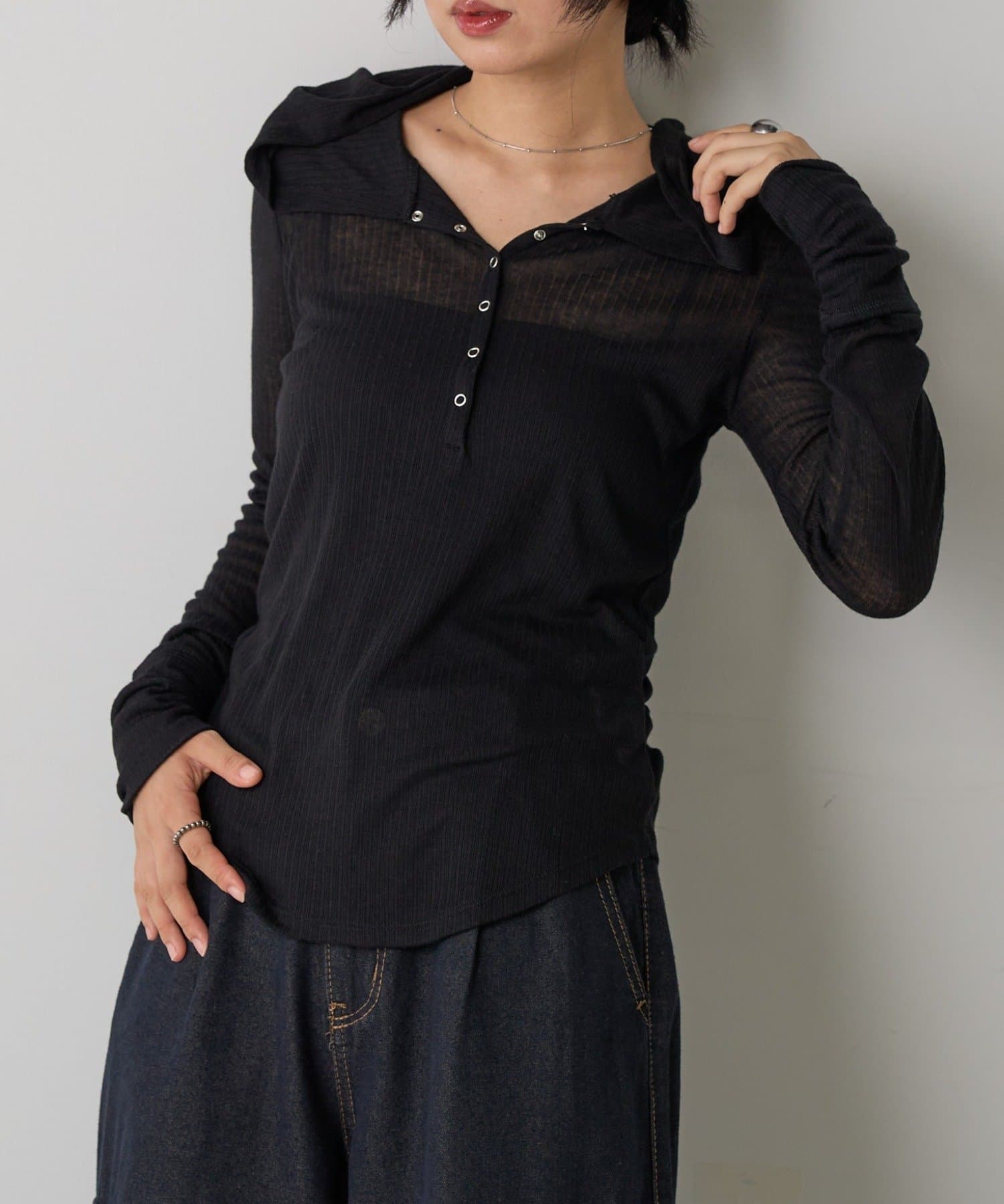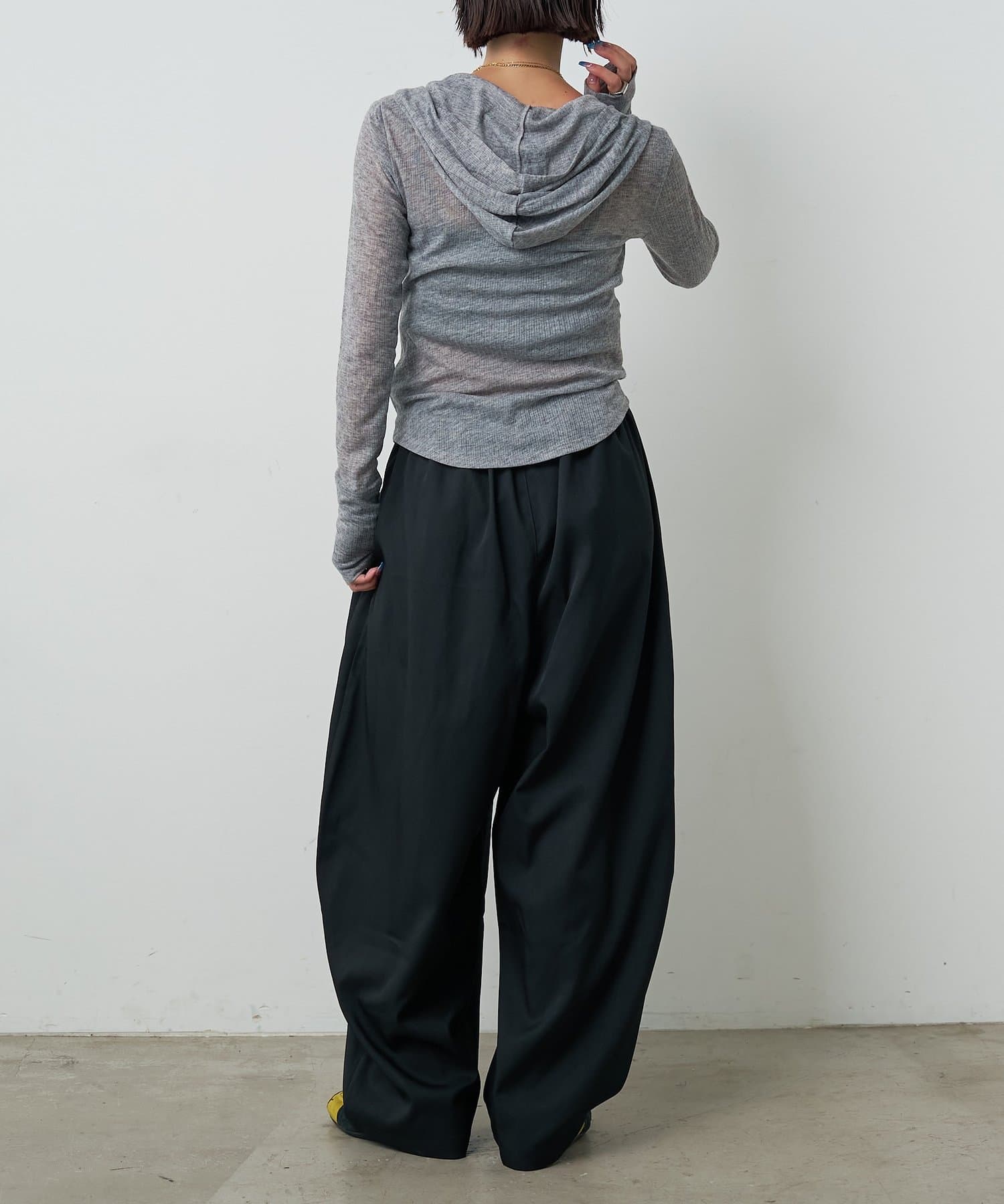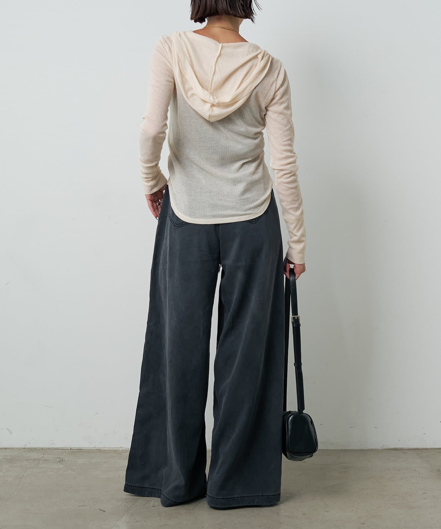 ほんのりシアーの、レイヤード自在なフーディトップス