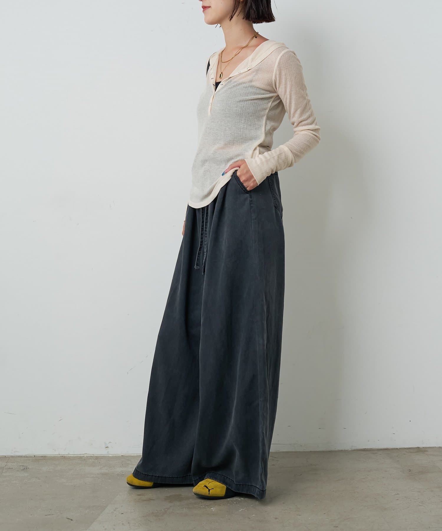 ・カジュアルなデザインながらも、シアーで抜け感をプラス