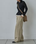 ・タイトなシルエットなので、ワイドデニムなど下にボリュームを持たせるのが今季トレンドスタイル