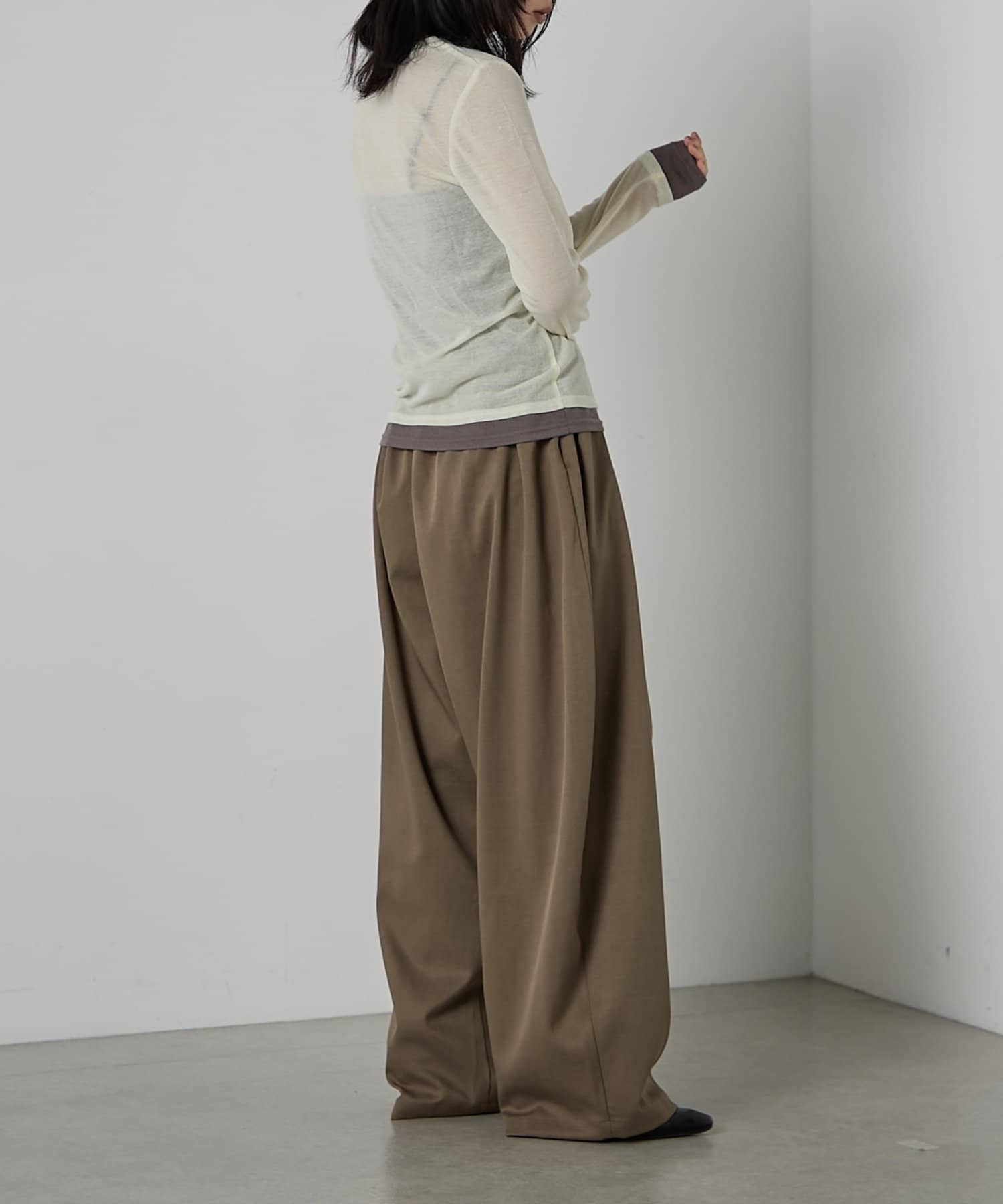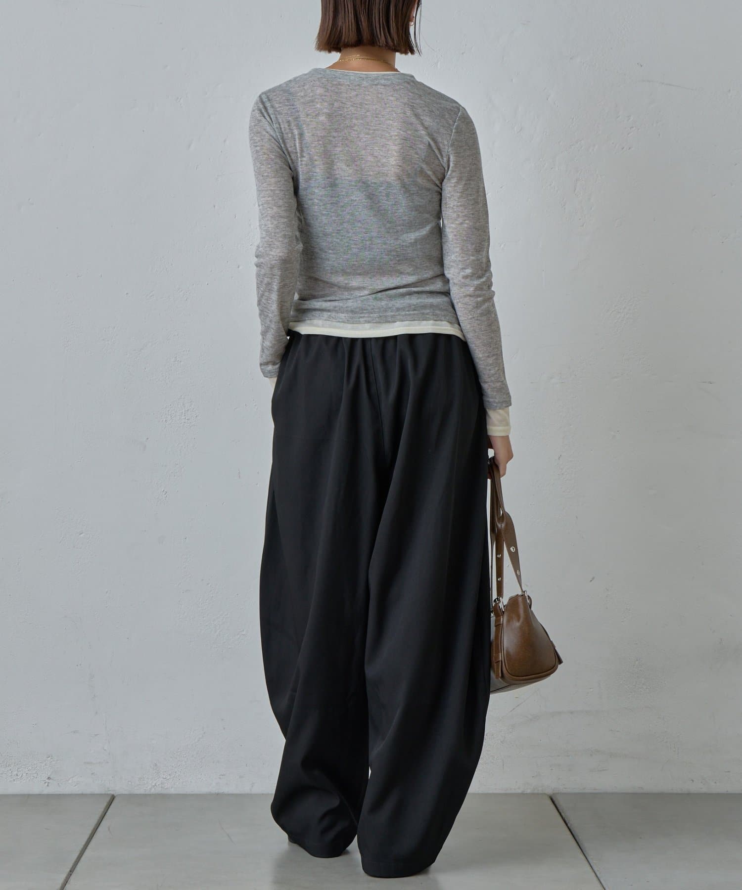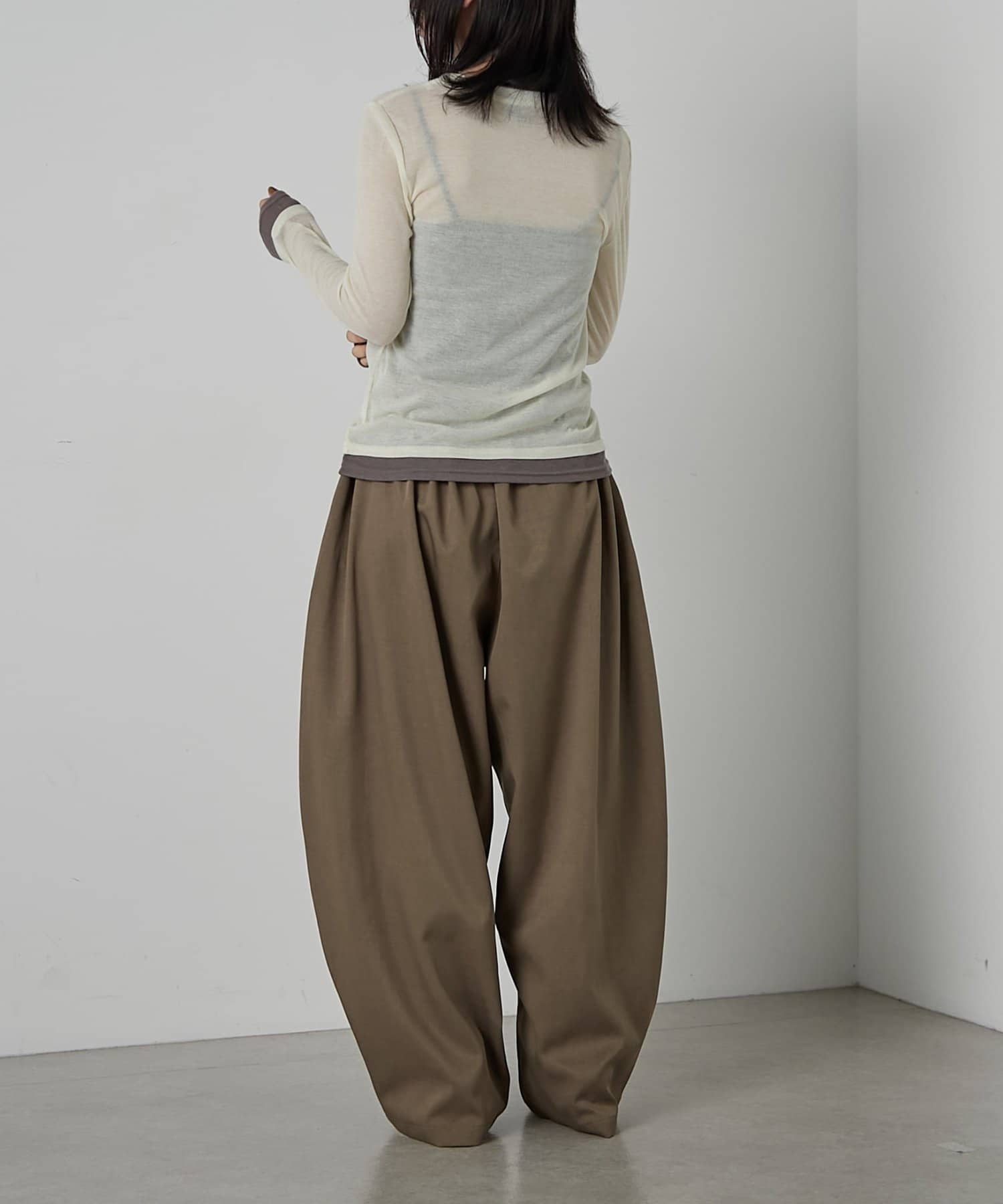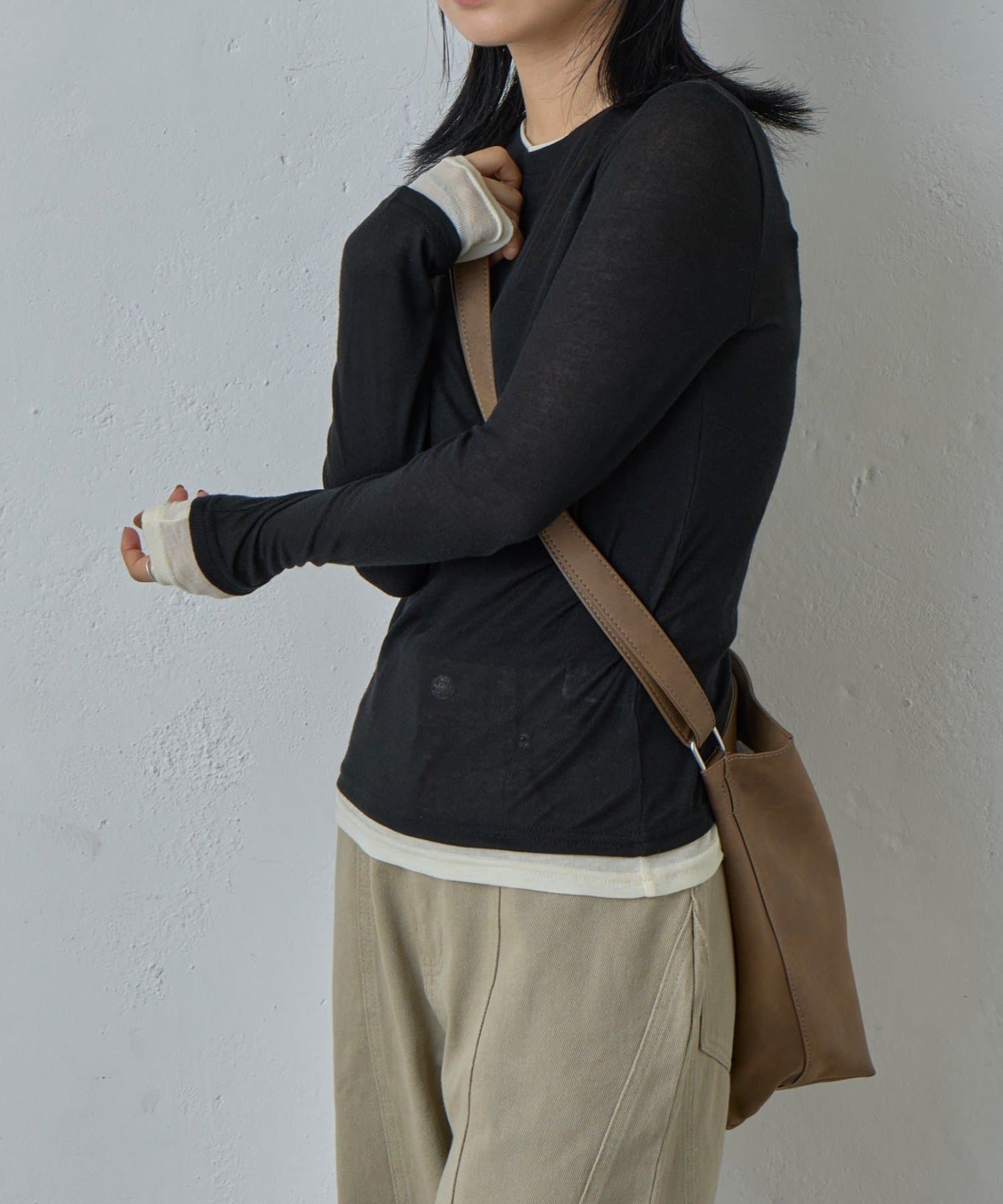 AWらしい程よいシアー感が抜け感のあるスタイリングを演出する、配色重ね着風シアーロンT