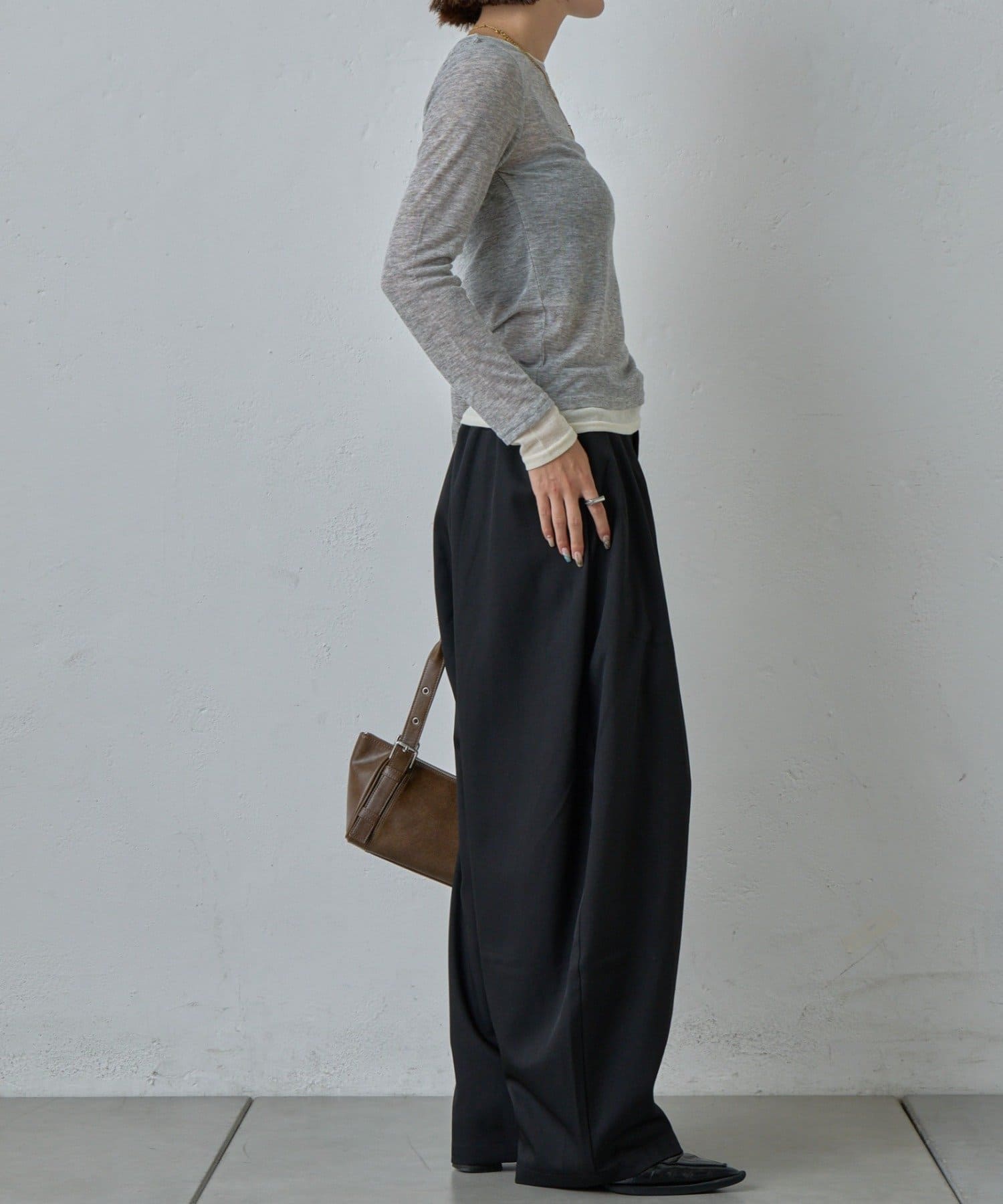 ・少し長めの袖丈がルーズな抜け感を演出