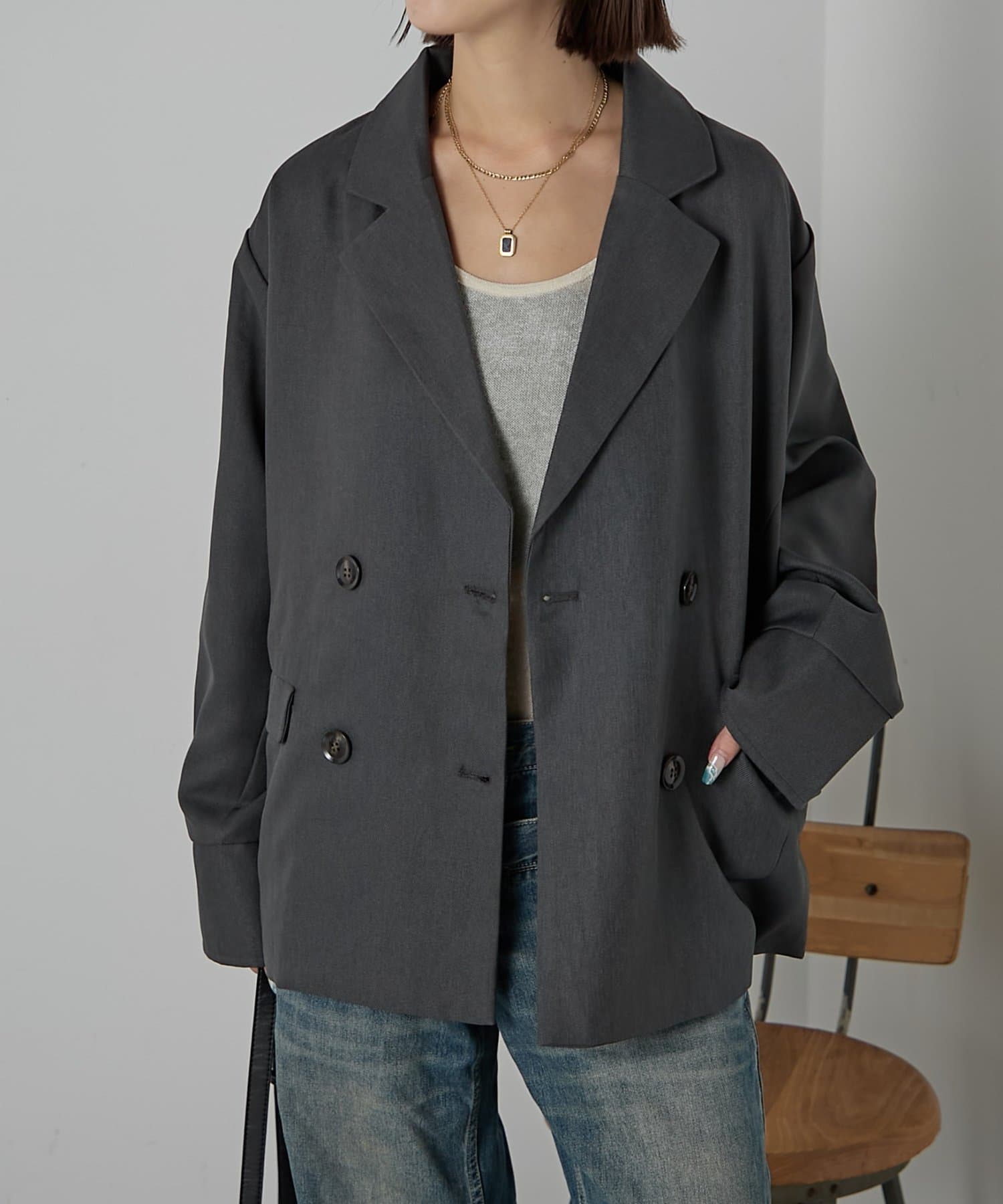 ・折り返しデザインがアクセントになったダブルジャケット