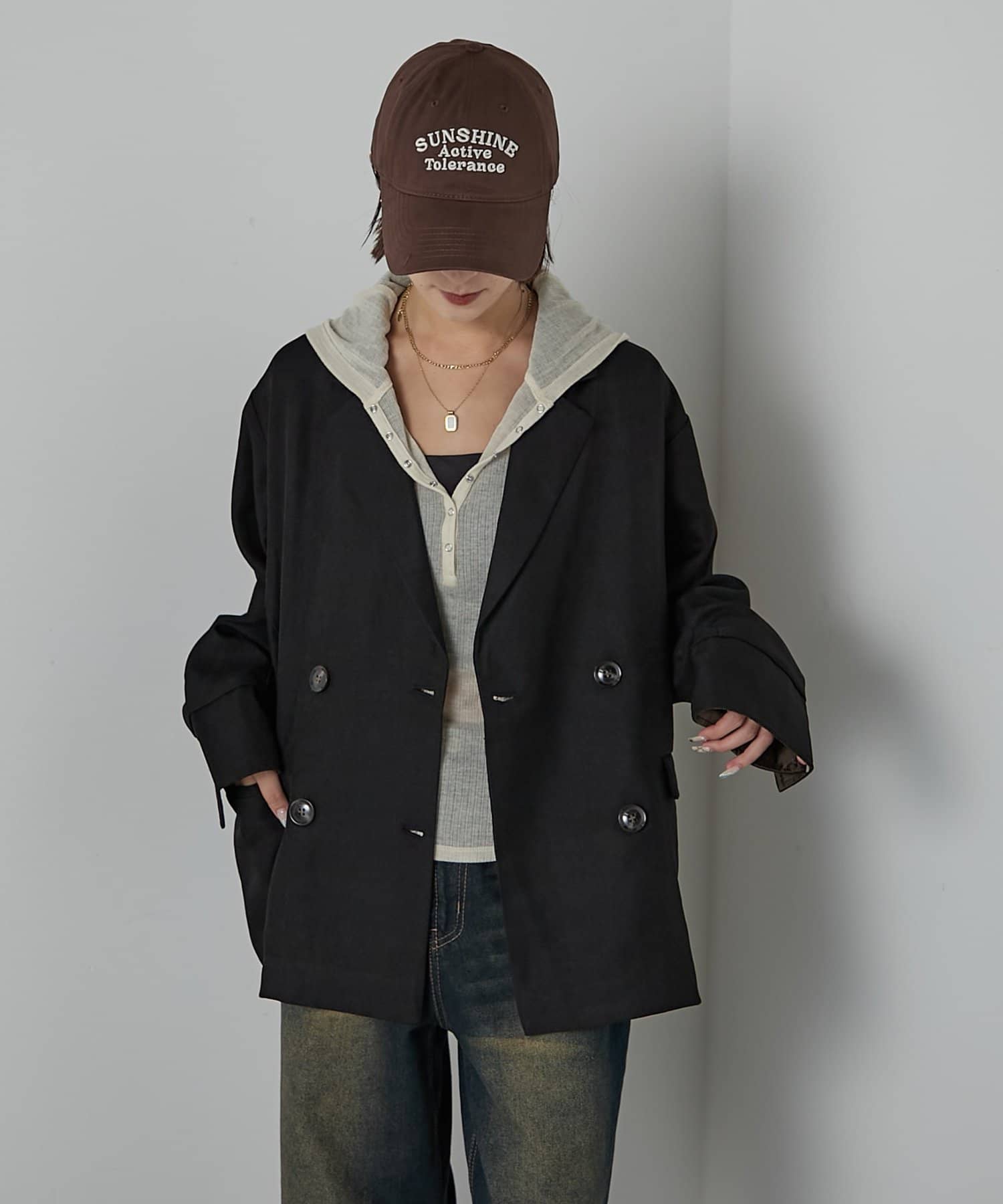 袖折り返しダブルジャケット