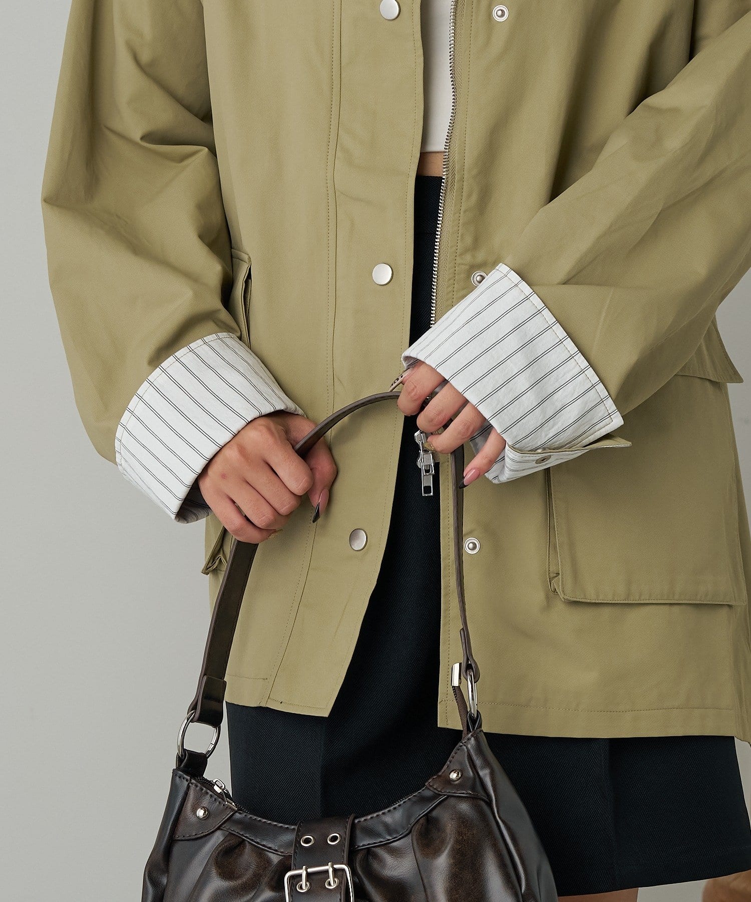 ・袖を折り返して着用可能◎ ストライプデザインが施されている