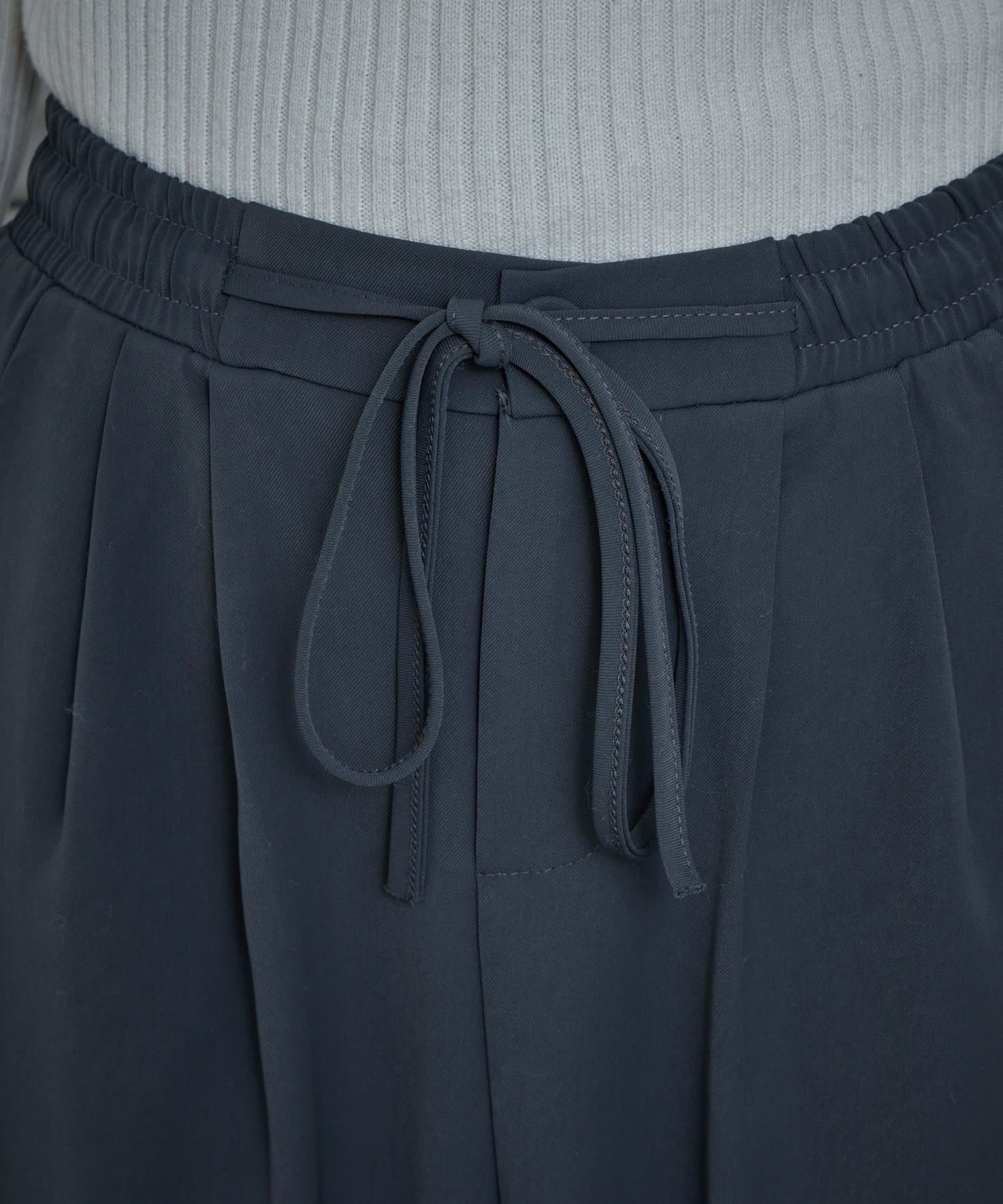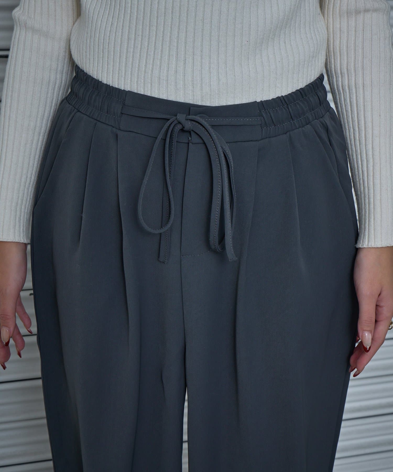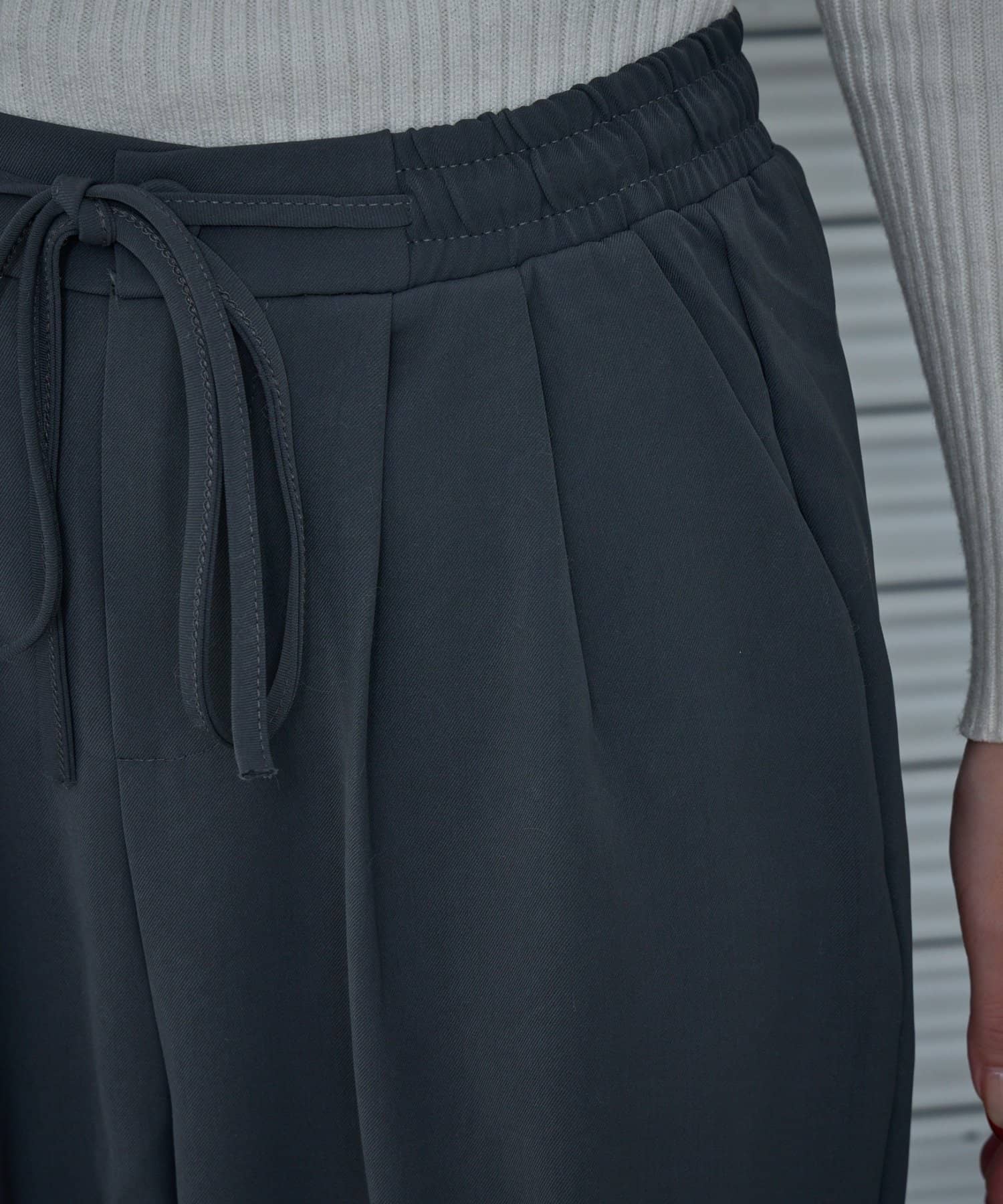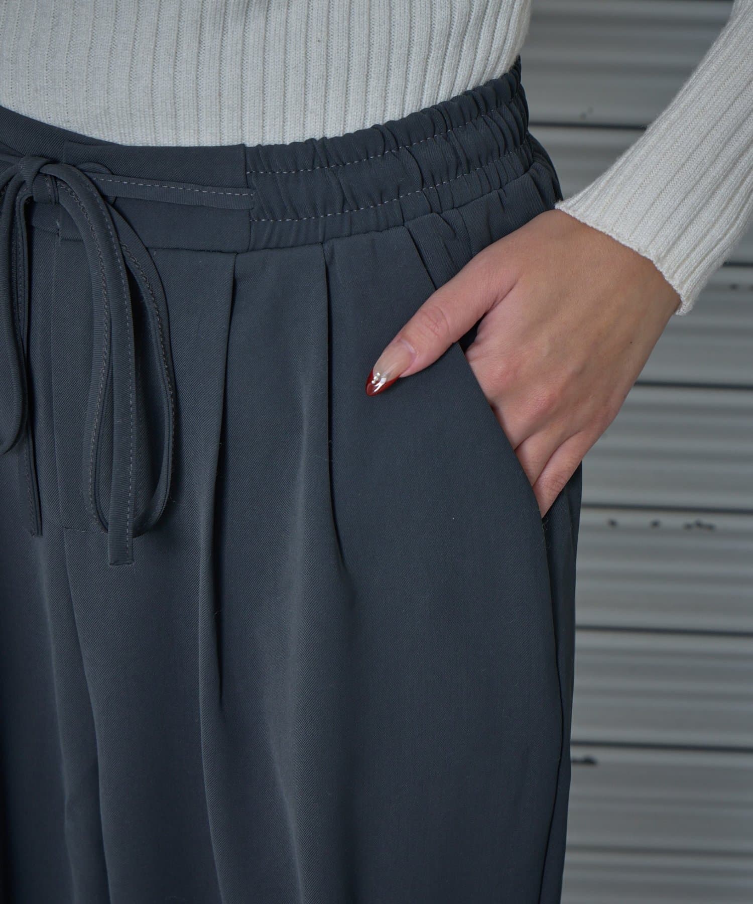 ・ウエストスピンドル(紐)でサイズ調節可能なタックパンツ