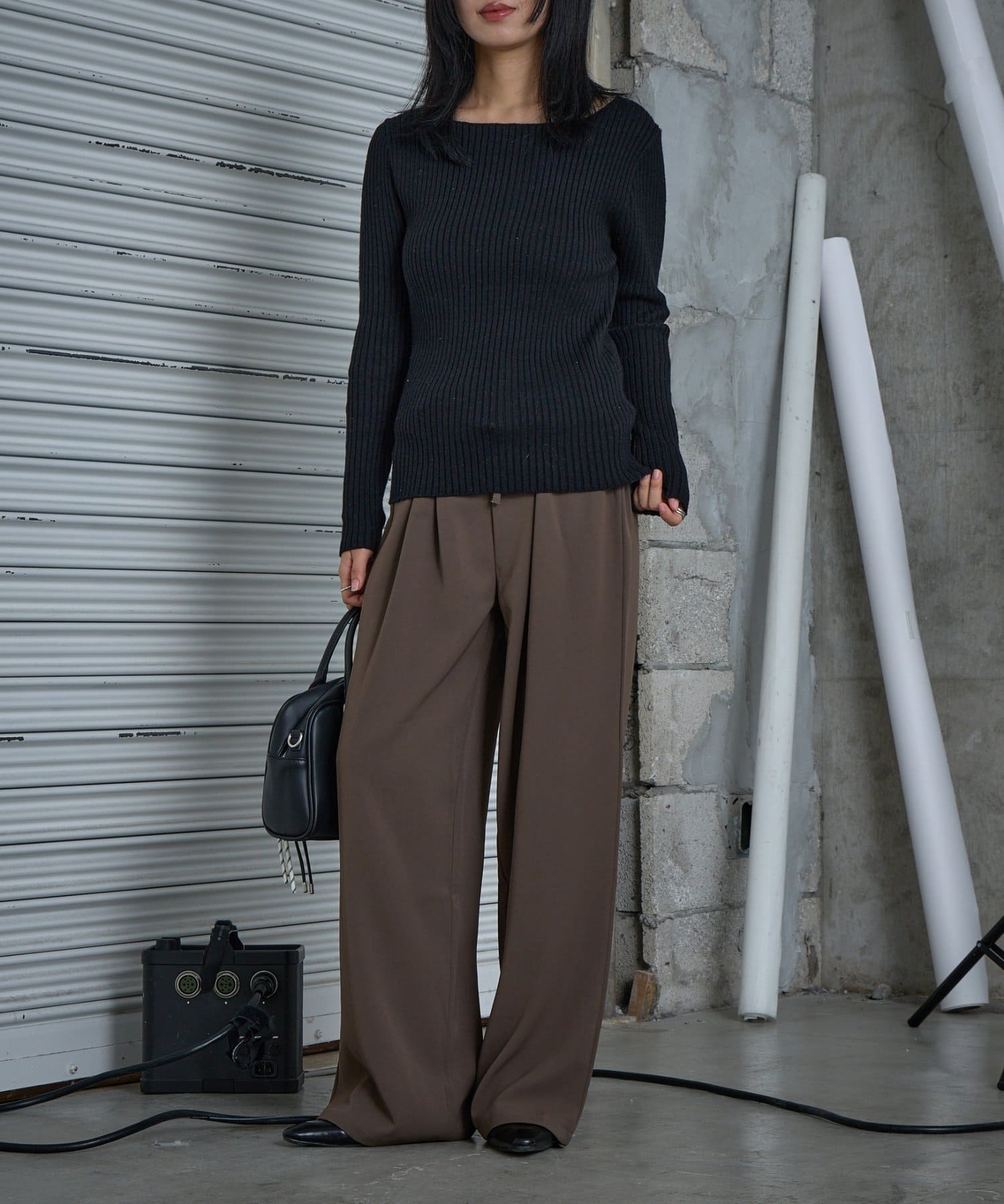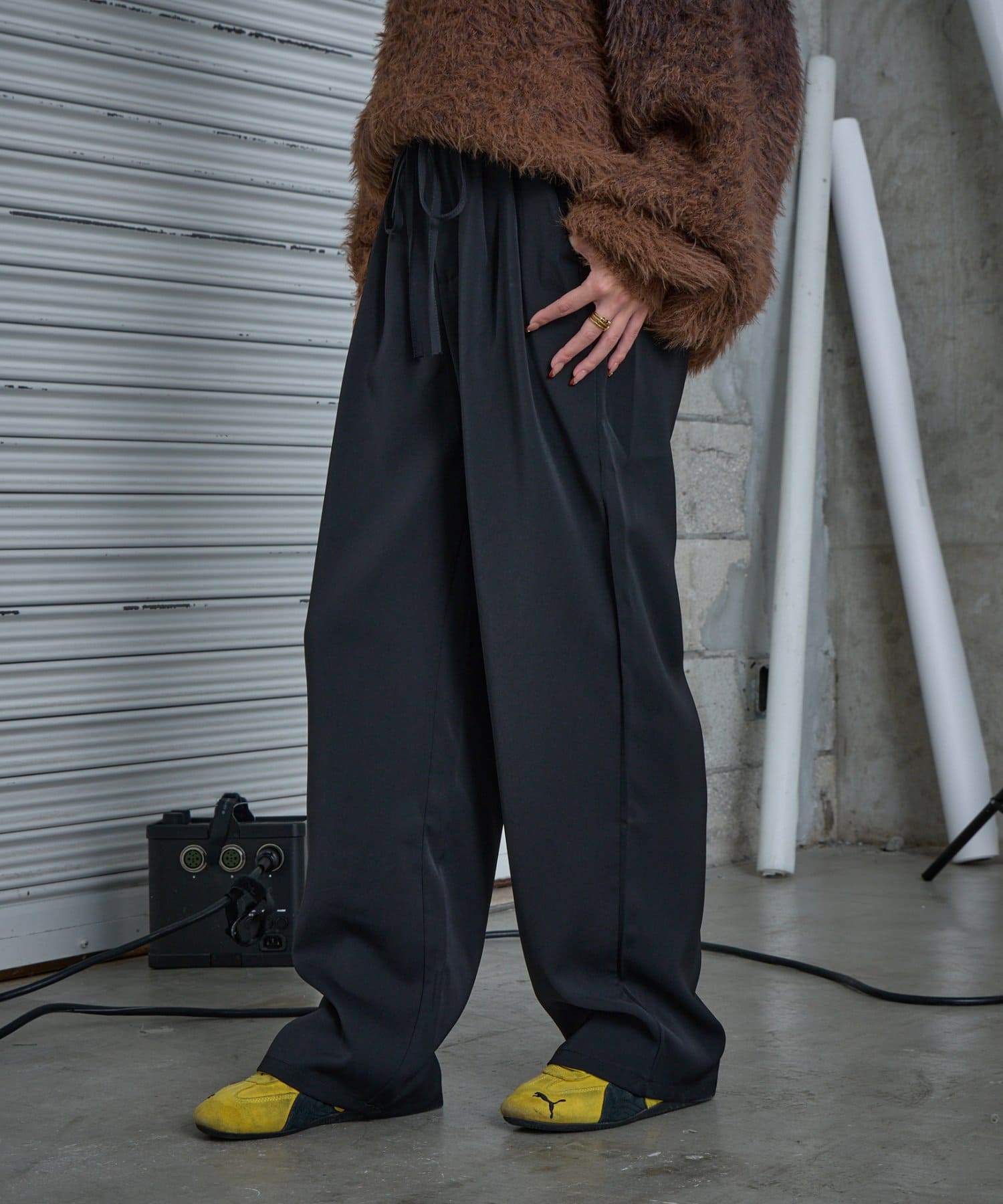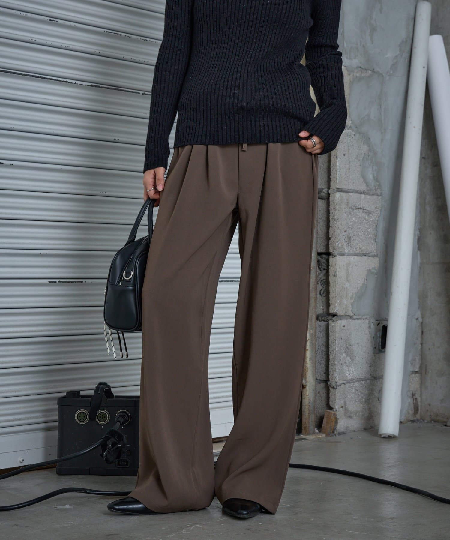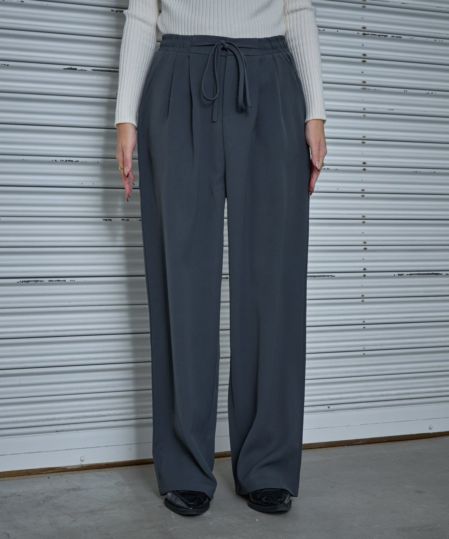 ・ウエストスピンドル(紐)でサイズ調節可能なタックパンツ