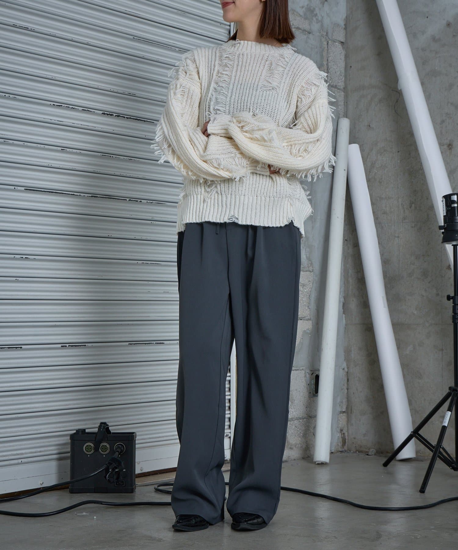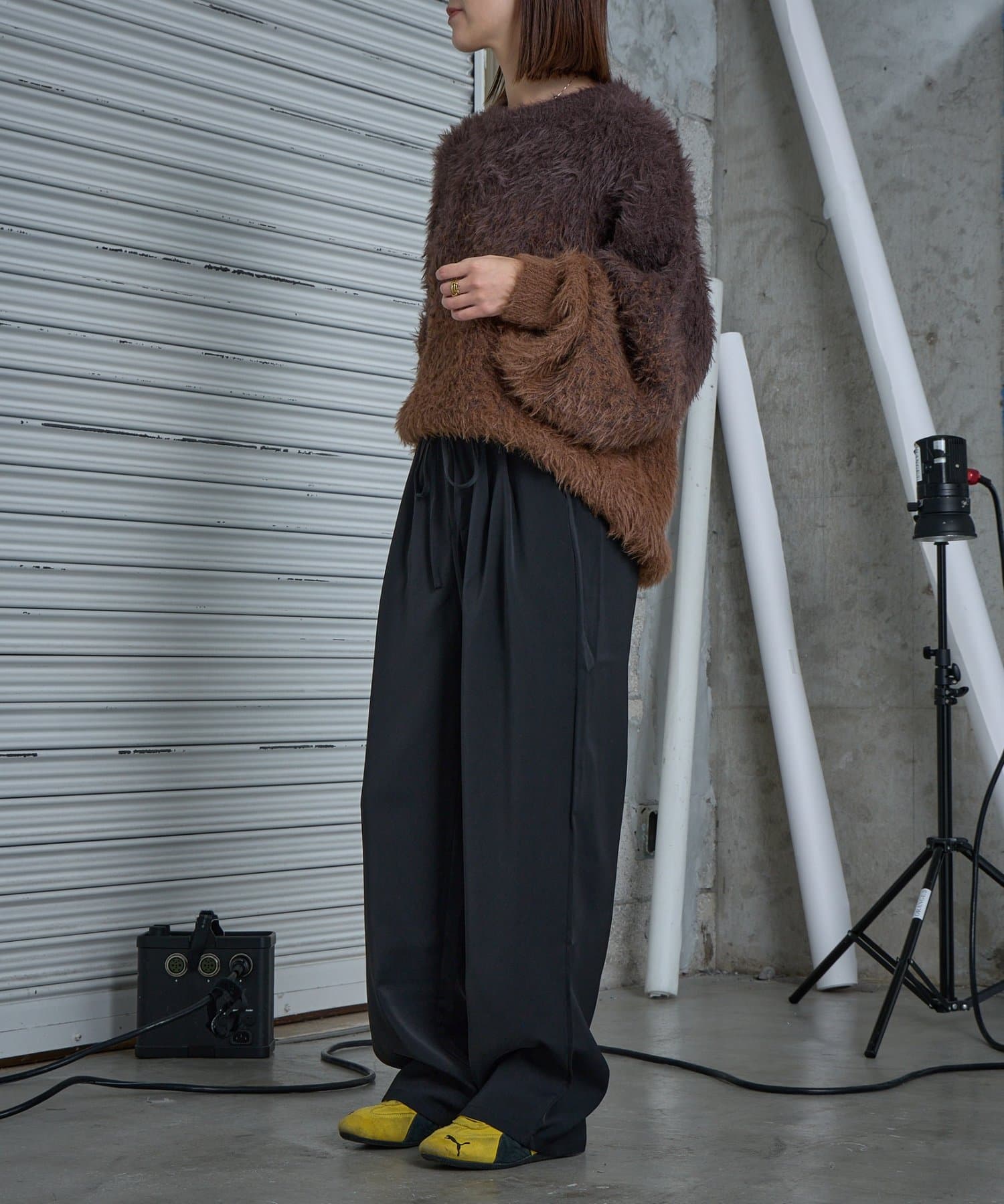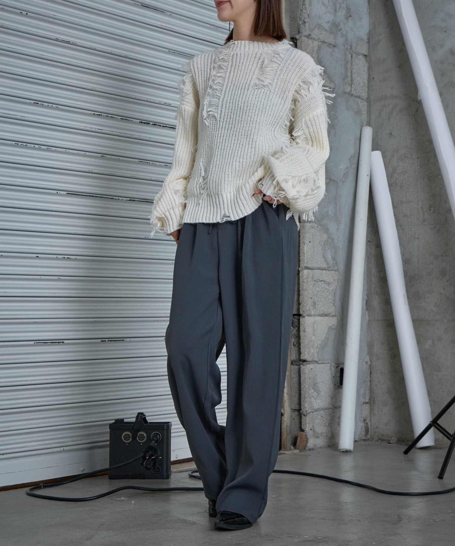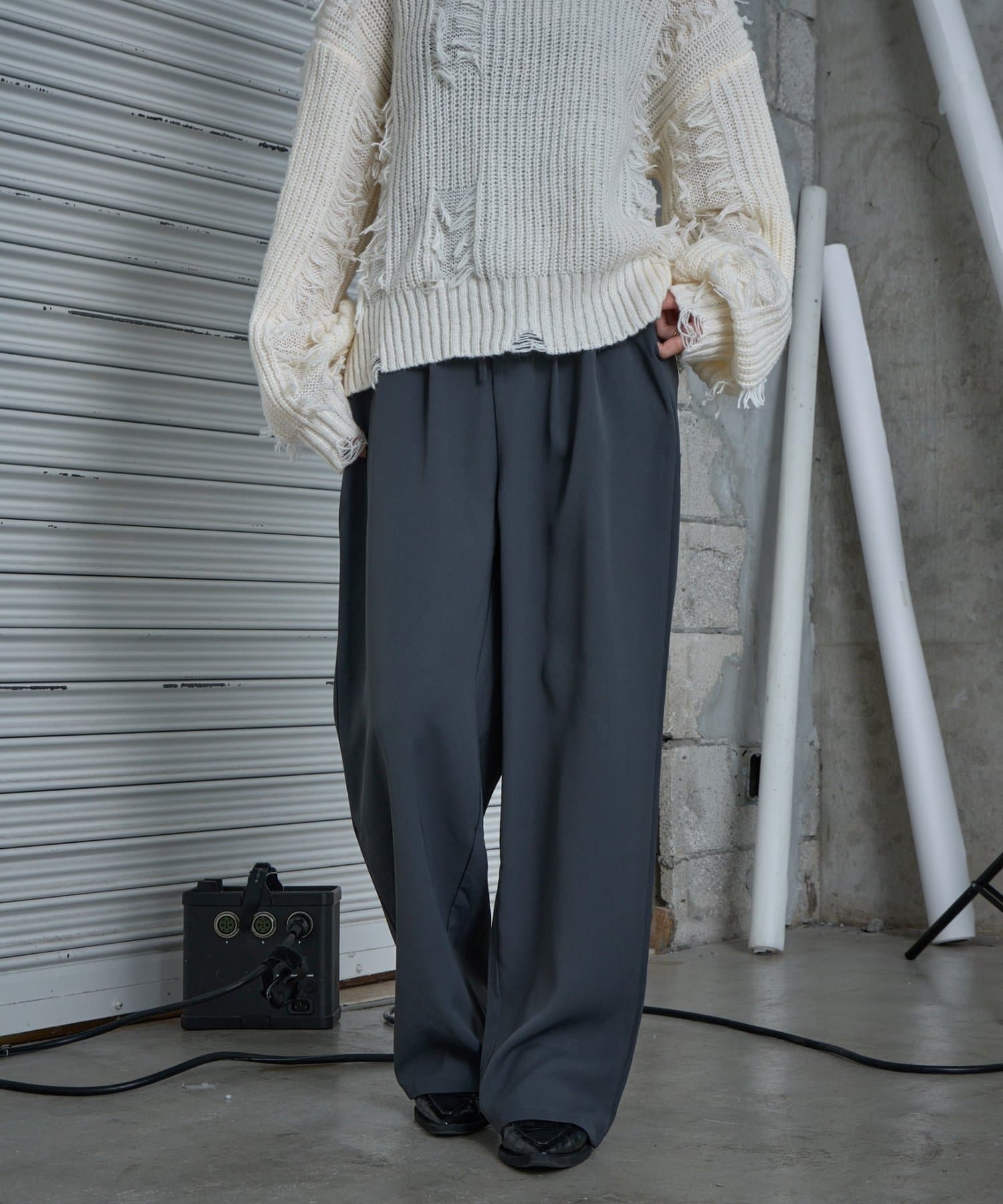 ・ウエストスピンドル(紐)でサイズ調節可能なタックパンツ