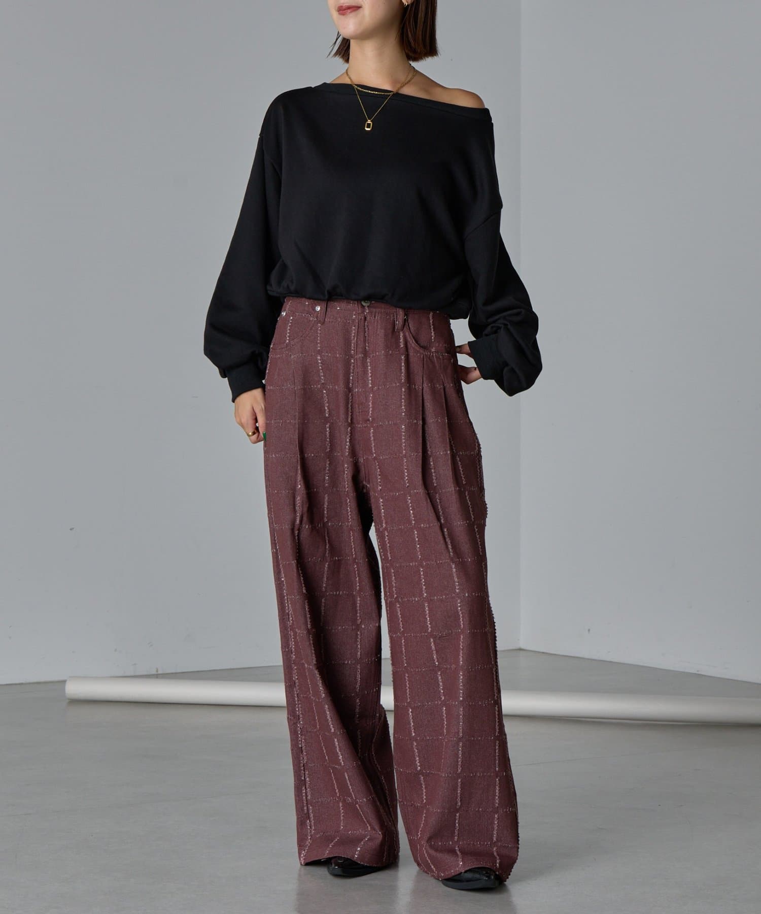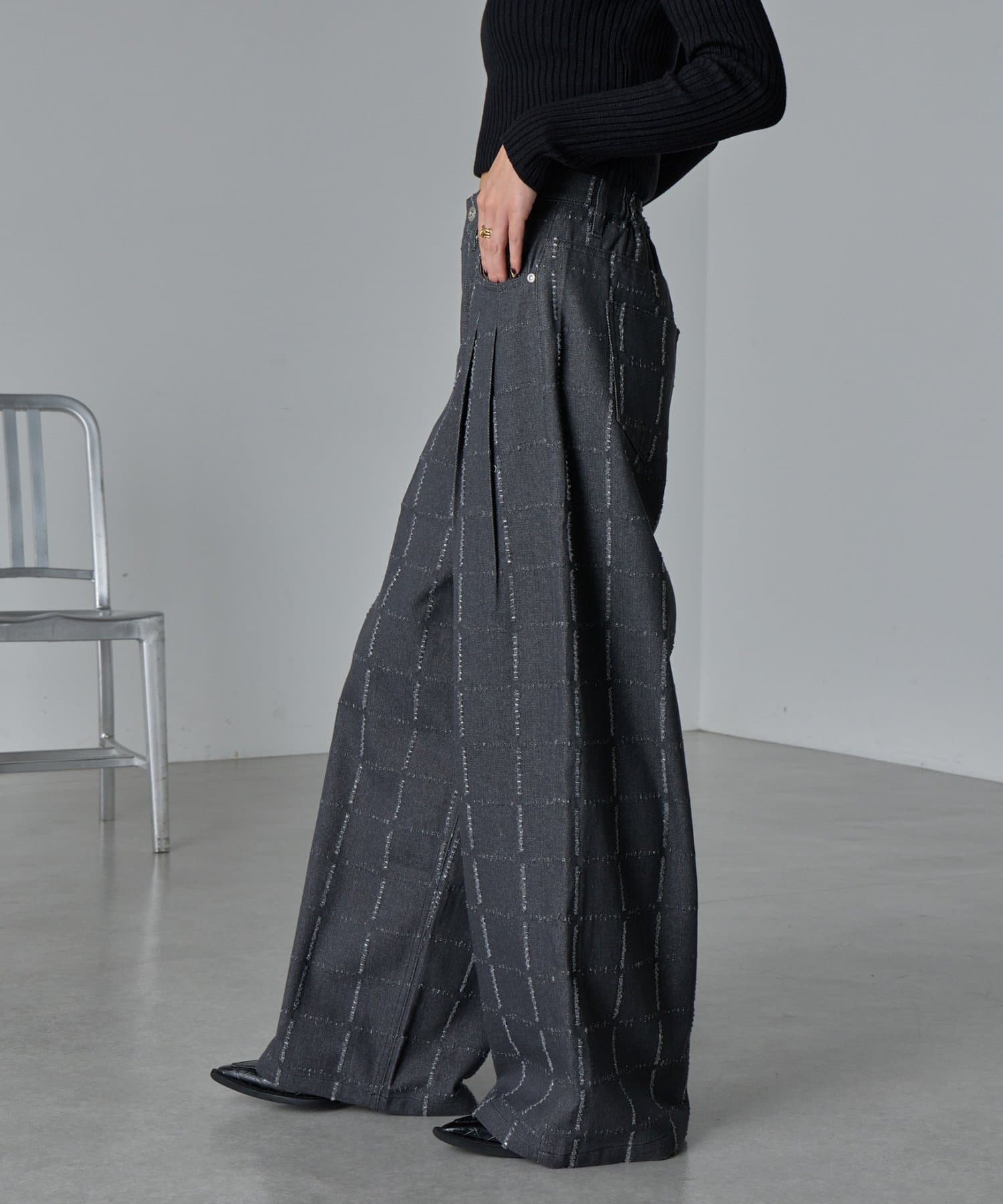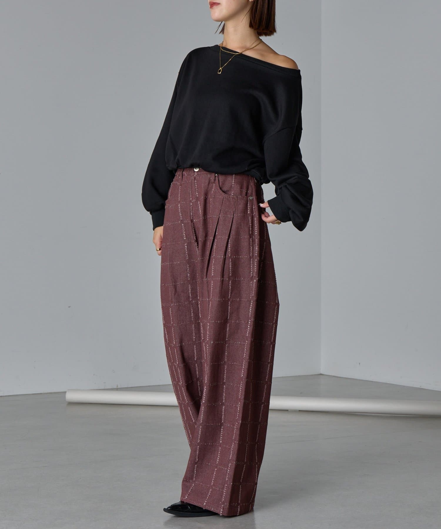 ・デザイン性のあるパンツなので、シンプルなトップス合わせがおすすめ。