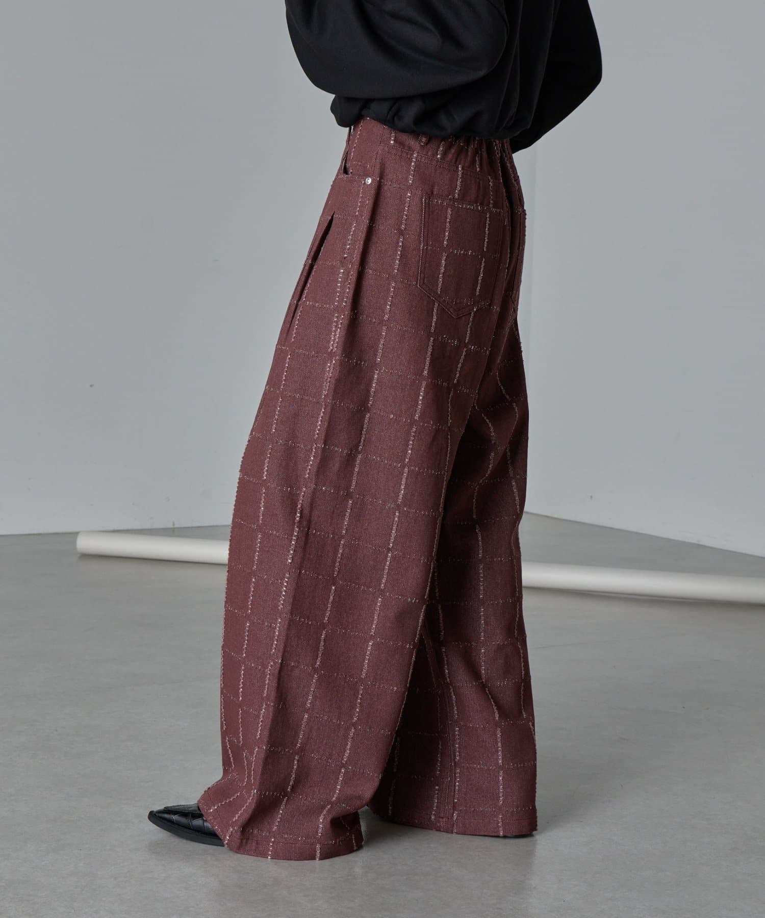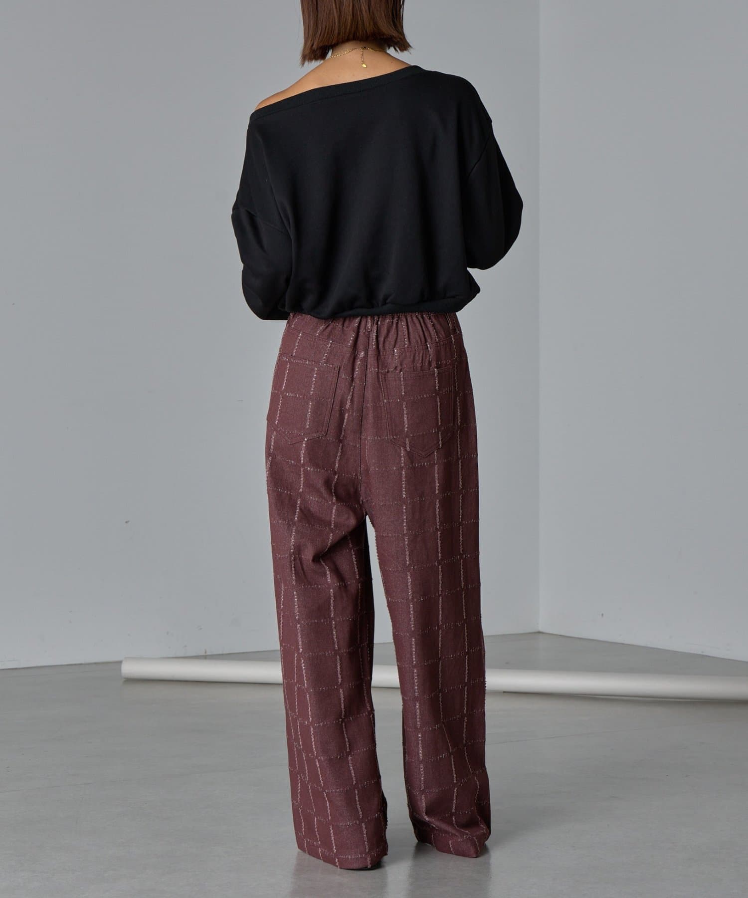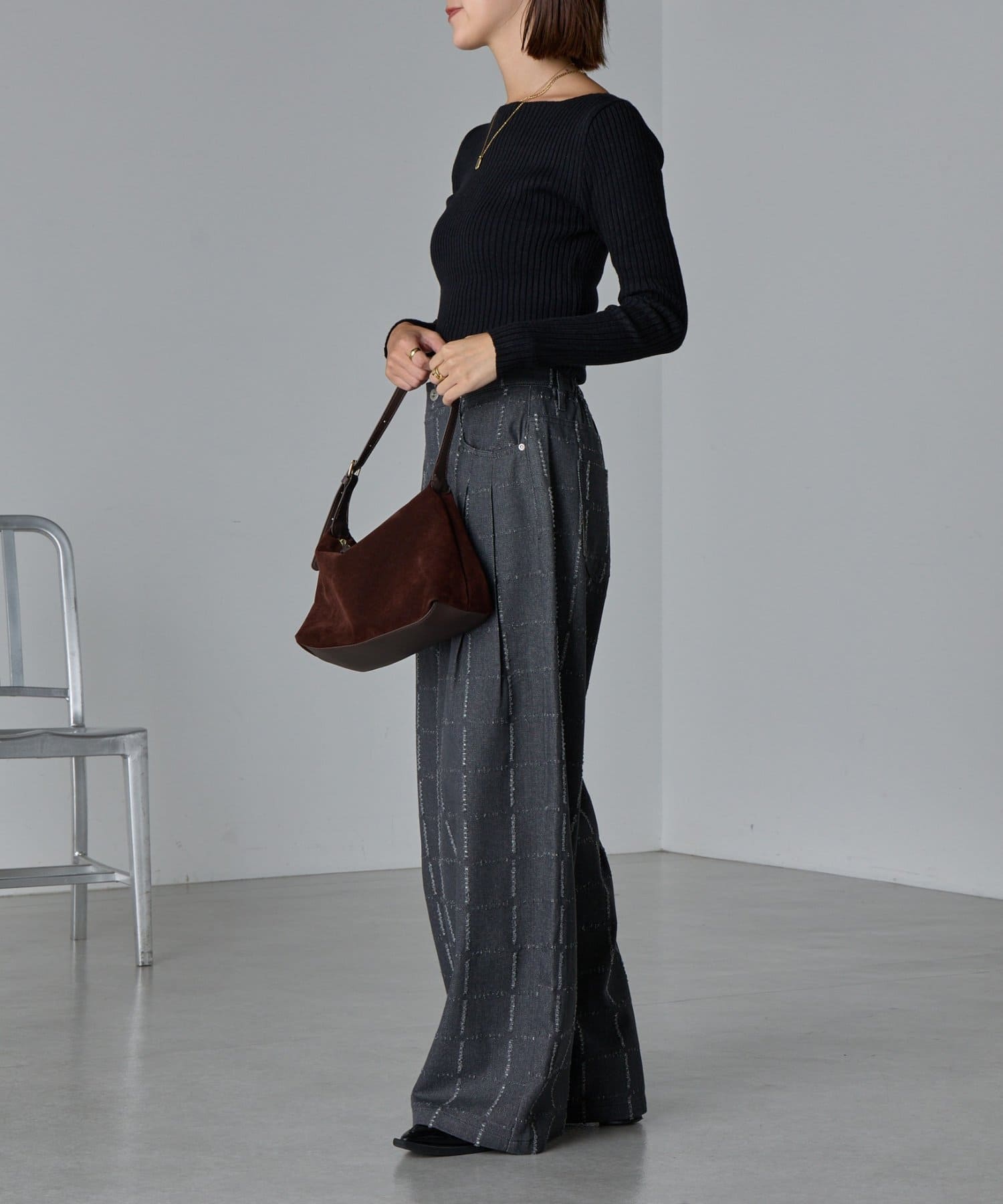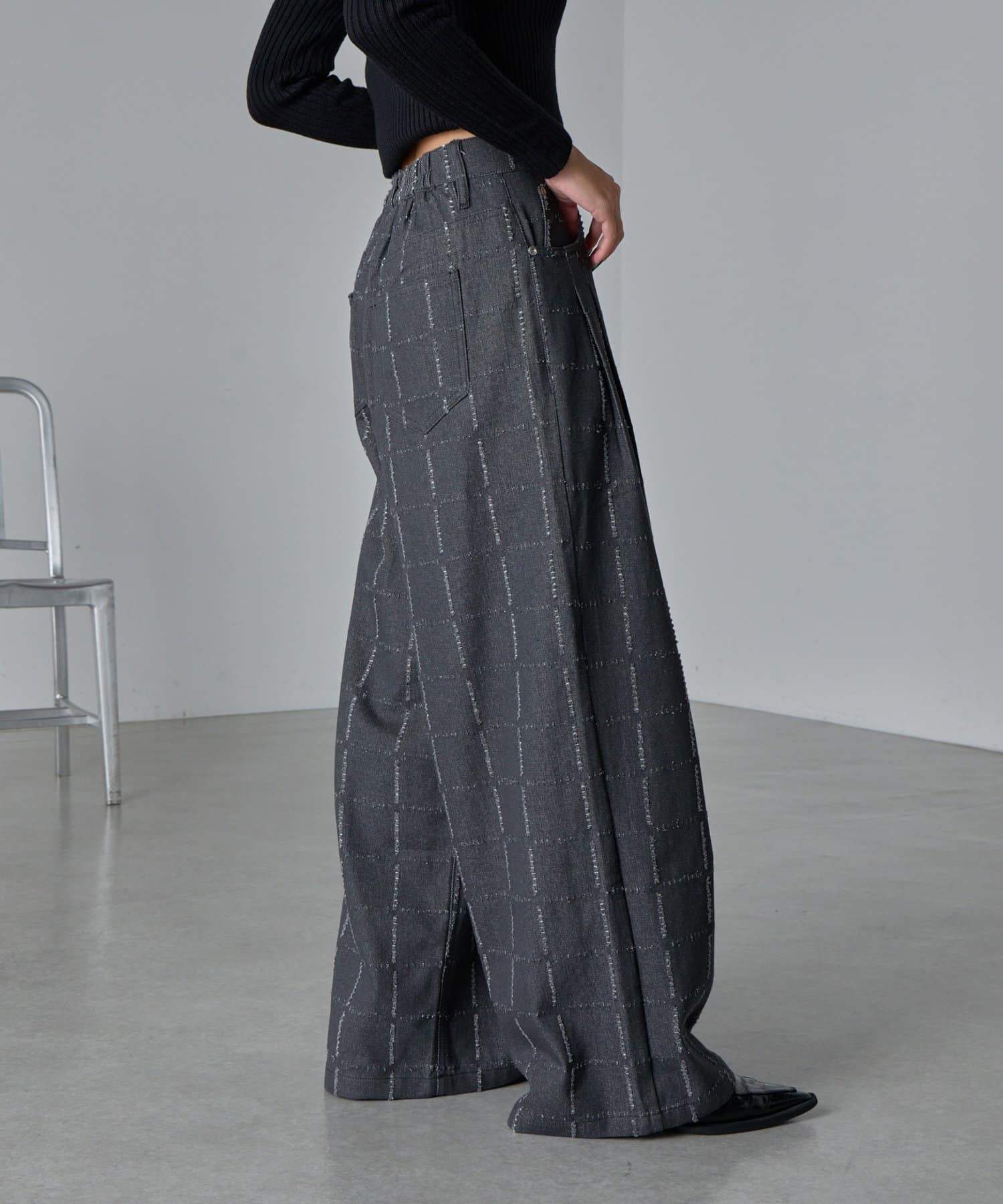 ・デザイン性のあるパンツなので、シンプルなトップス合わせがおすすめ。