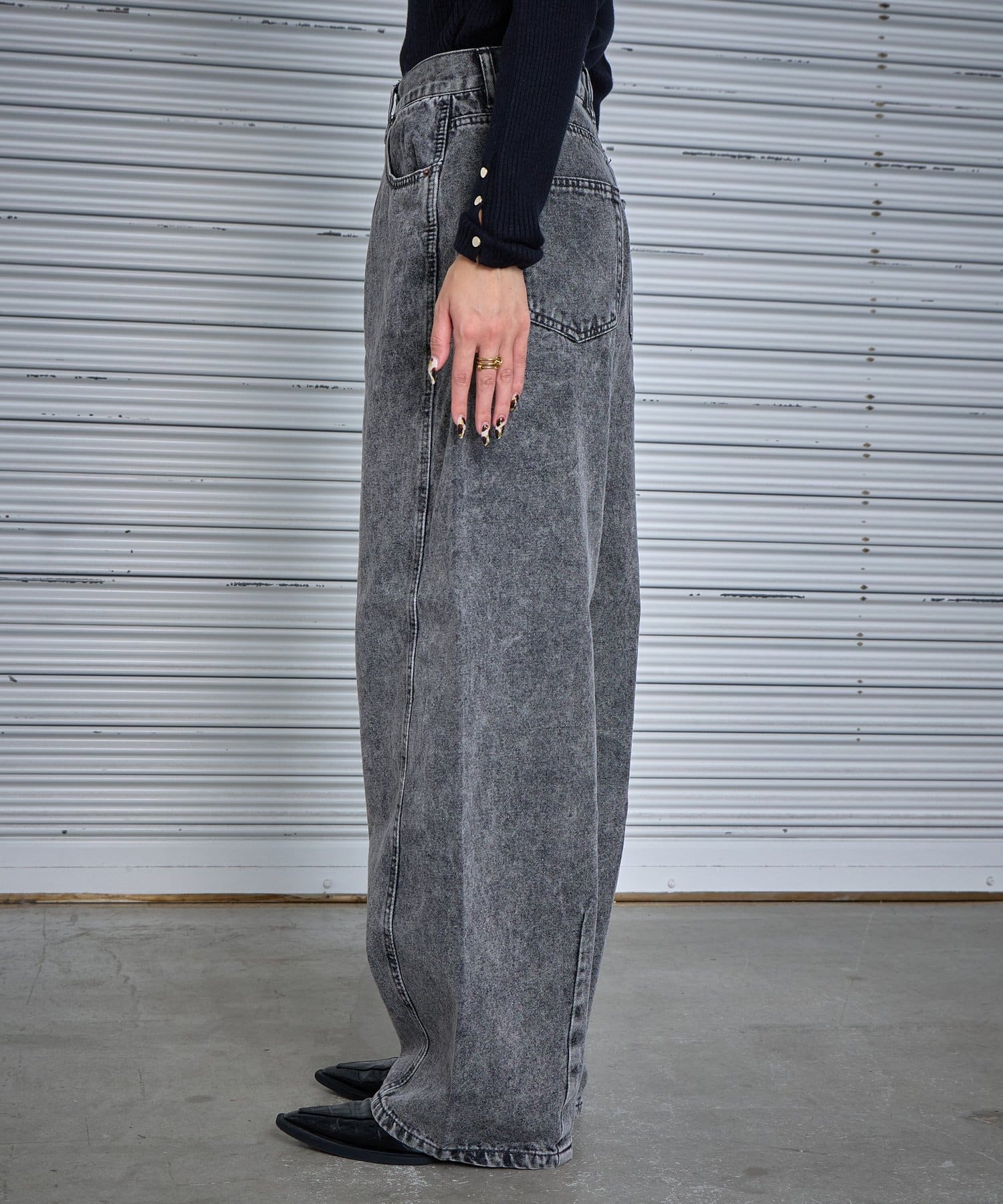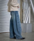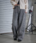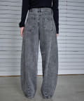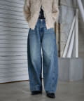 デニムバレルレッグワイドパンツ