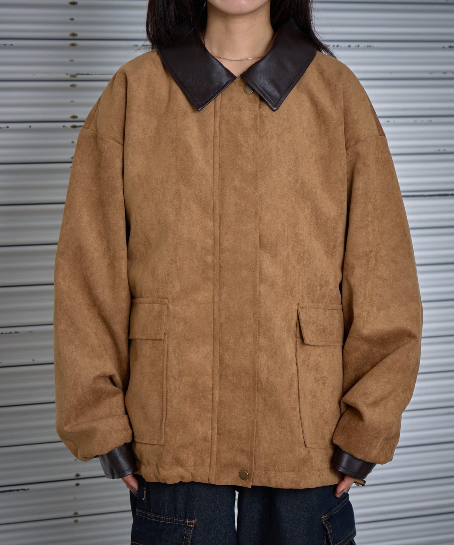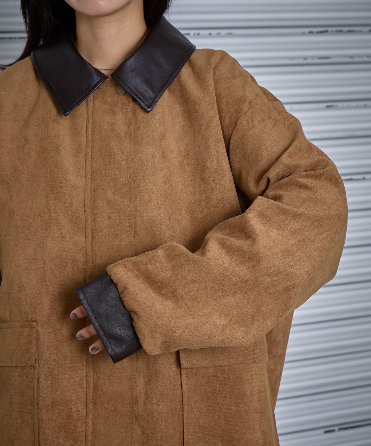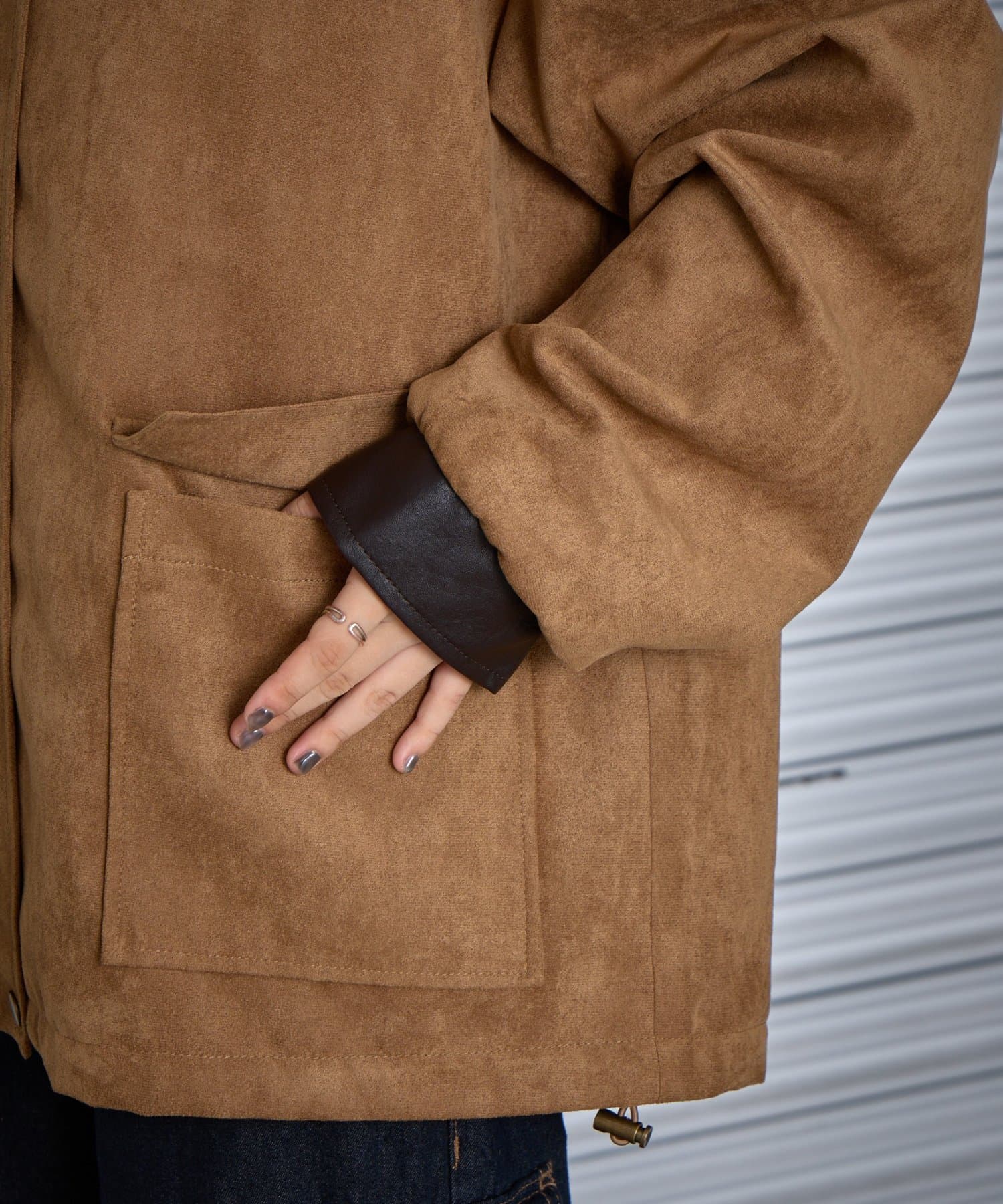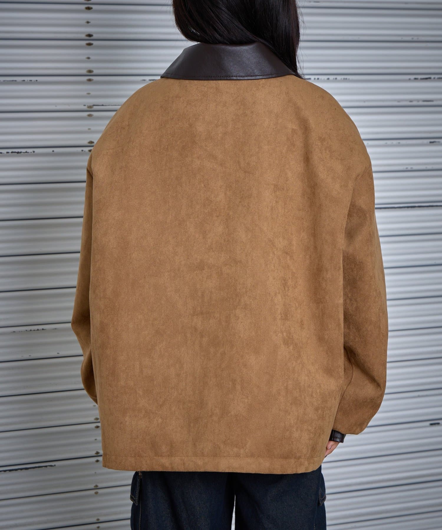 #フェイクスエード #フェイクレザー #カバーオール #異素材アウター