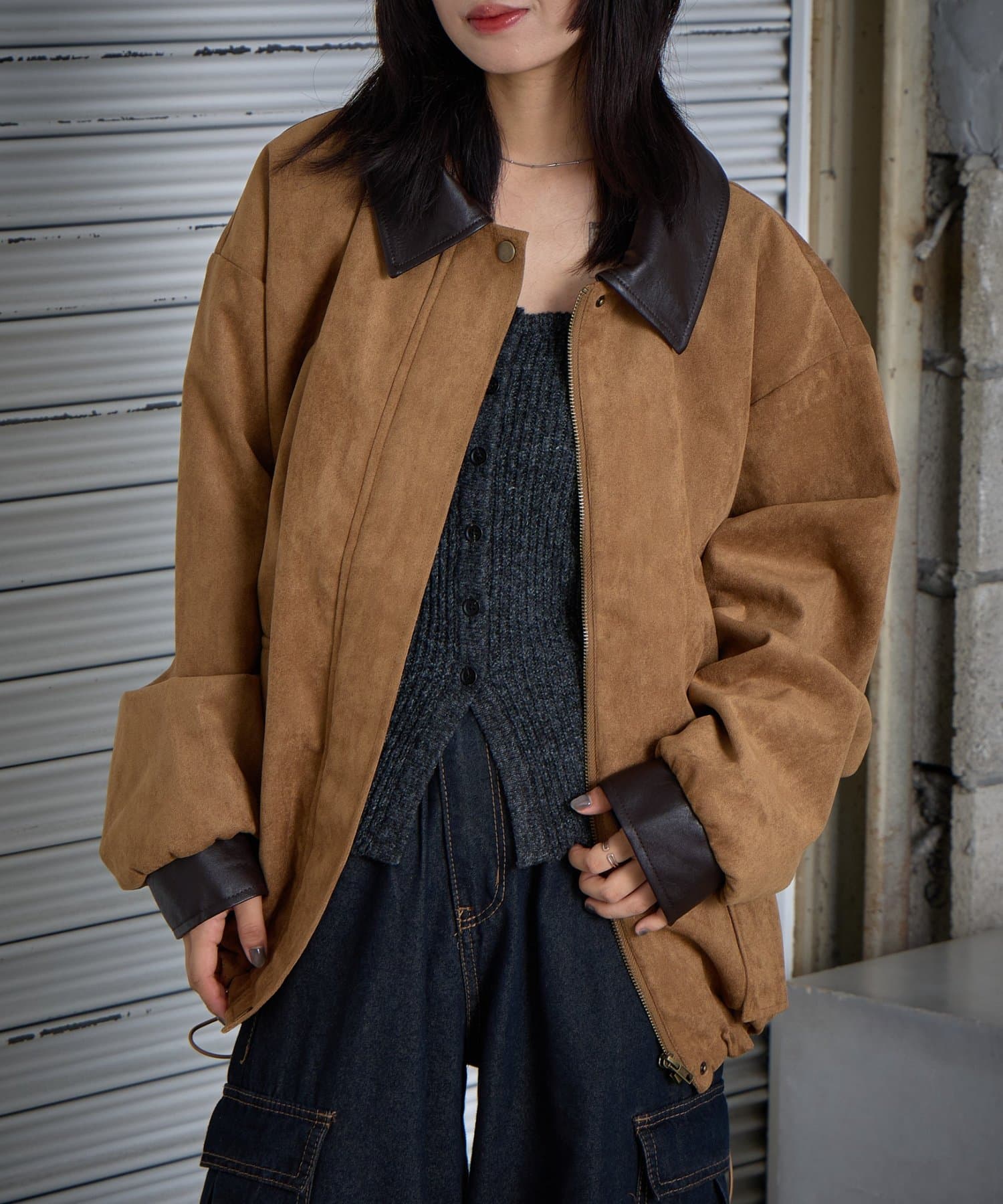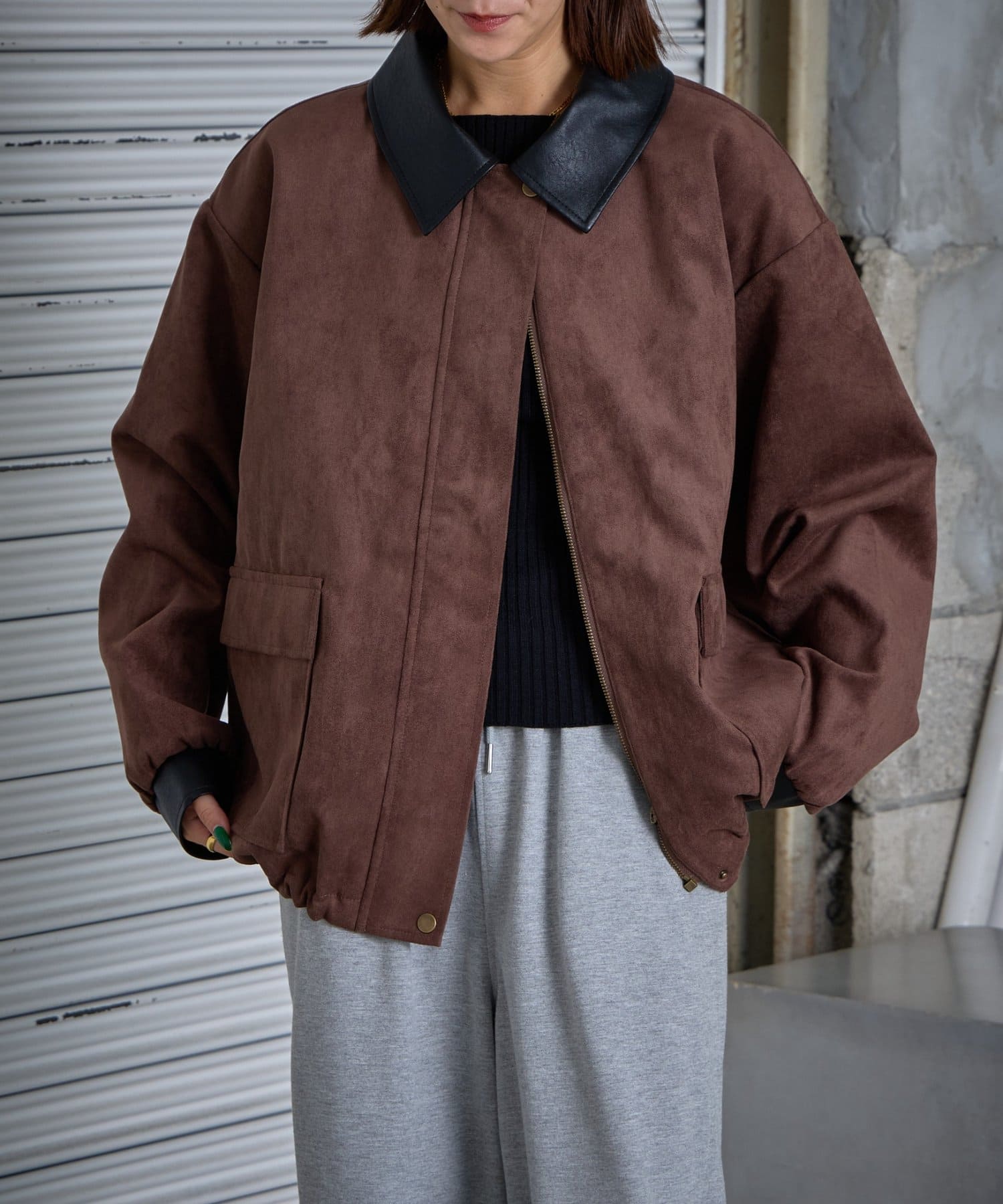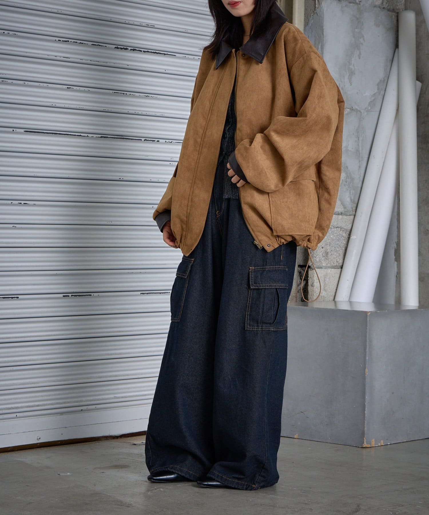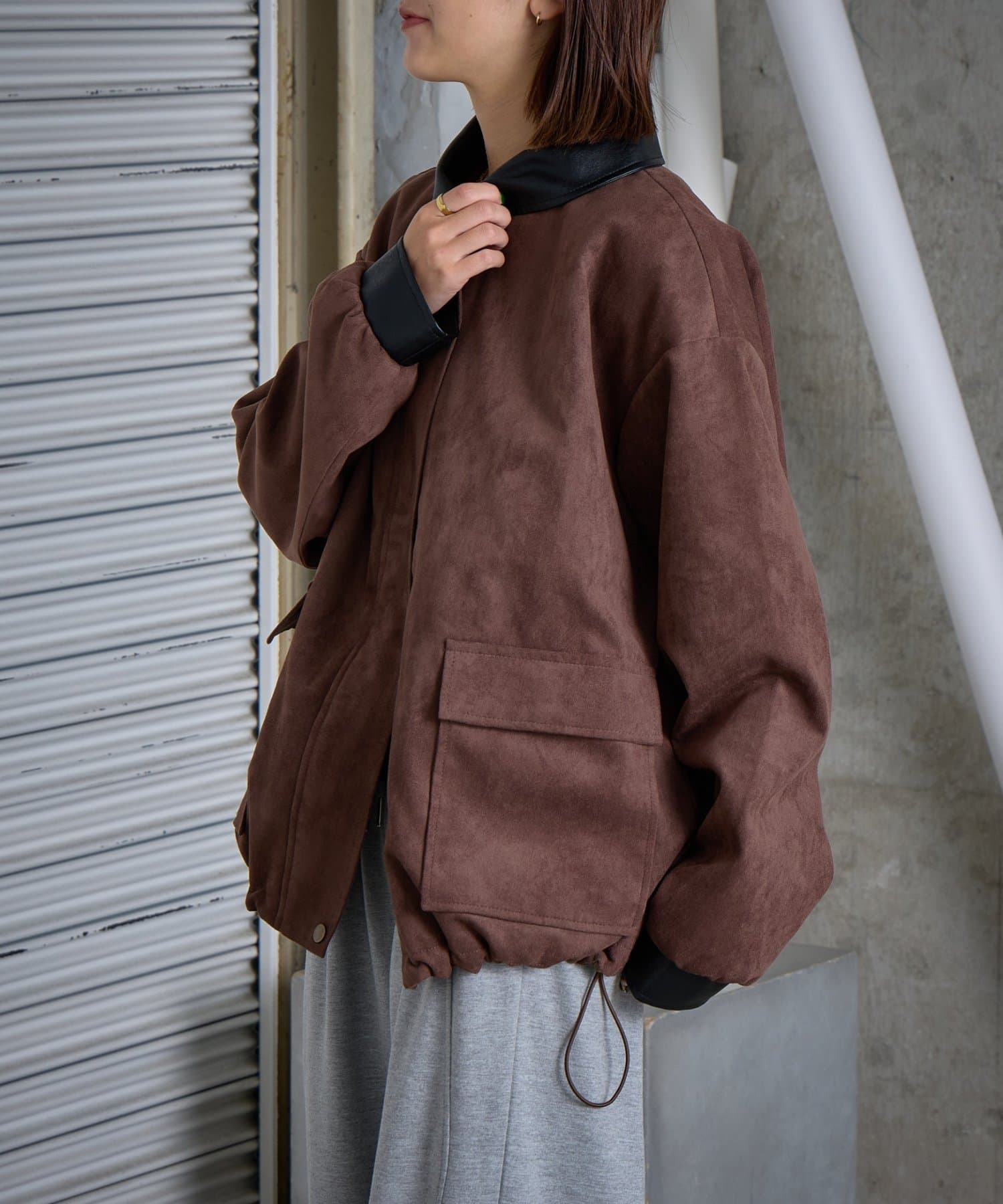 #フェイクスエード #フェイクレザー #カバーオール #異素材アウター