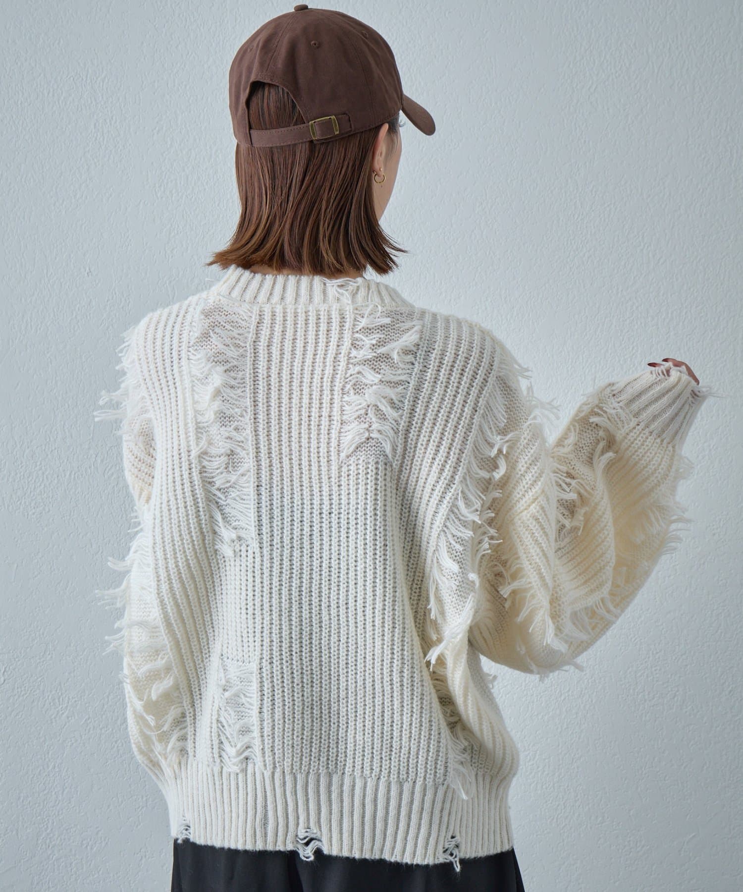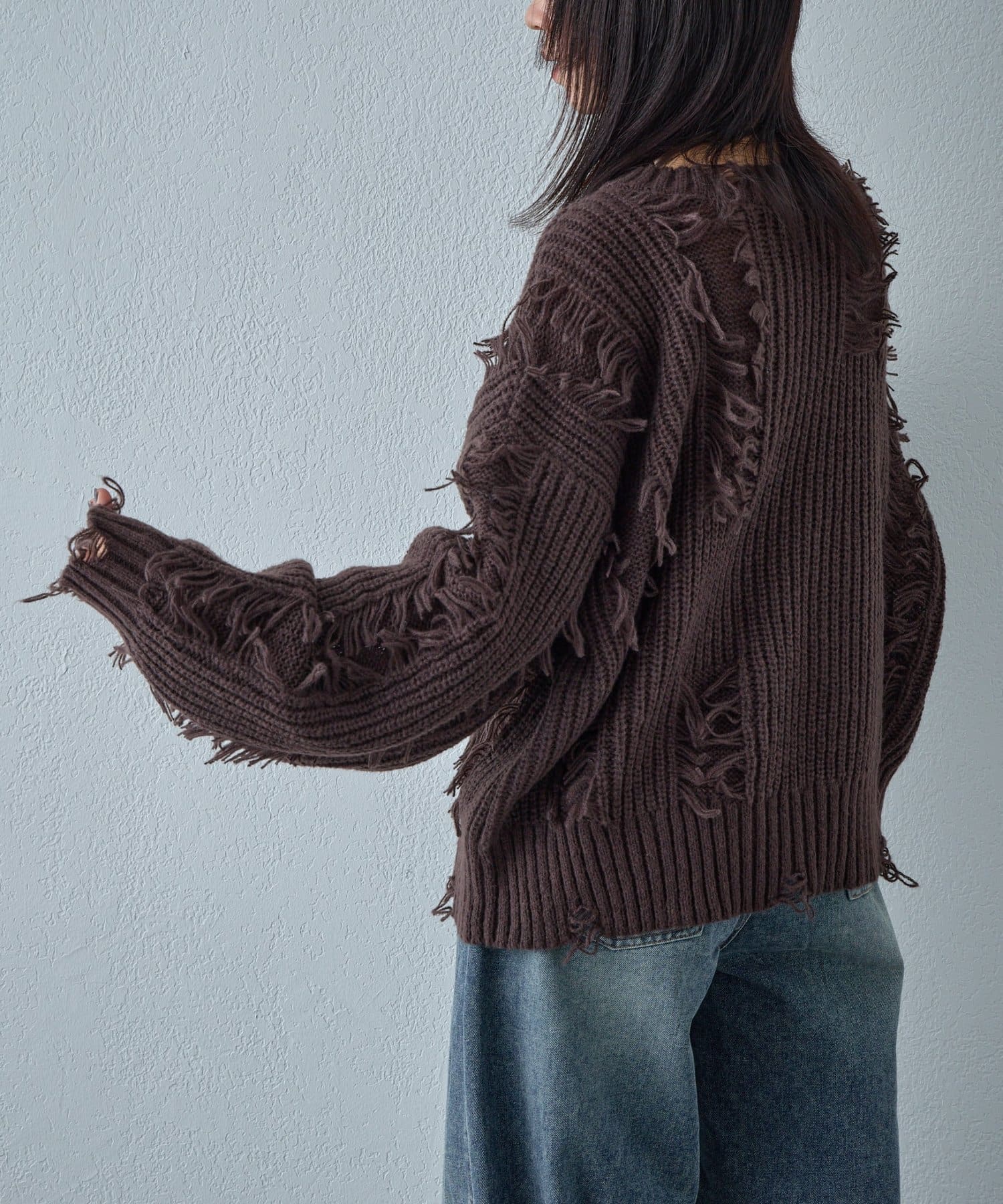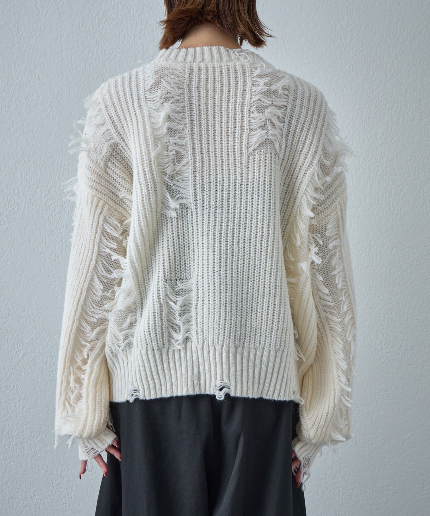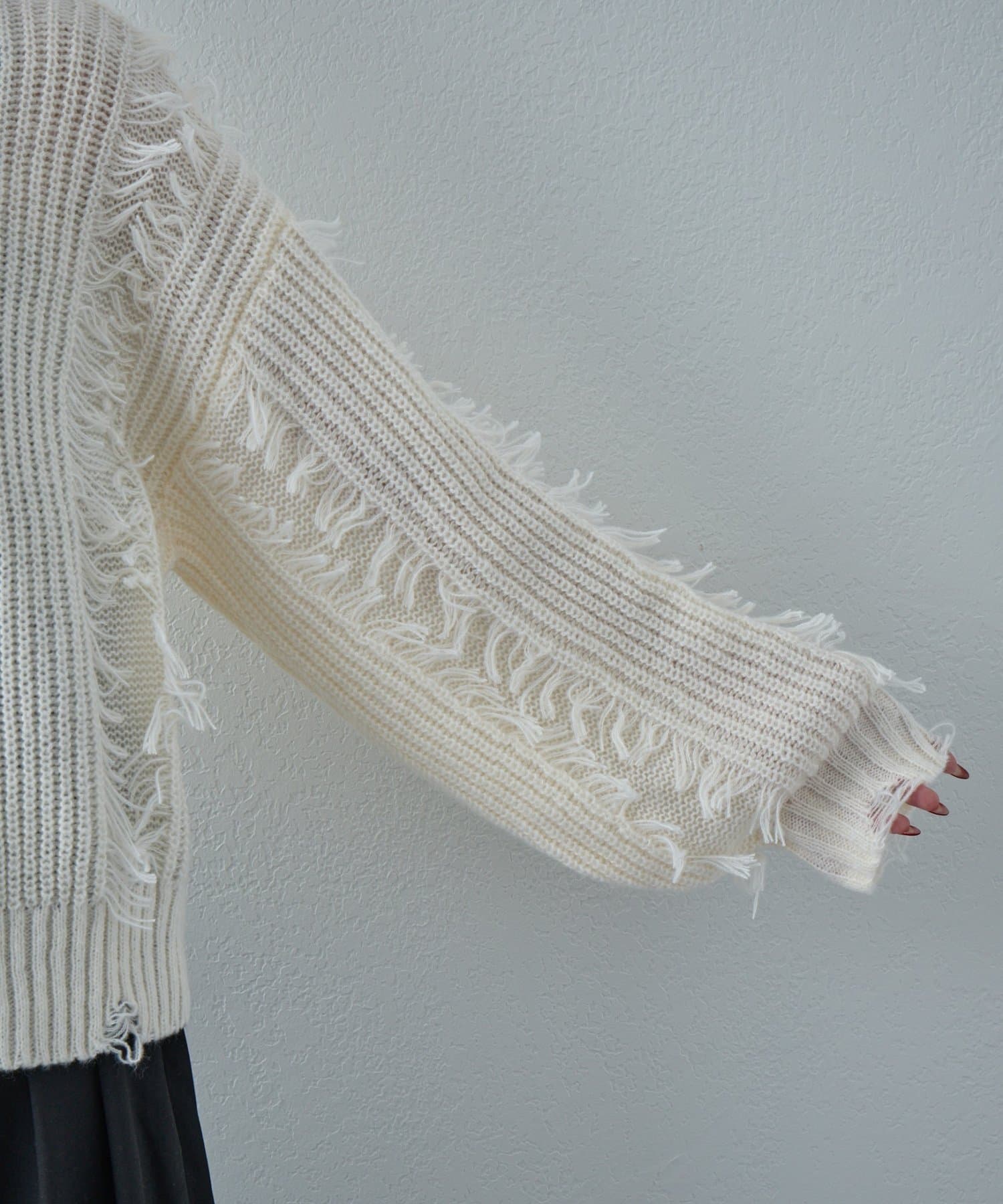 -goocy-(グーシー) モヘアタッチダメージ風フリンジプルオーバー