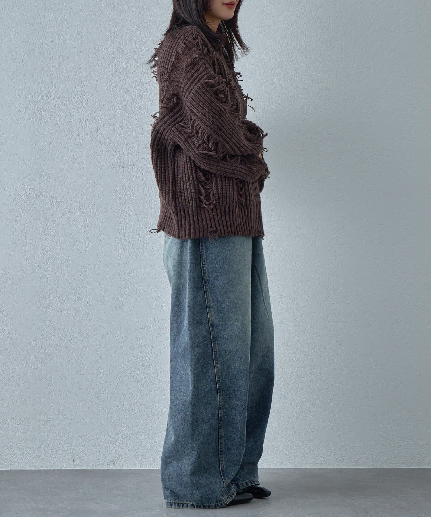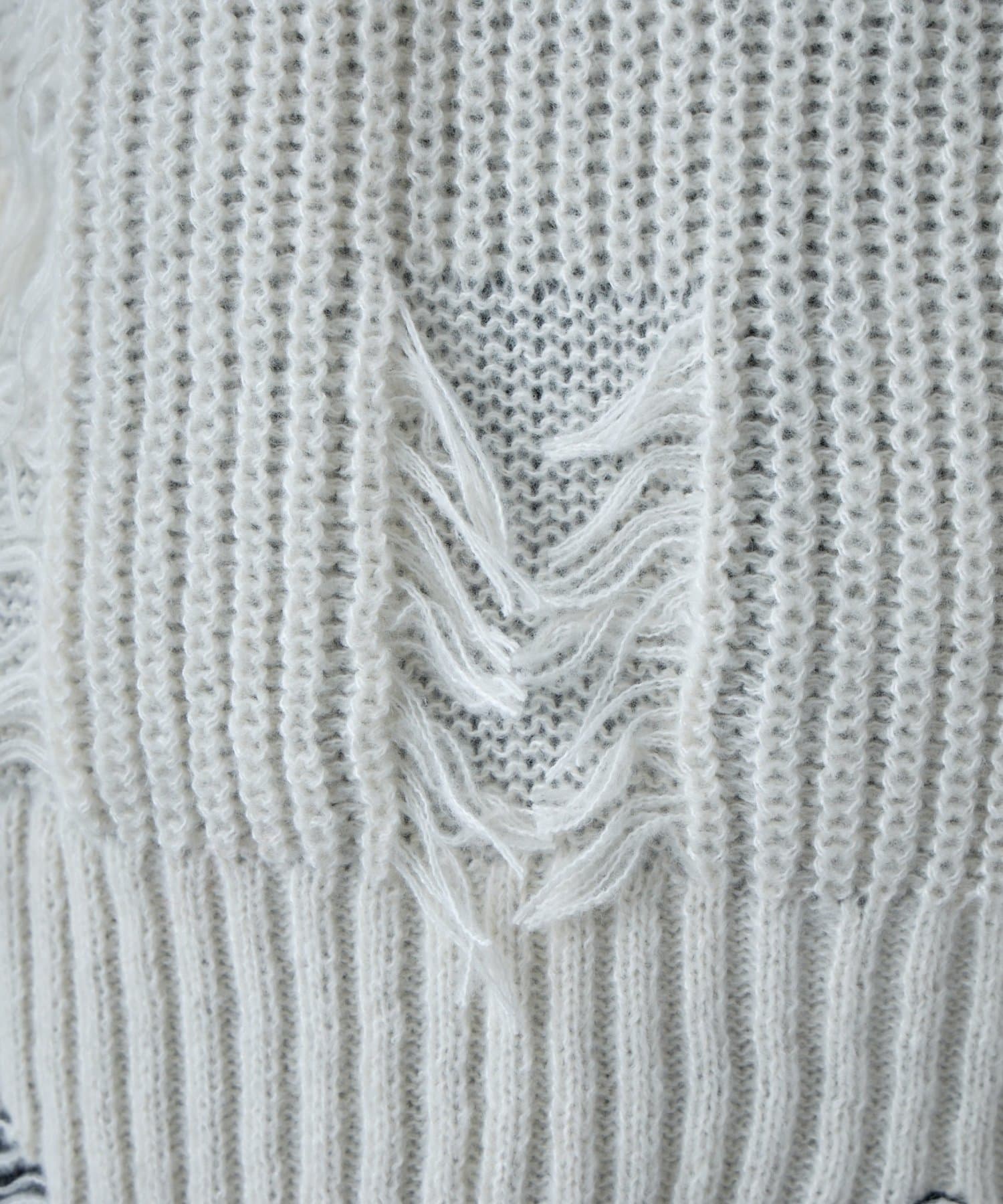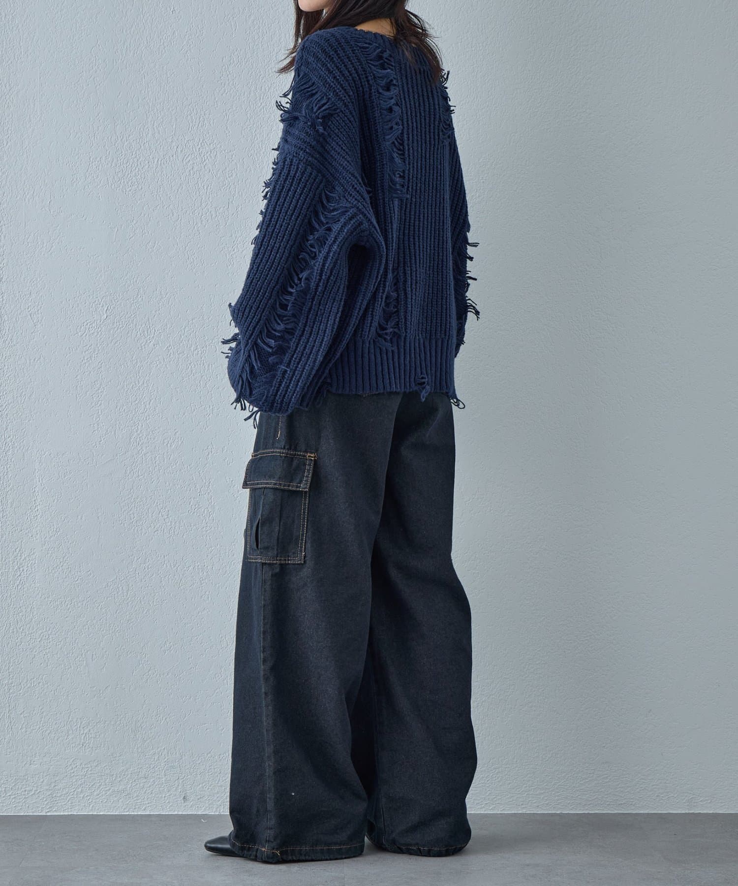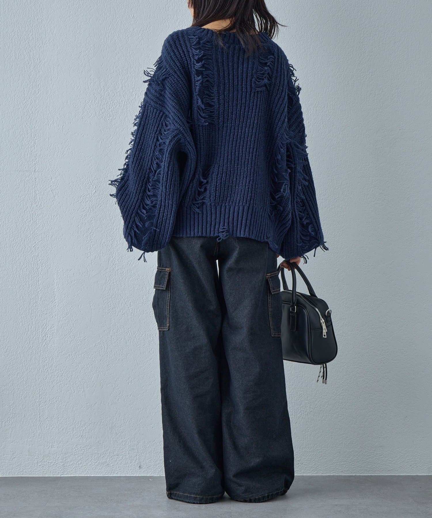 -goocy-(グーシー) モヘアタッチダメージ風フリンジプルオーバー