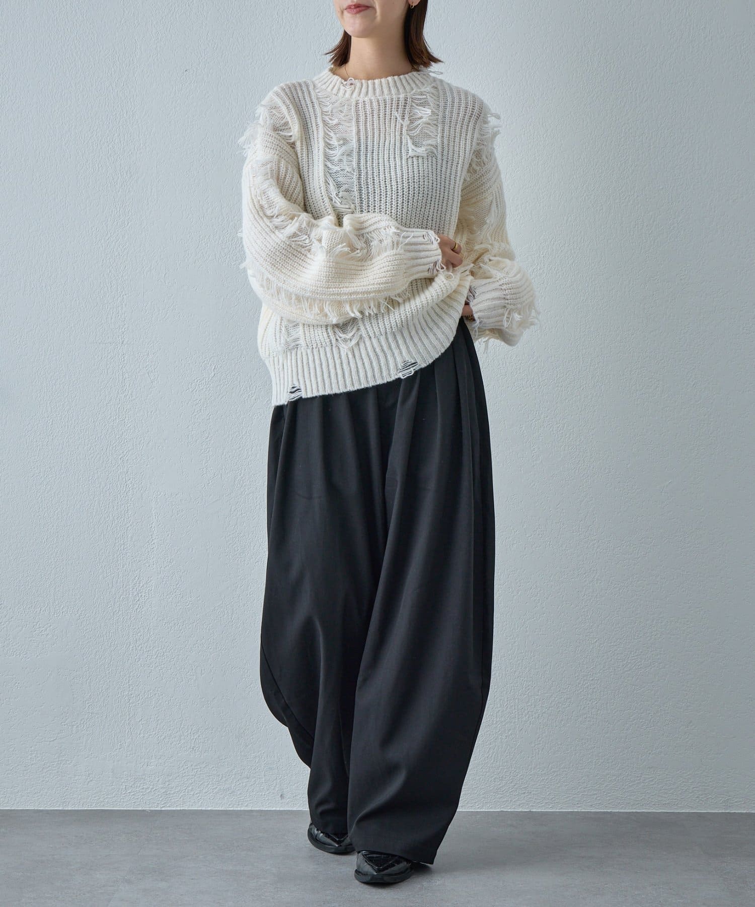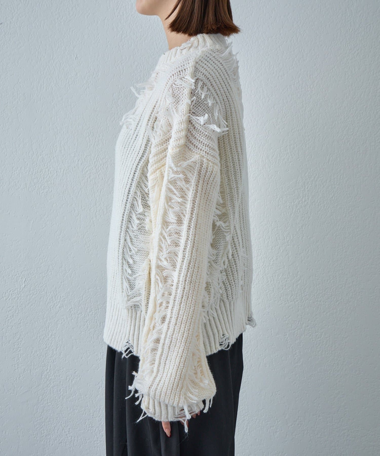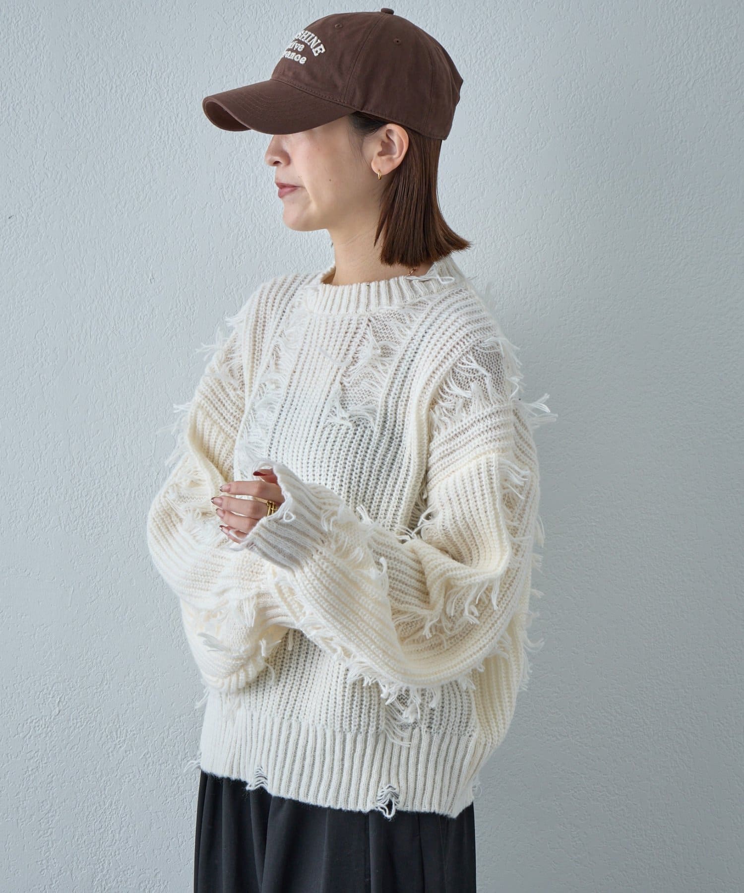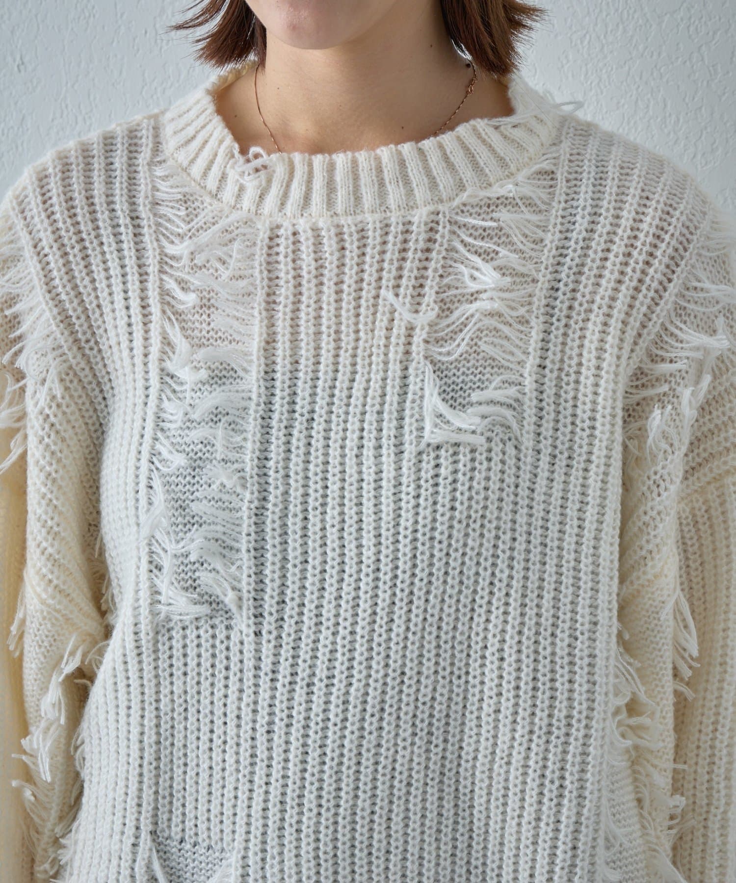 TOP > -goocy- > レディース > トップス > ニット/セーター > モヘアタッチダメージ風フリンジプルオーバー