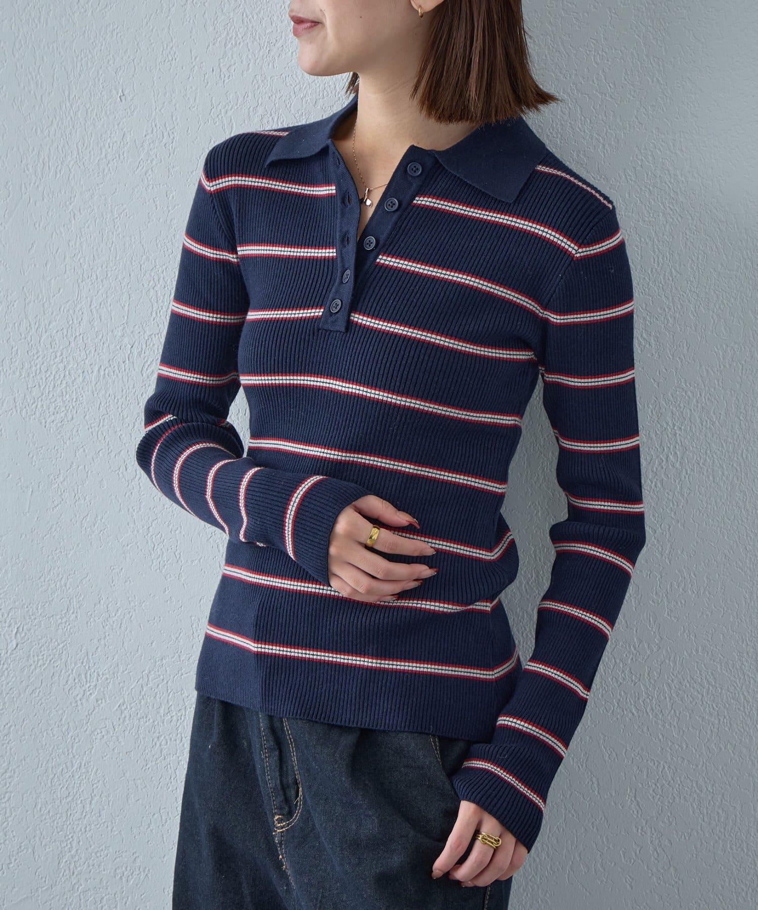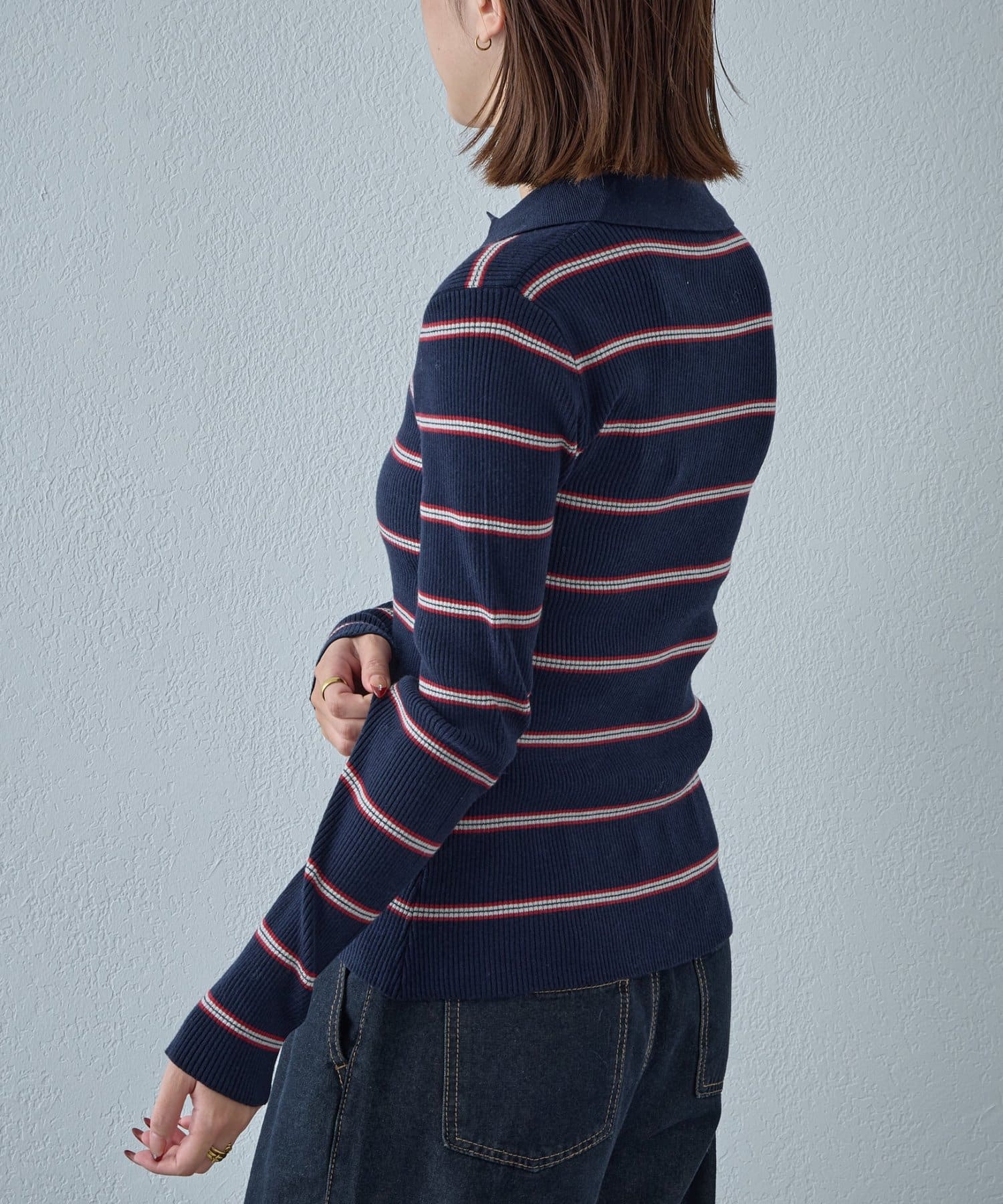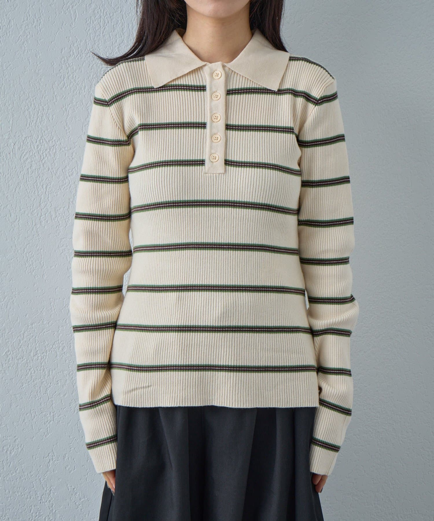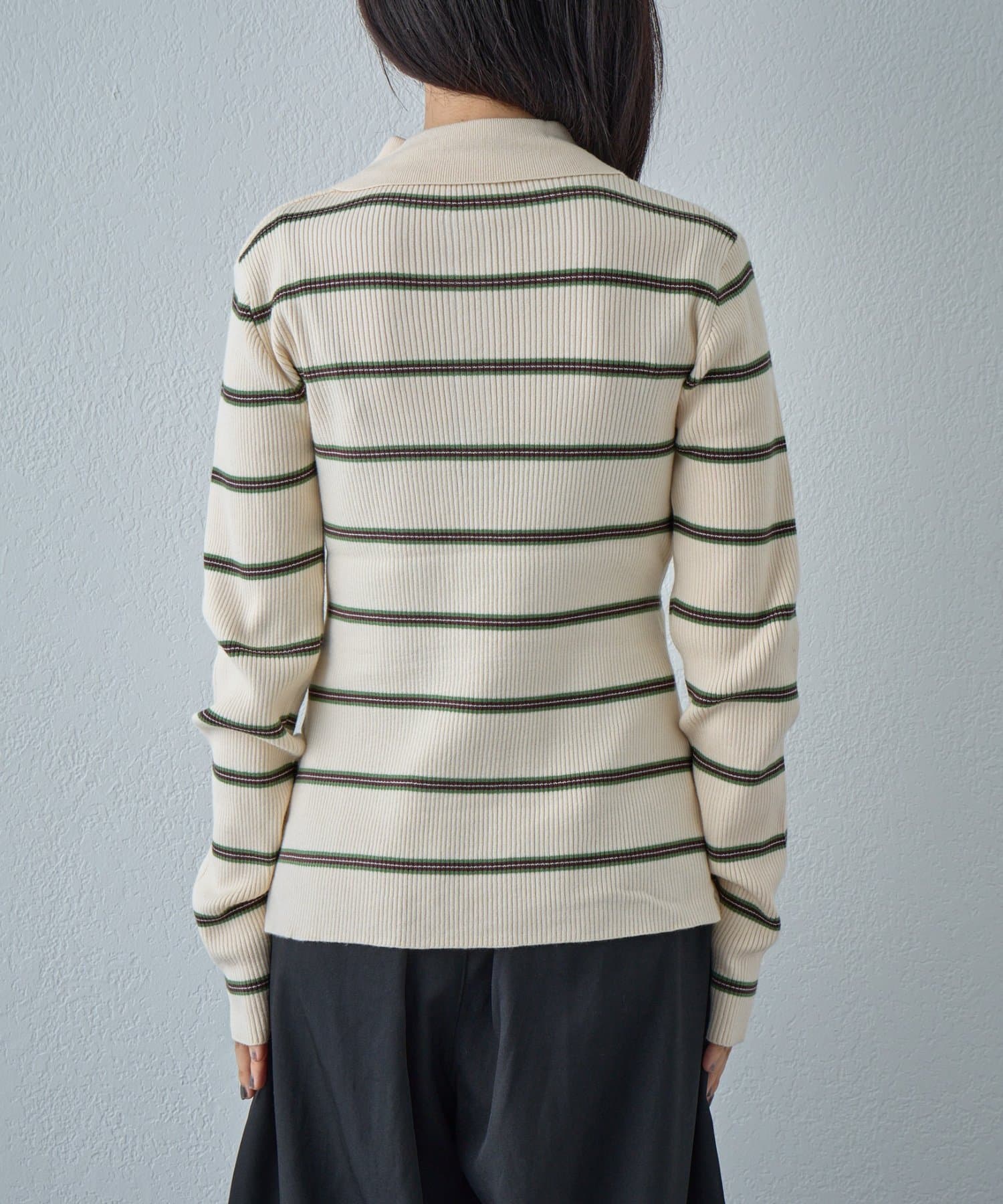 #ボーダーニット #ボーダーポロニット #襟付きニット #ポロニット